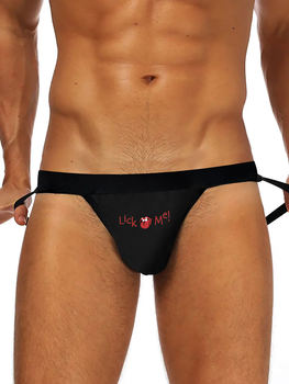 Men Sexy Thongs Bulge Pouch Underpants Trunks Underwear with Lick Me Print Mini Panties Breathable Knickers Soft Lingerie