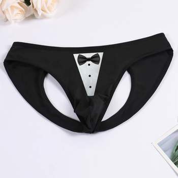 Men’s Sexy Underwear with Bow Ties Prints Cut-out Underwear Bulge Pouch Underpants Trunks Mini Panties with holes Male Lingerie