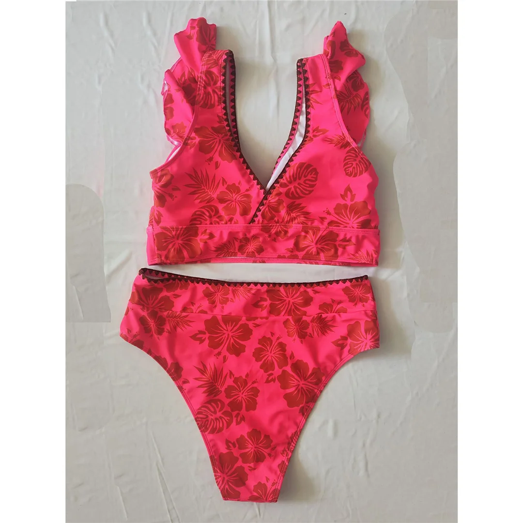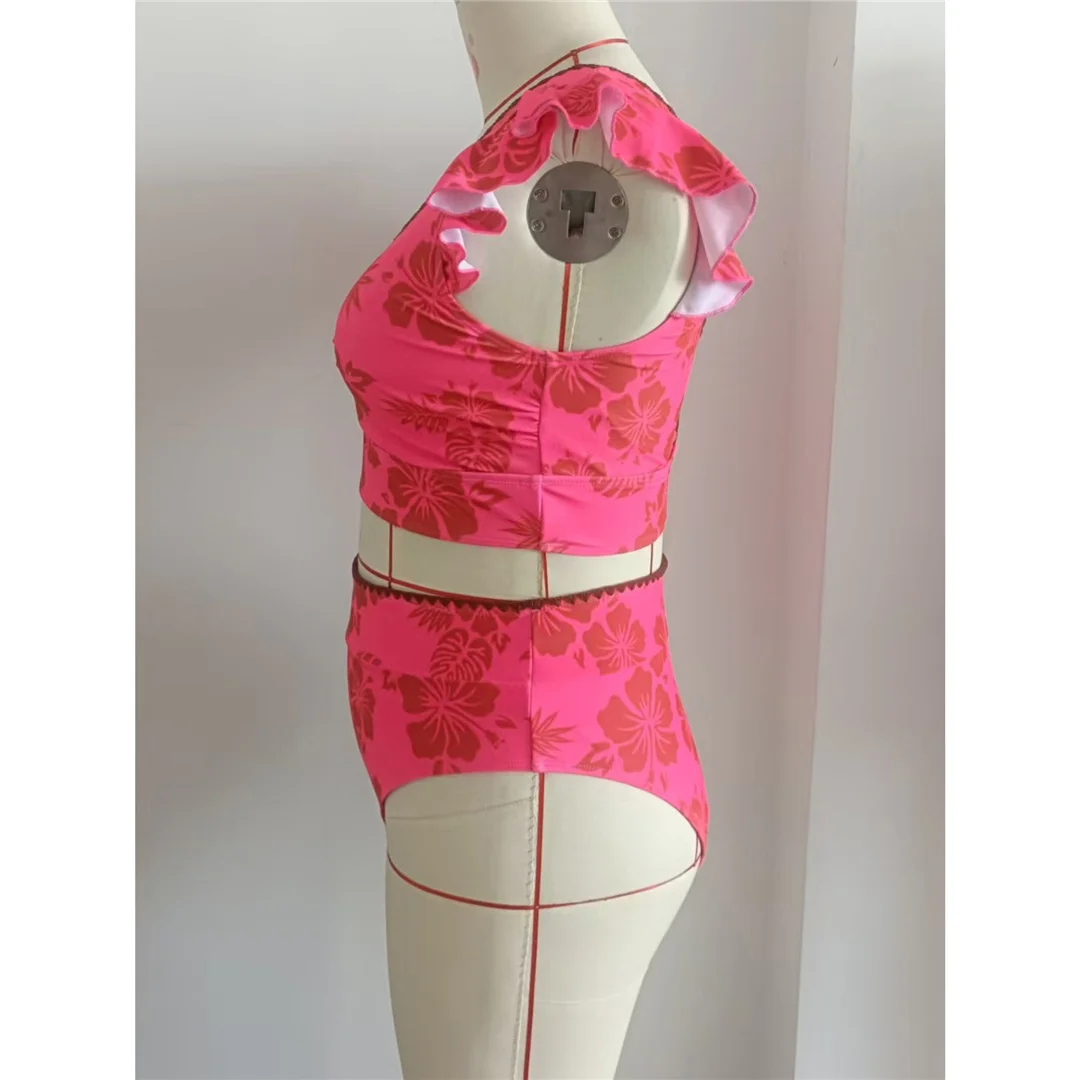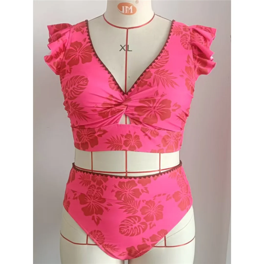 0XL – 3XL New Printed Bikini Plus Size Large Size Swimwear Women Swimsuit Female Two-pieces Bikini set Bather Bathing Suit V7342
