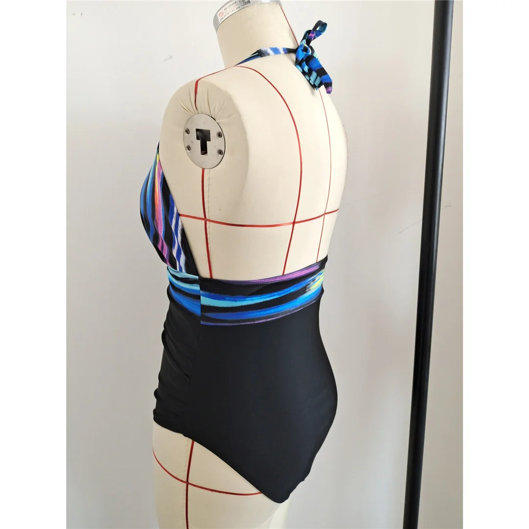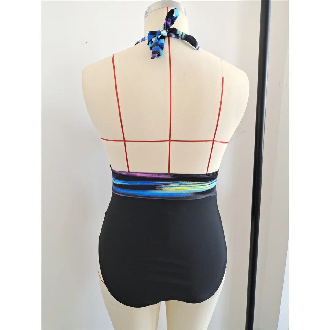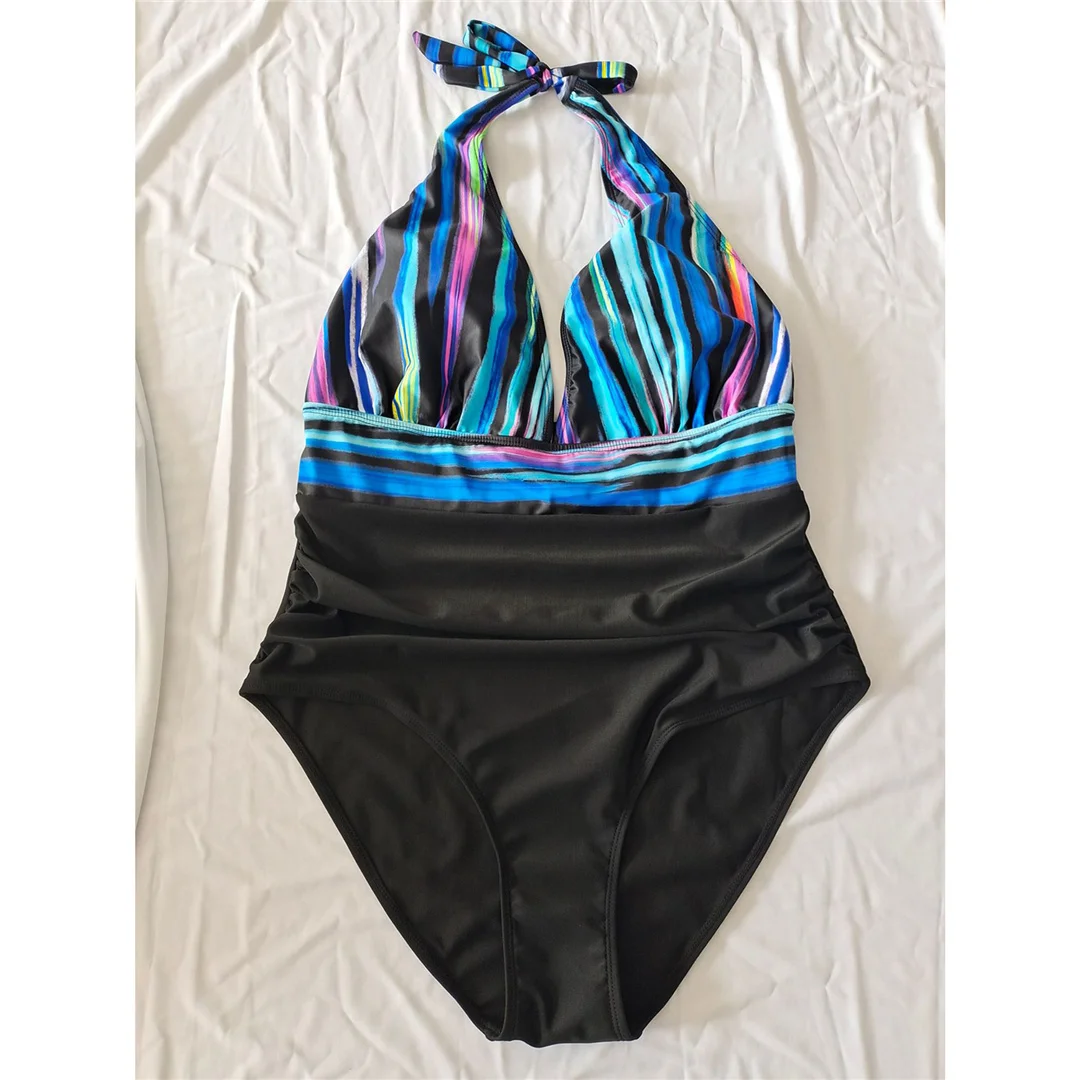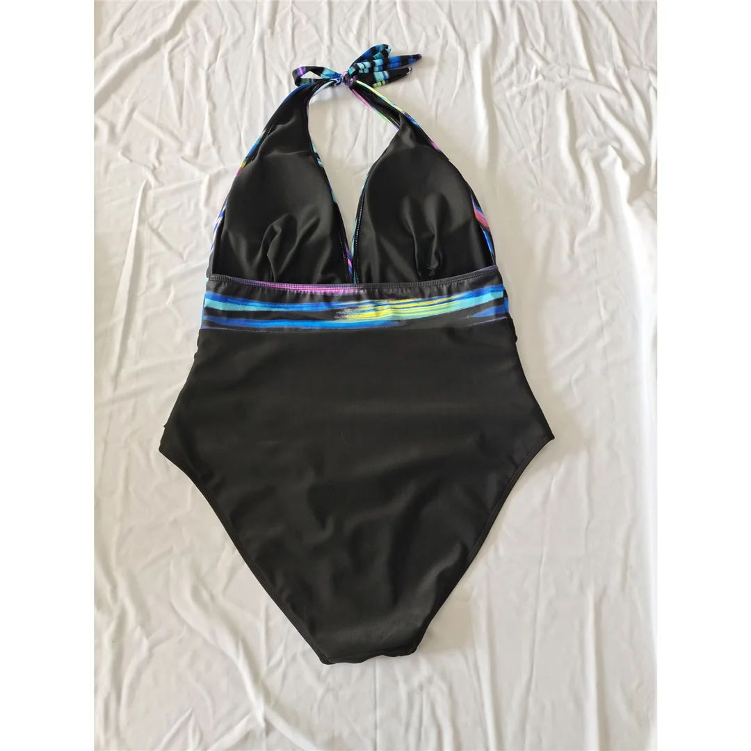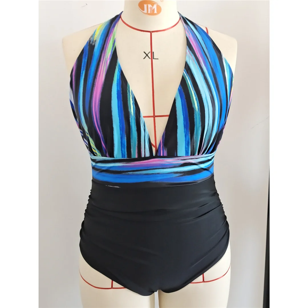 0XL – 3XL Printed Halter Backless Large Size Swimwear Plus Size One Piece Swimsuit Female Women Bather Bathing Suit Swim V7361