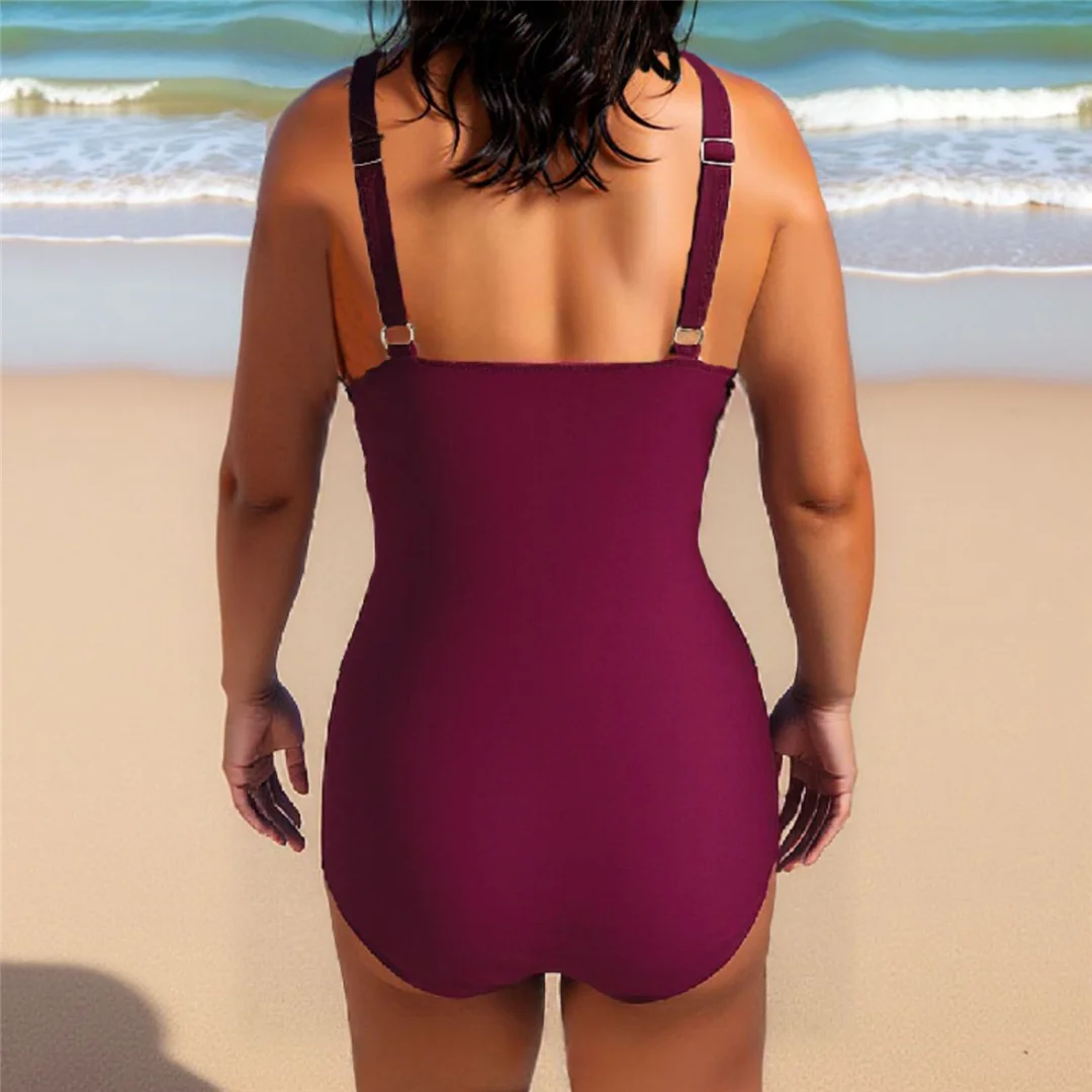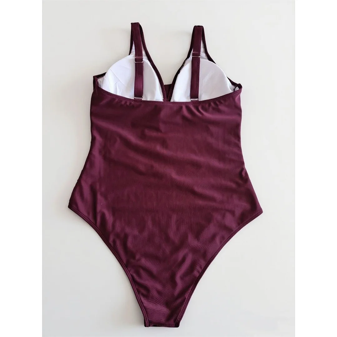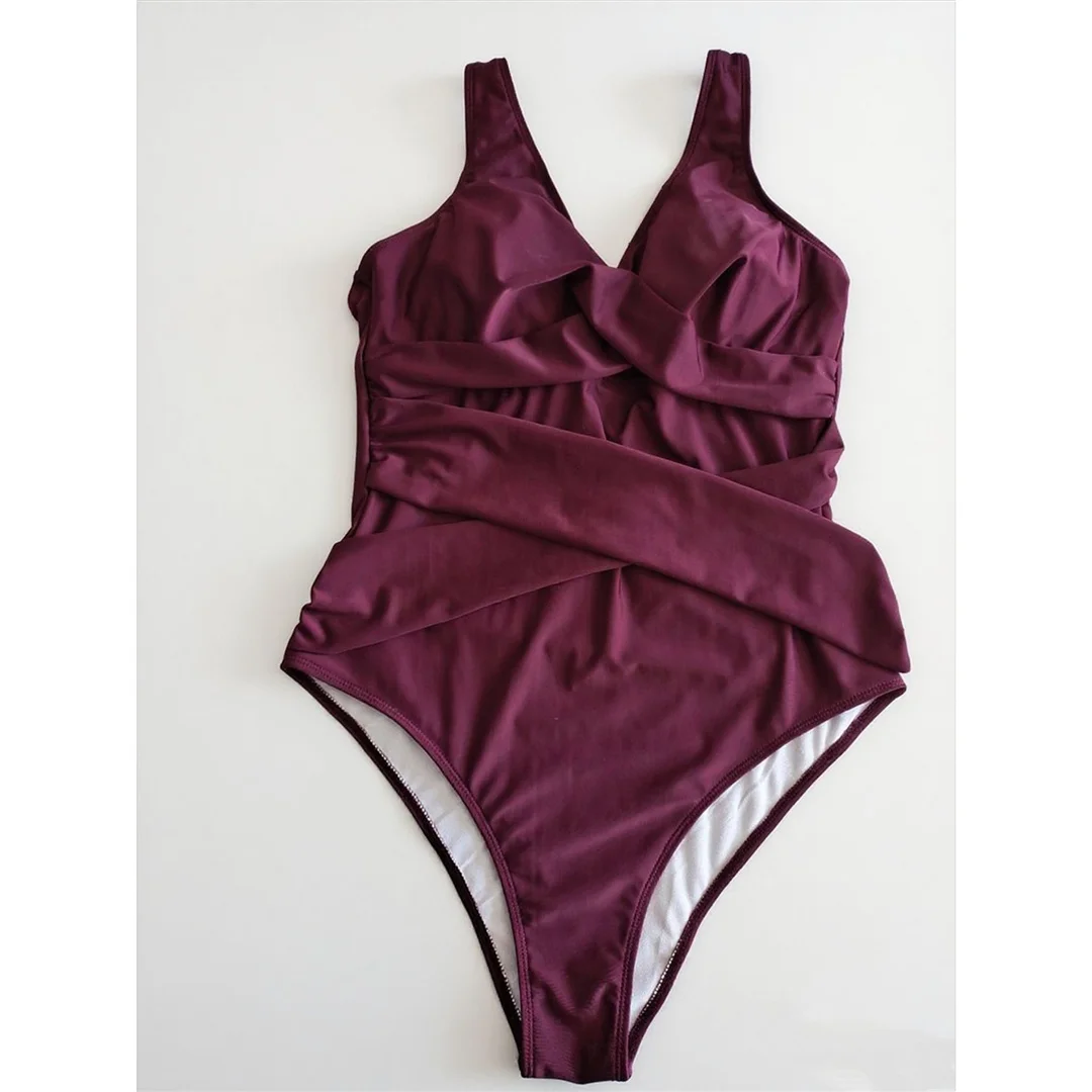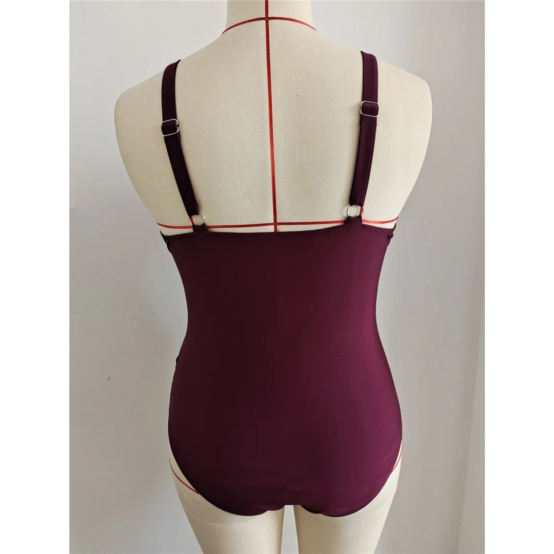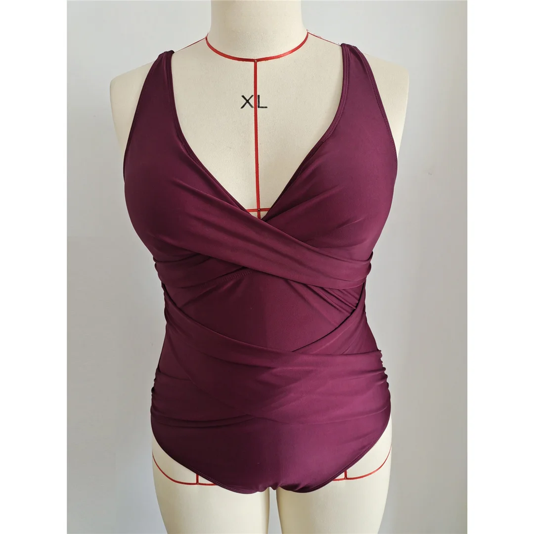0XL – 3XL V Neck Wrinkled Plus Size Large Size Swimwear Female One Piece Swimsuit Women Padded Bather Bathing Suit Swim V7330