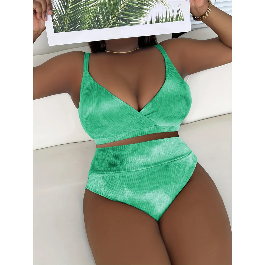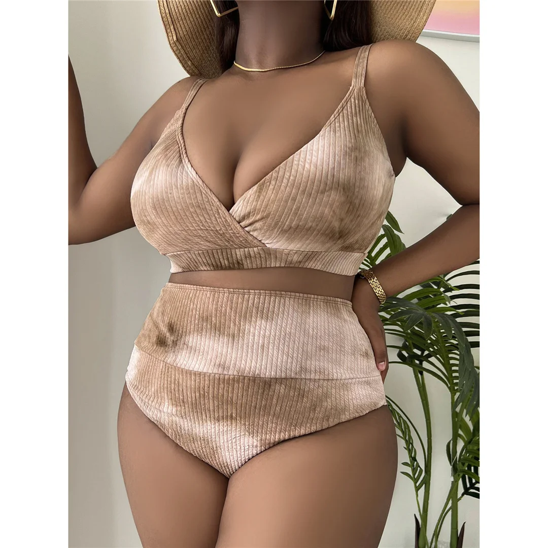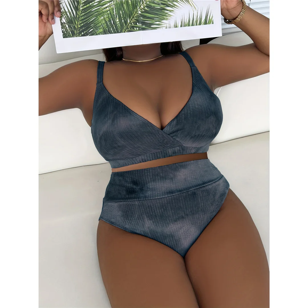 0XL – 4XL New Tie Dye Bikini Large Size Swimwear Plus Size Women Swimsuit Female Two-pieces Bikini set Bather Bathing Suit V5303