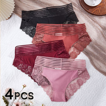 1/3PCS Women’s Panties Sexy Lace Briefs Plus Size Underwear Comfort Thongs Female Breathable Panty Low-Rise Intimates Underpants