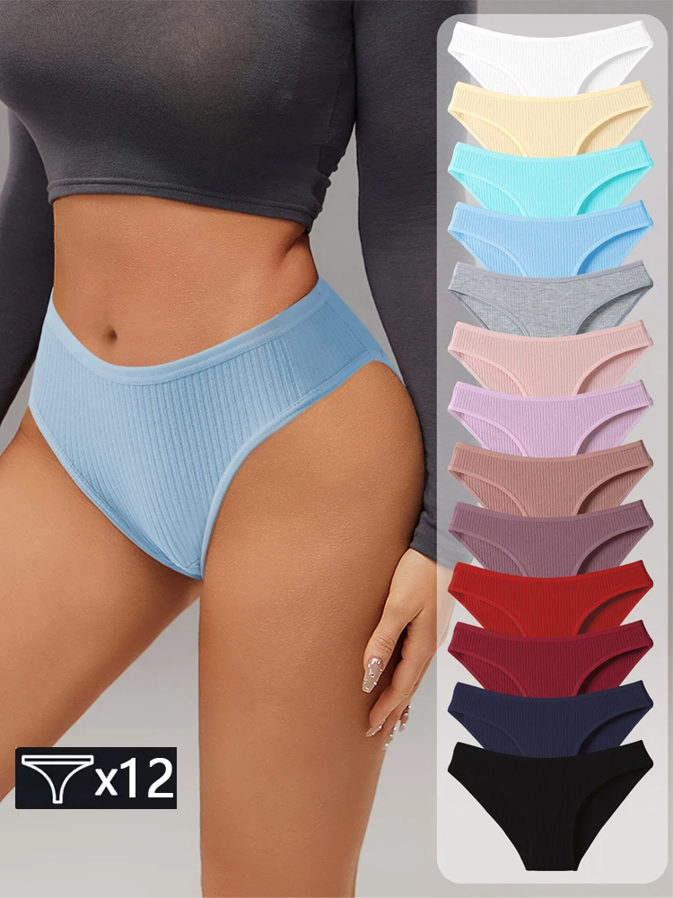 12Pcs Women Cotton Panties Women’s Low-Rise Comfortable Briefs Female Soft Underwear 12 Solid Colors Ladies Underpants XS-XXL