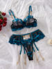 2024 Fashion Lingerie Summer Erotic Bra and Thong Set See-Through Embroidery Mesh Metal Chain Sexy Underwear 3-Piece for Female