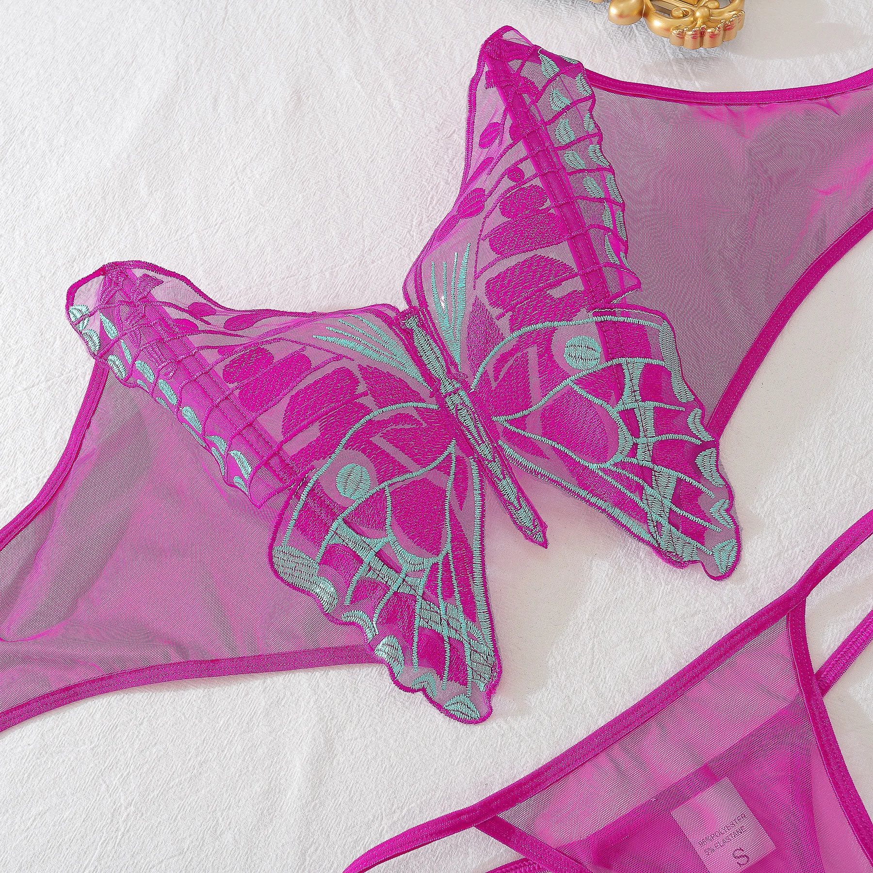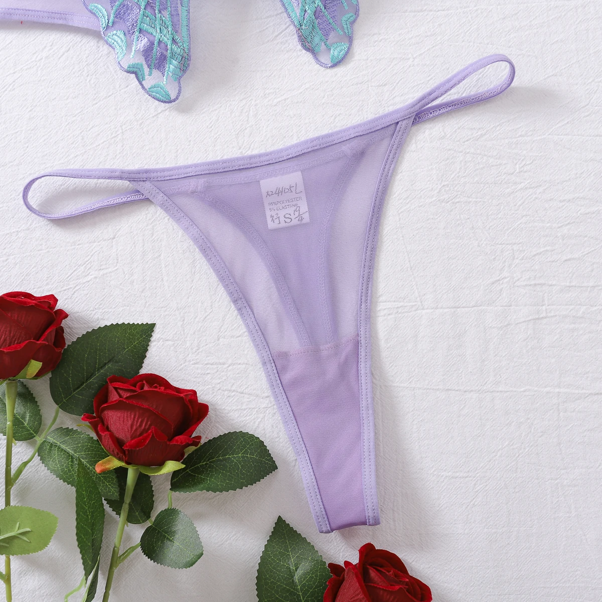 2024 Summer New Erotic Women’s Underwear Set Hot Sale Butterfly Embroidery Mesh See-through 2-piece Sexy Lingeries for Woman