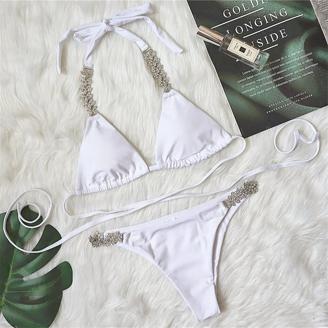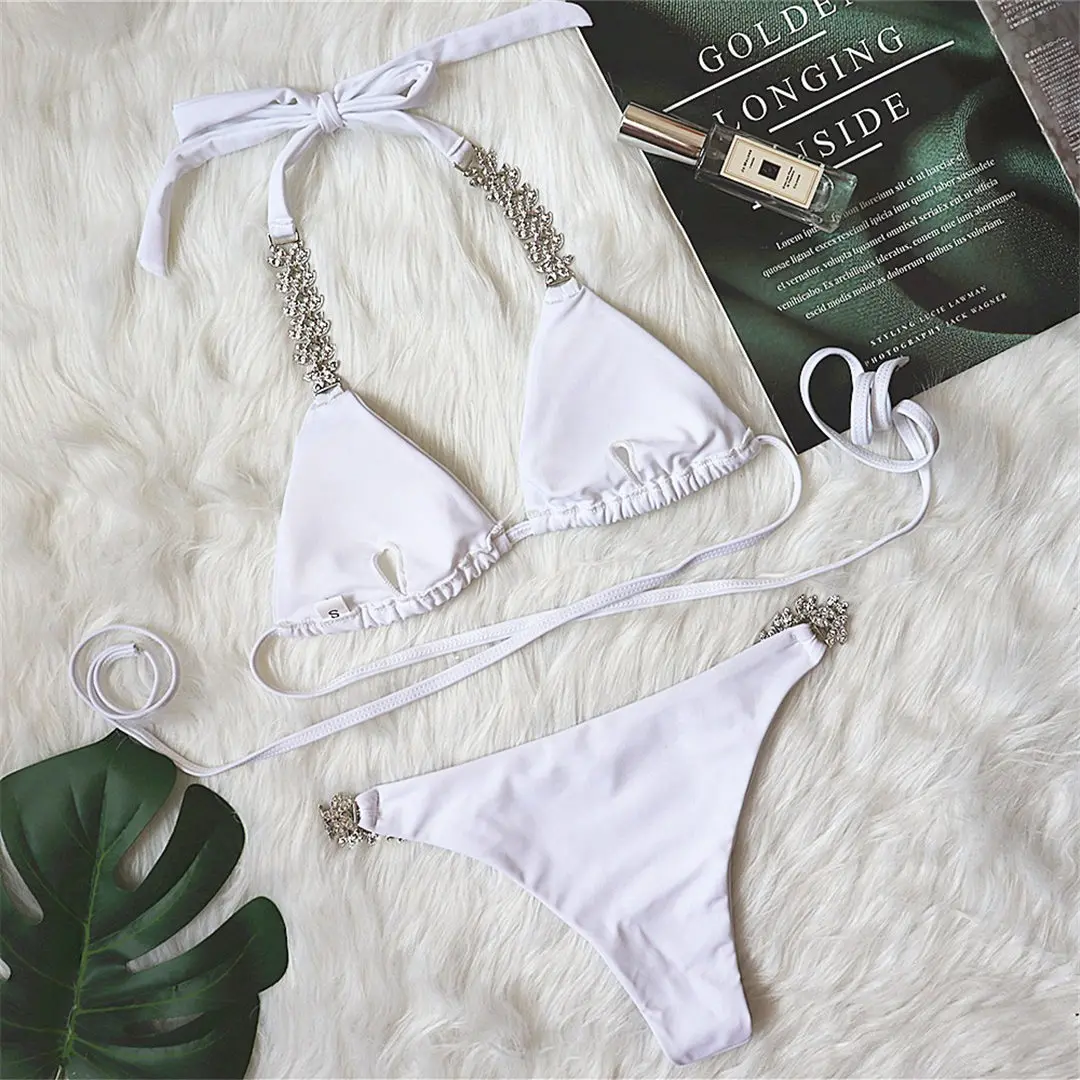 2025 Halter Bikini Women Swimwear Female Swimsuit Two-pieces Bikini set With Shiny Diamond Decor Bather Bathing Suit Swim V2386