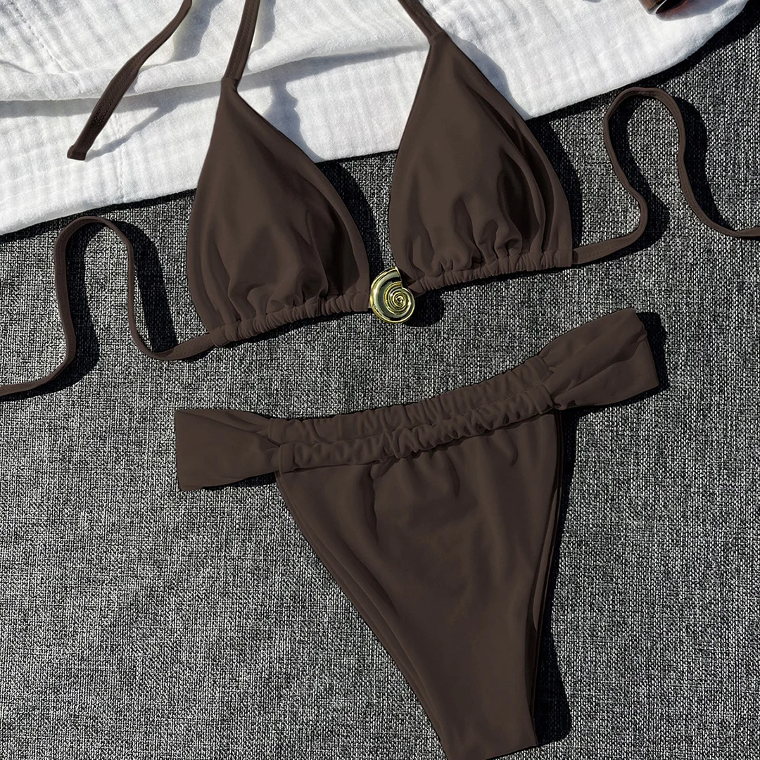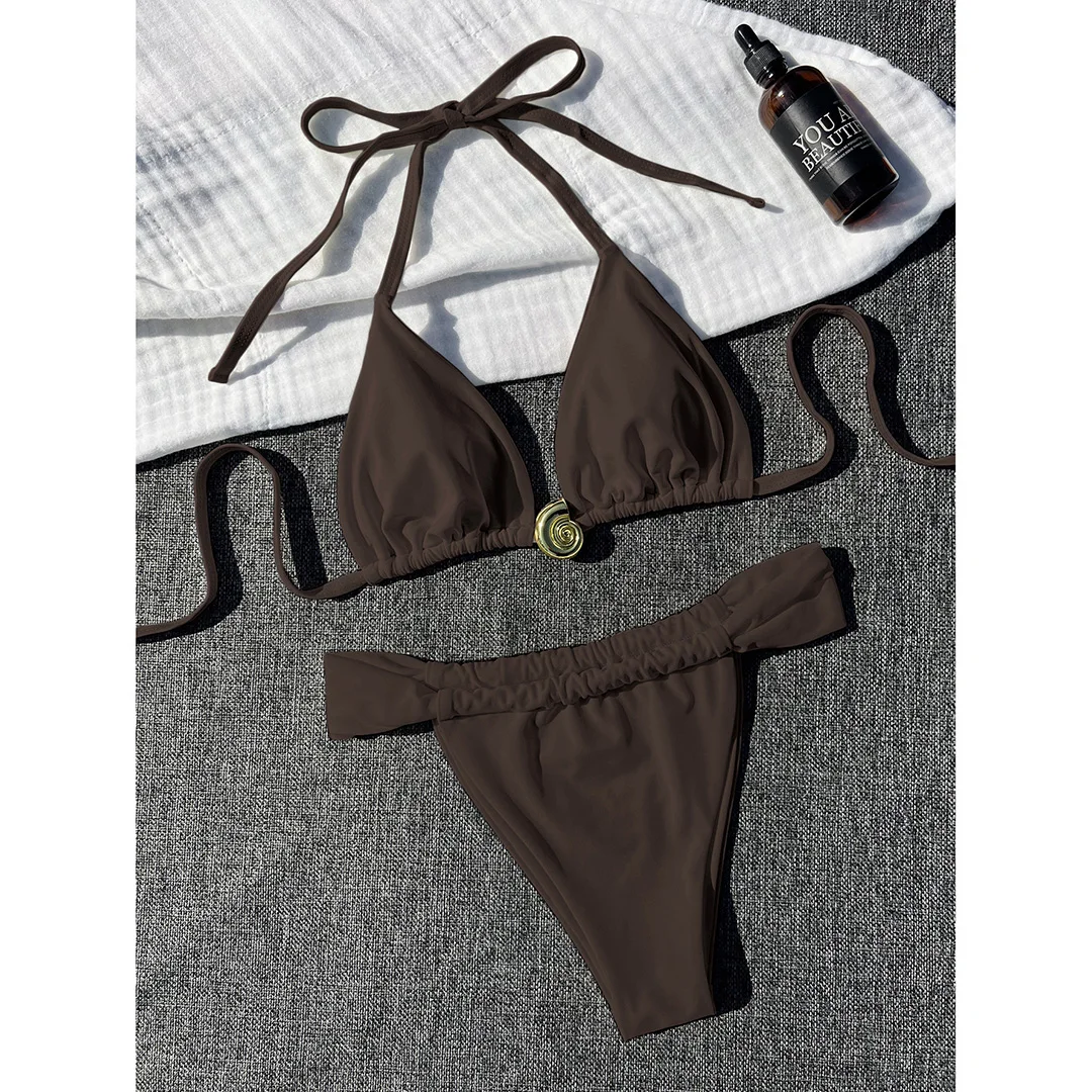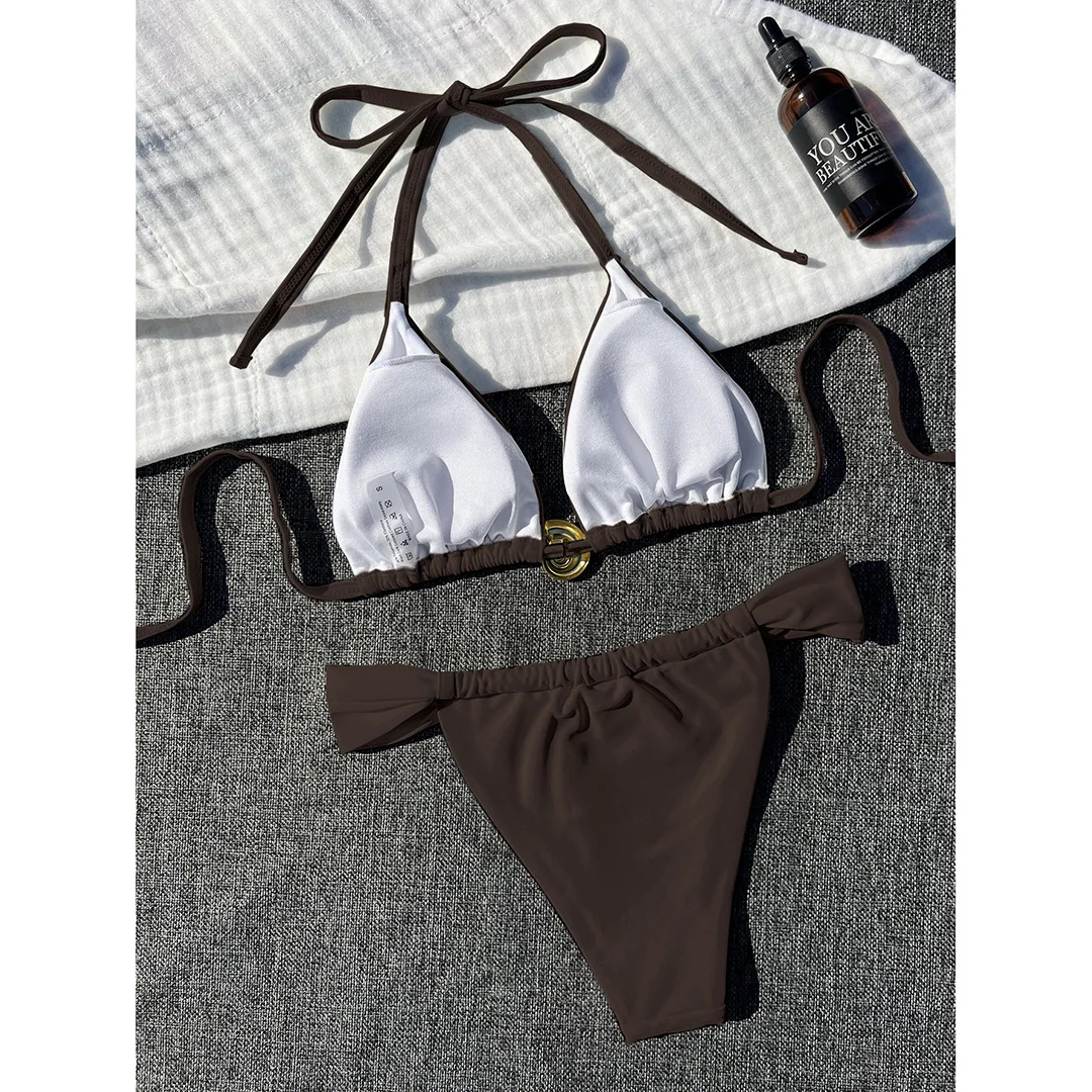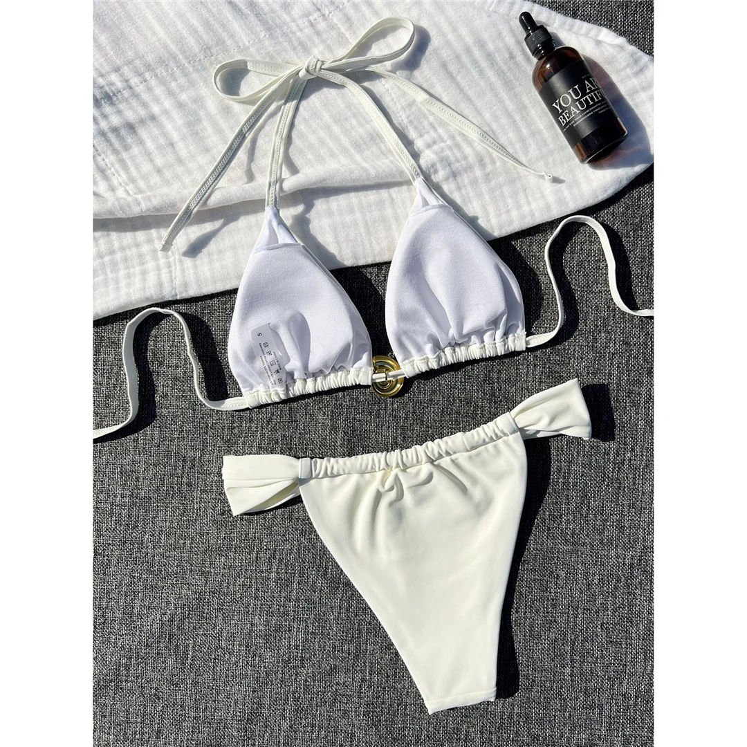2025 Halter High Cut Leg White Bikini Women Swimwear Female Swimsuit Two-pieces Bikini set Padded Bather Bathing Suit Swim V6837