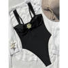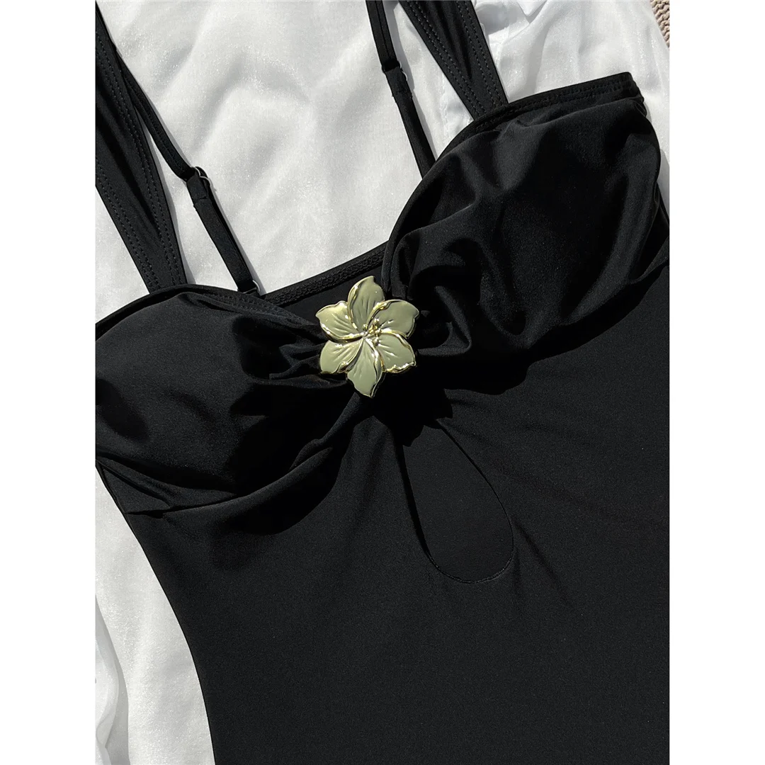 2025 Metal Flower Cut Out One Piece Swimsuit Women Swimwear Female High Leg Cut Monokini Padded Bather Bathing Suit Swim V6836