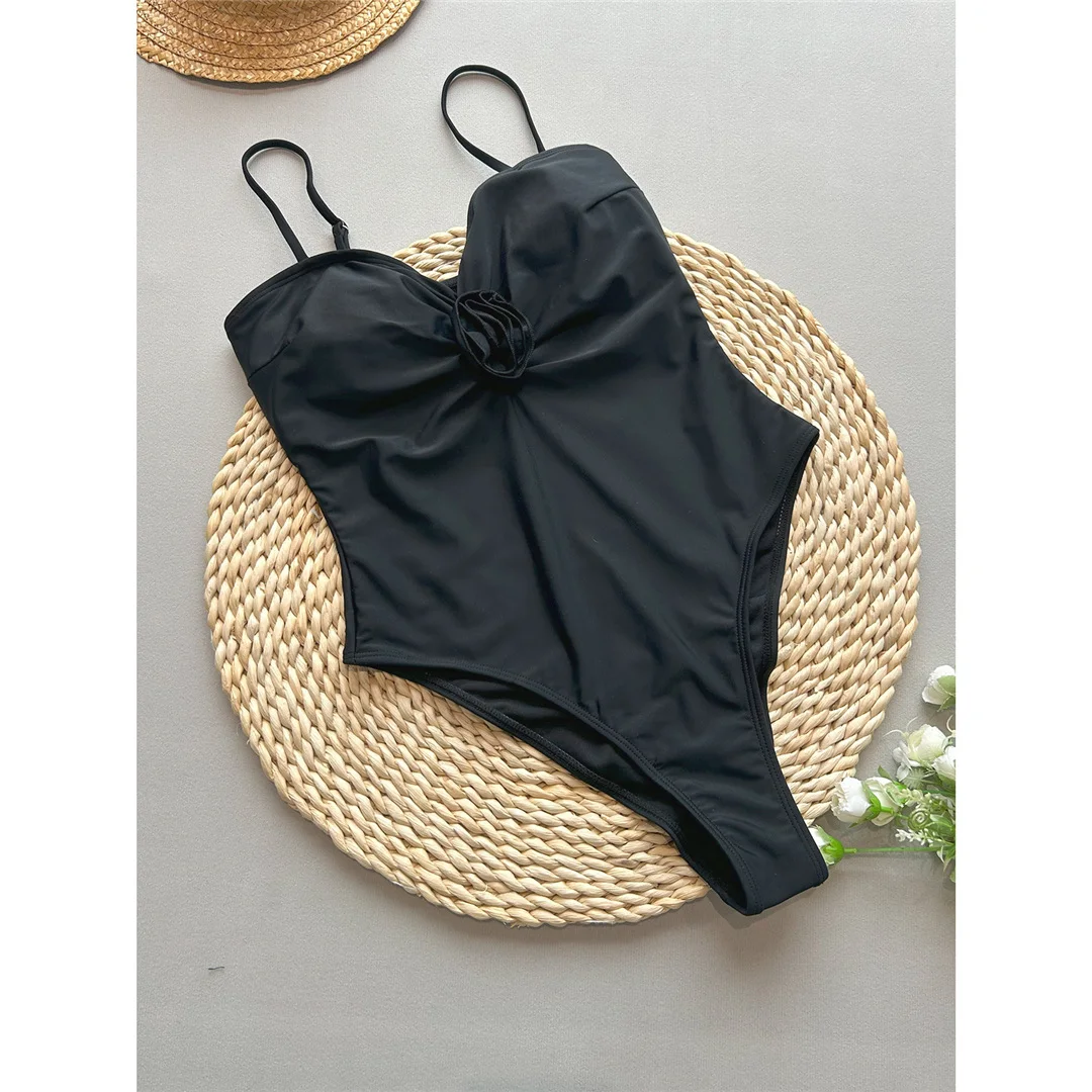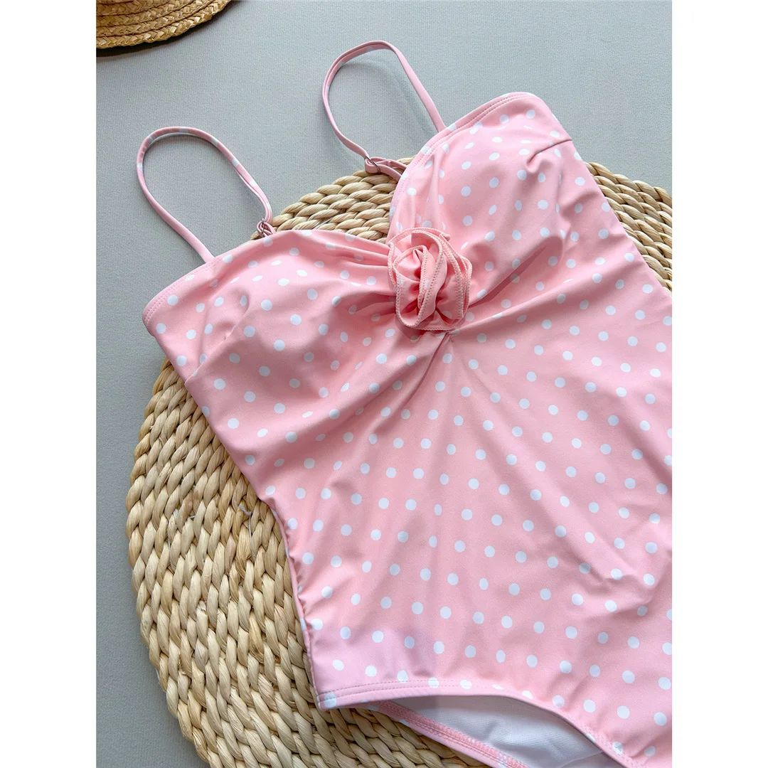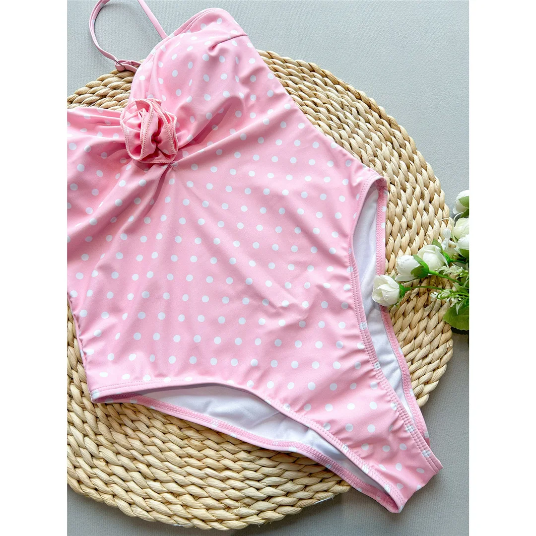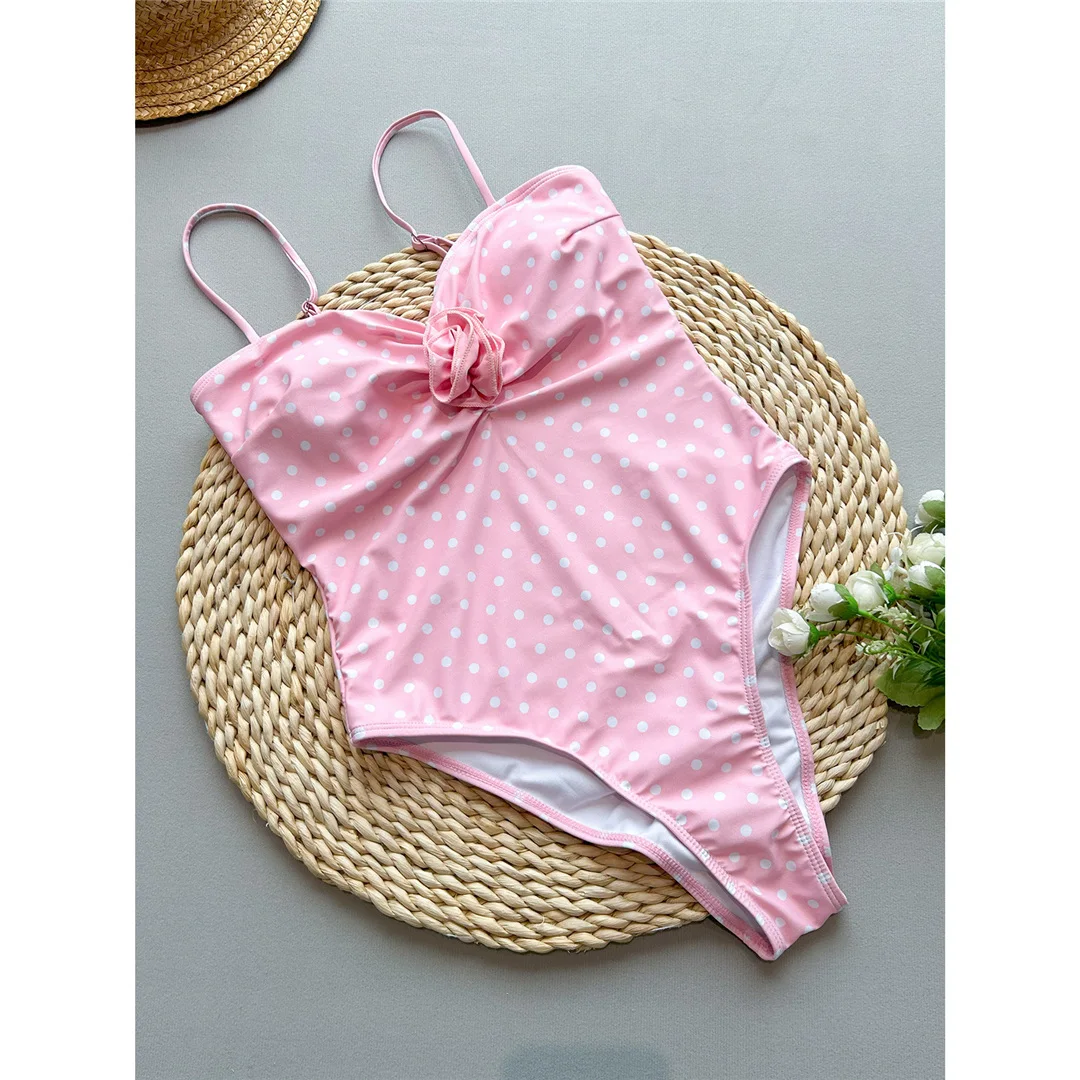 2025 New 3D Flower Dots Scrunch Butt One Piece Swimsuit Women Swimwear Female High Leg Cut Padded Bather Bathing Suit Swim V6890