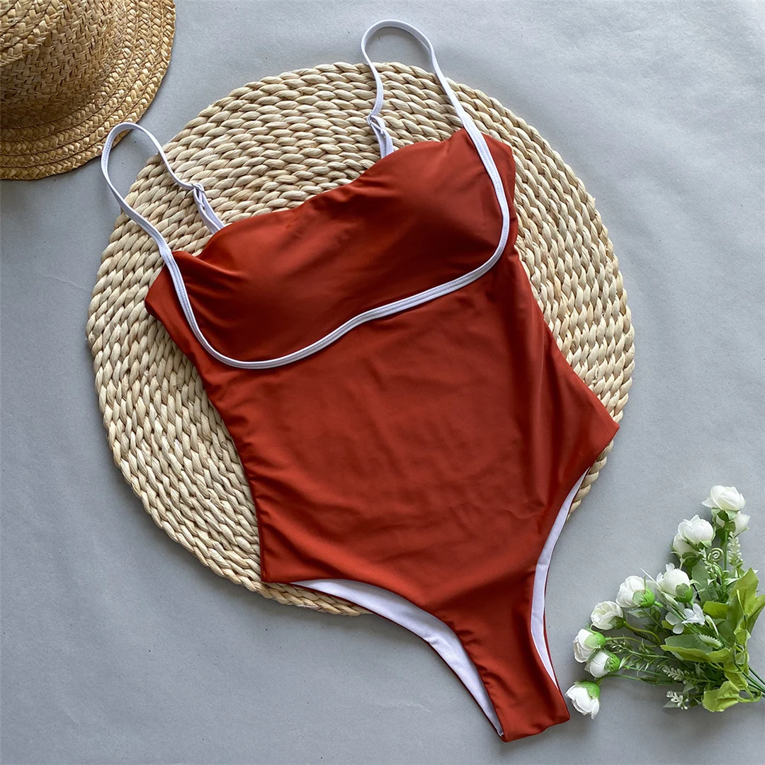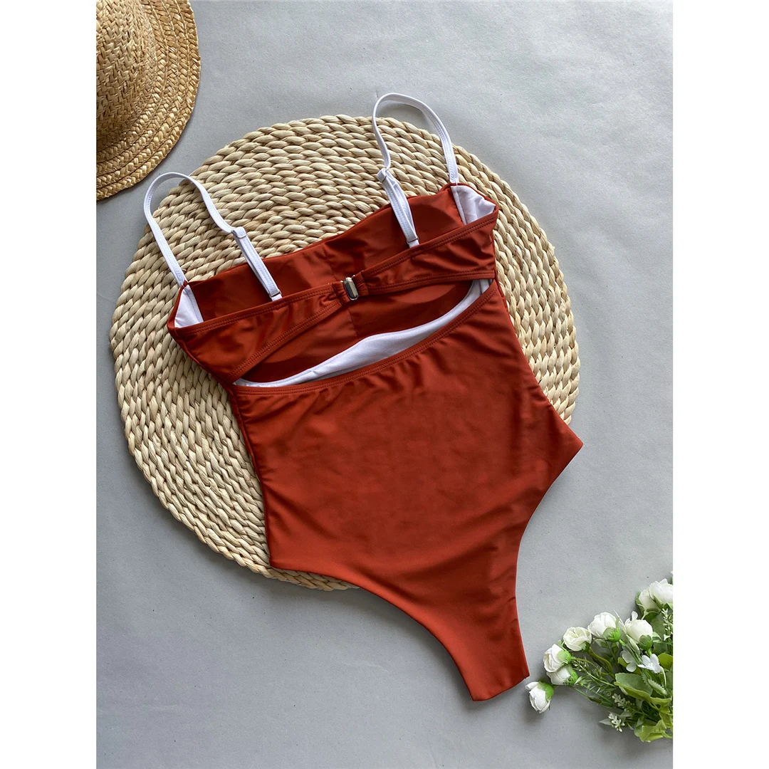 2025 New Sexy Splicing High Leg Cut One Piece Swimsuit Women Swimwear Female Monokini Padded Bather Bathing Suit Swim V5626