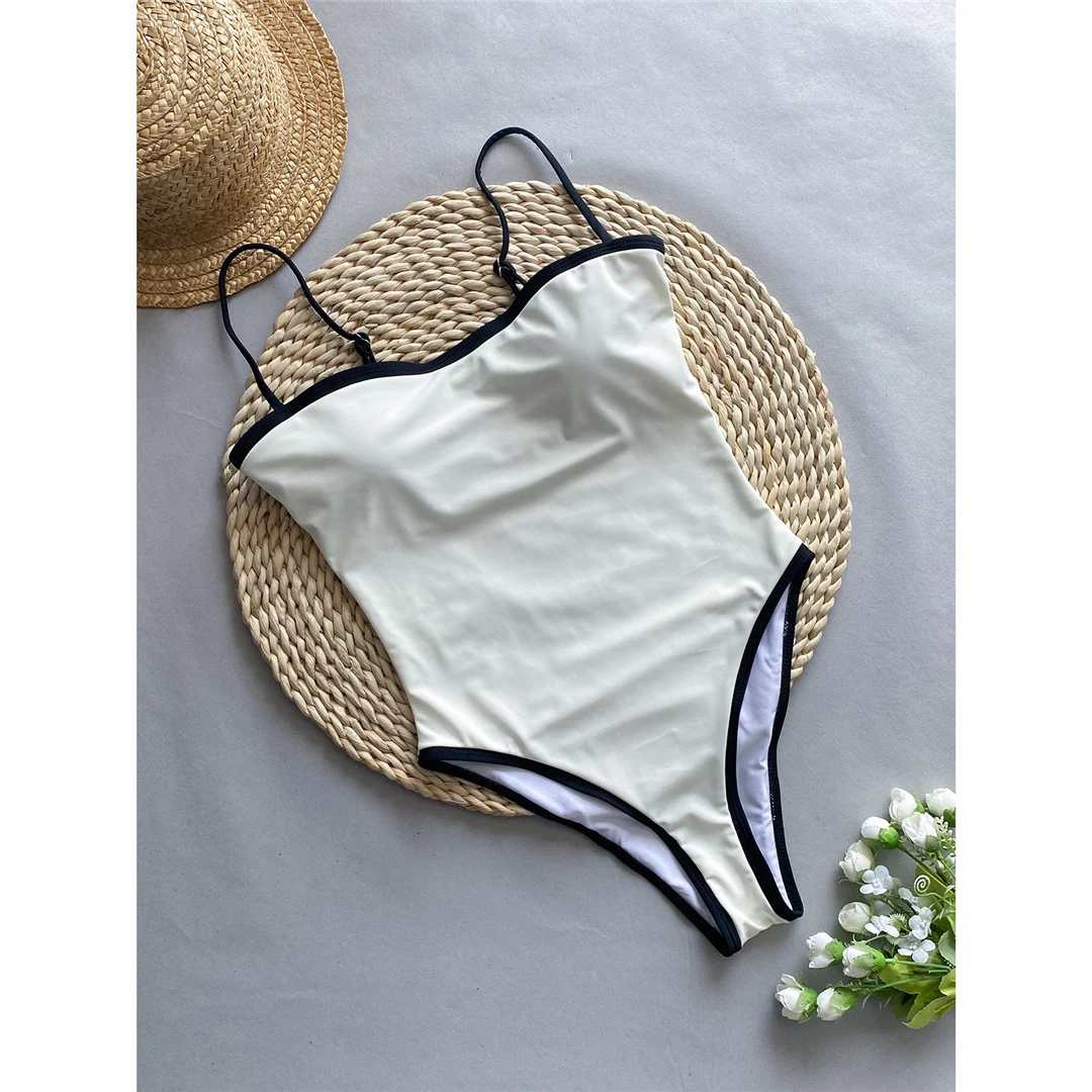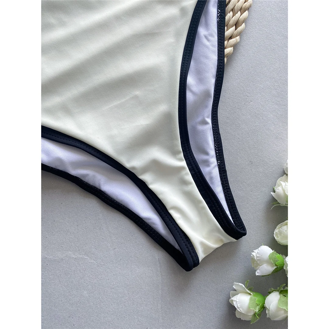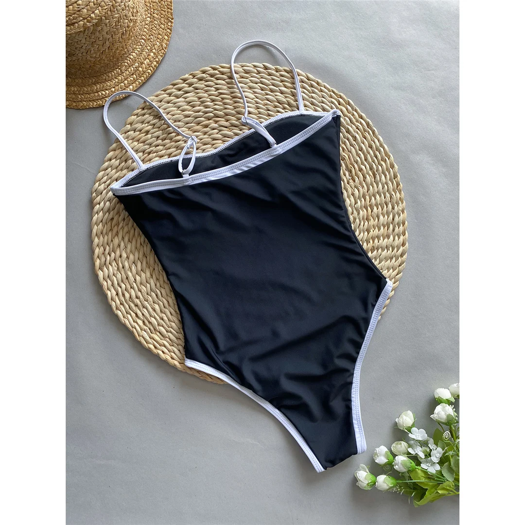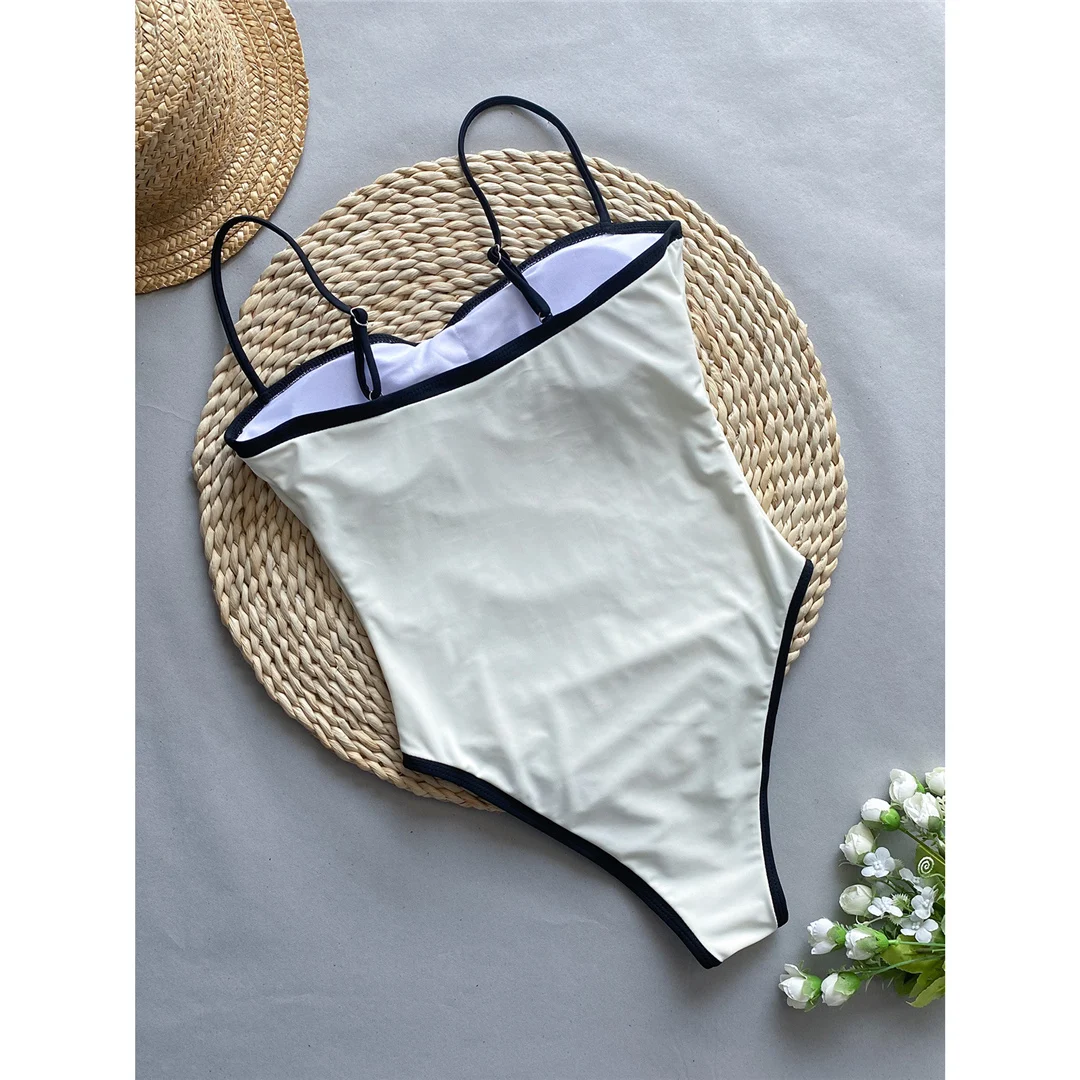 2025 Sexy Color Block Splicing High Leg Cut Full Back Women Swimwear One Piece Swimsuit Female Bather Bathing Suit Swim V5622