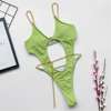 2025 Sexy Golden Chain String High Cut Leg One Piece Swimsuit Women Swimwear Female Bather Tummy Cut Out Bathing Suit Swim V1667