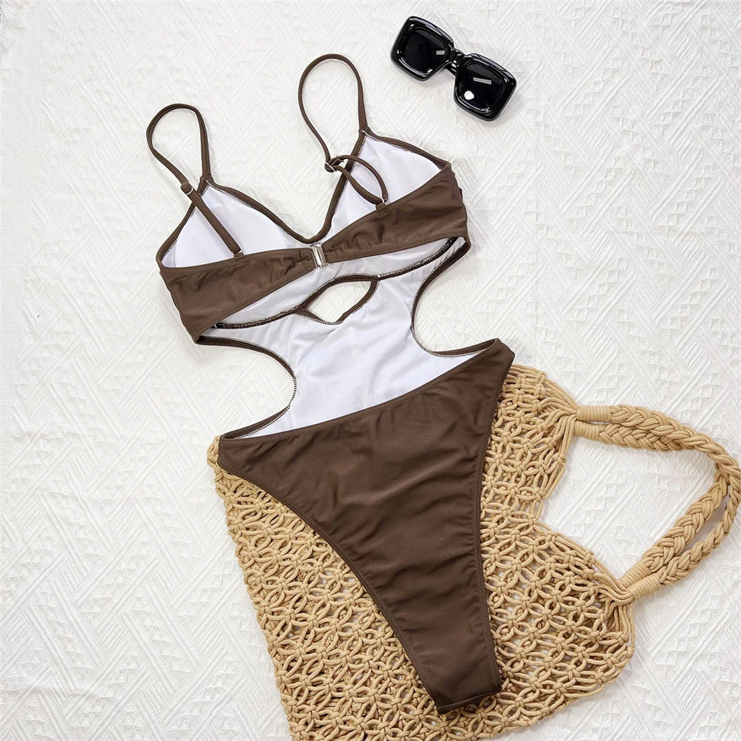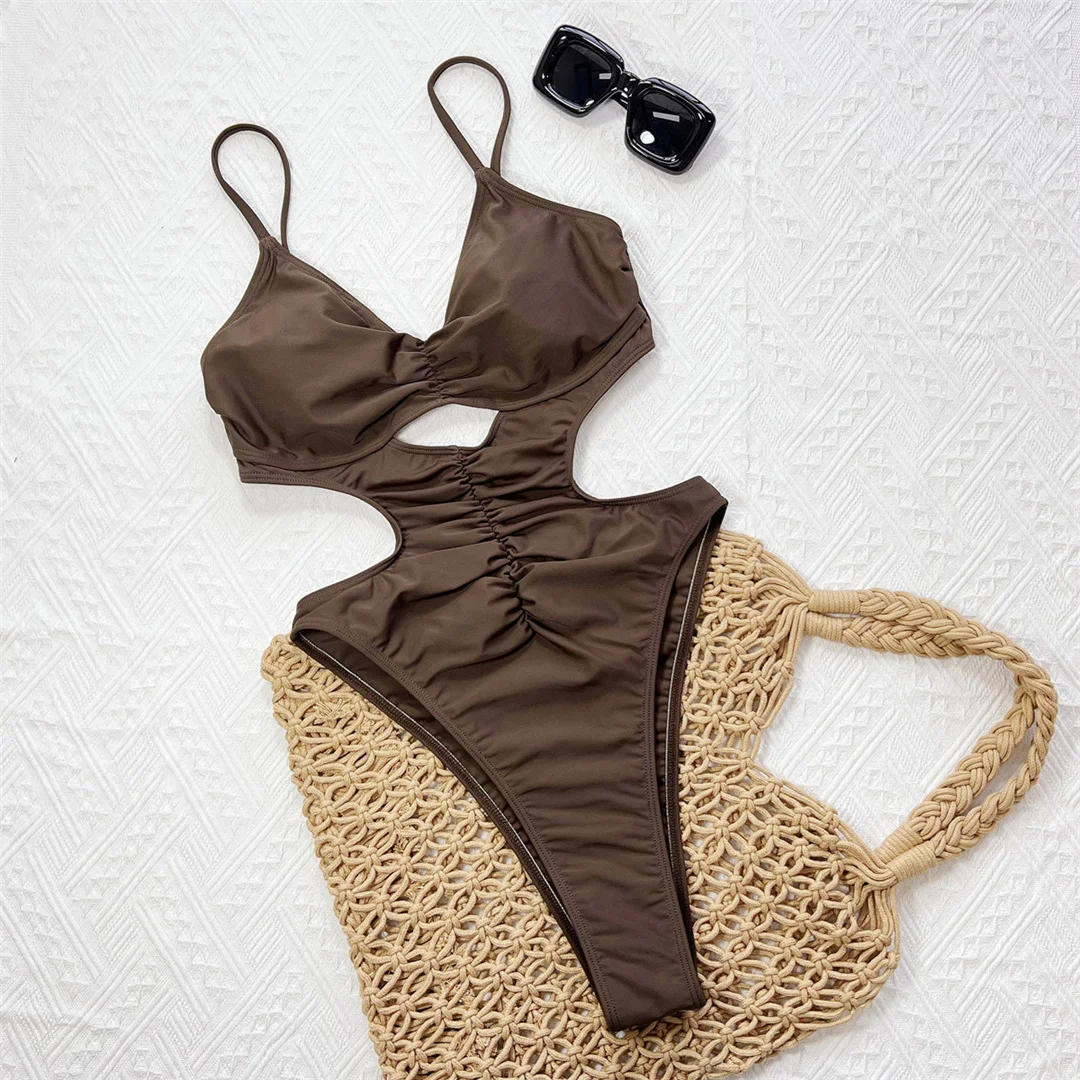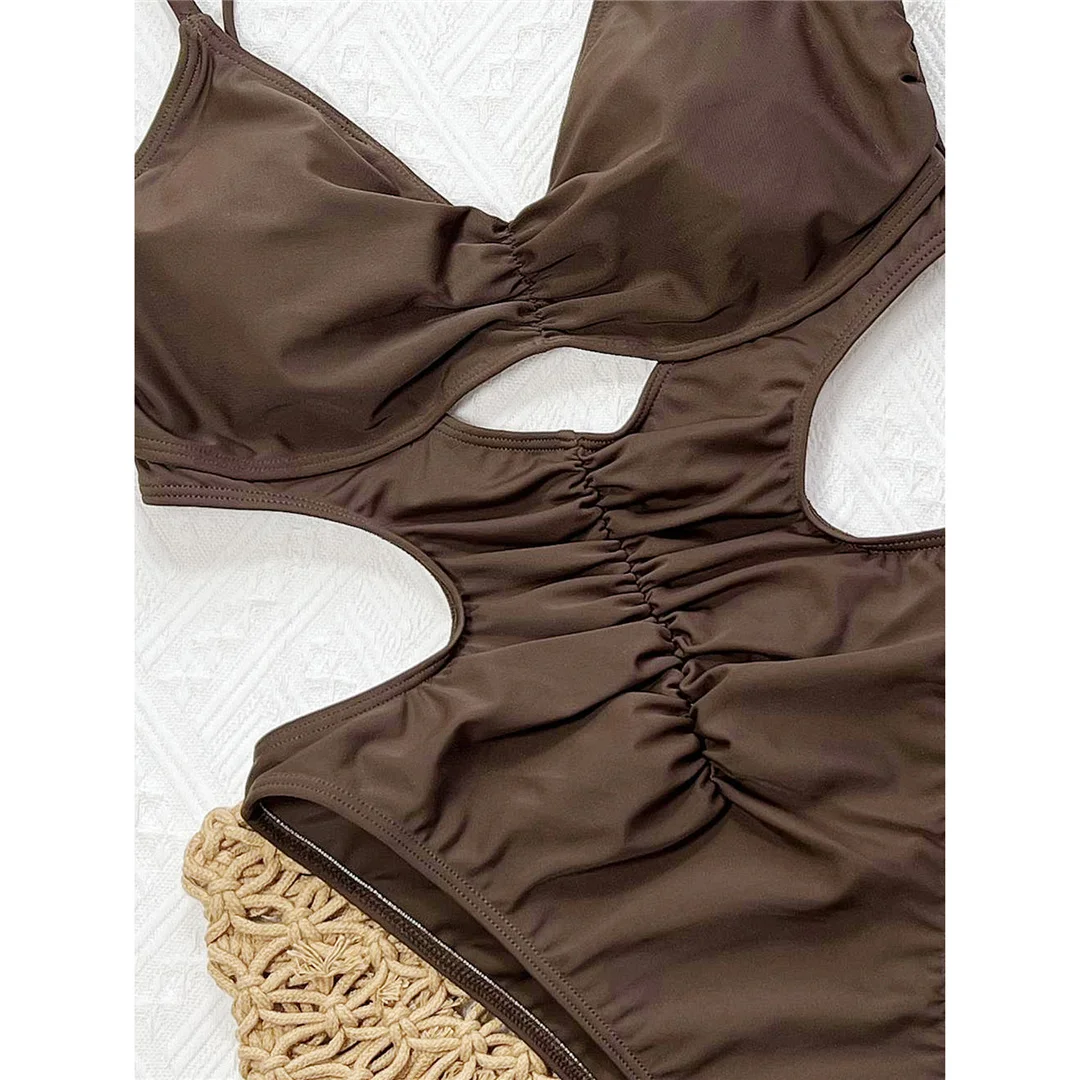 2025 Sexy Wrinkled Cut Out Backless Women Swimwear One Piece Swimsuit Female High Leg Cut Padded Bather Bathing Suit Swim V7153