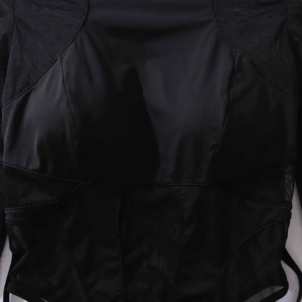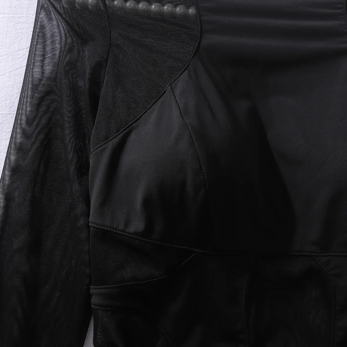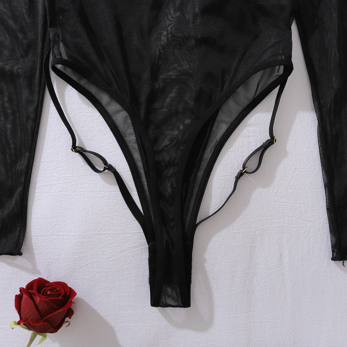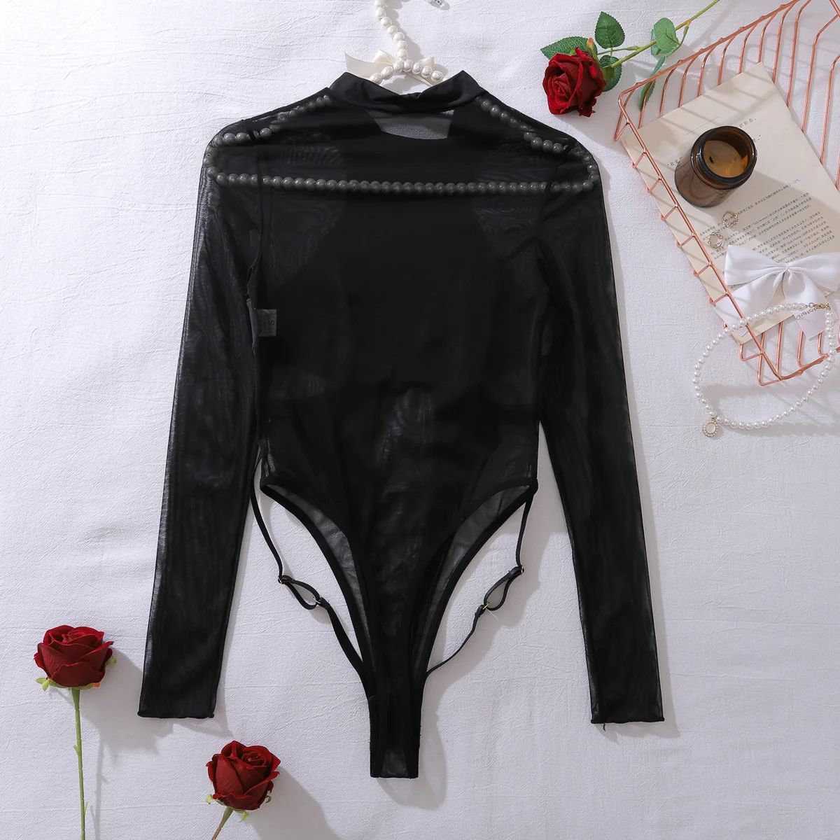 2025 ultra-thin mesh see through waist cinching sexy slim fit patchwork jumpsuit looks slim and can be opened crotch