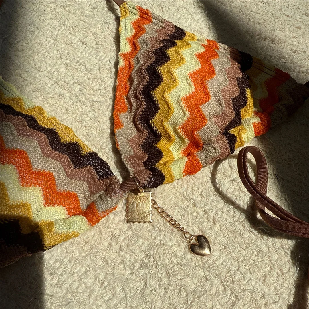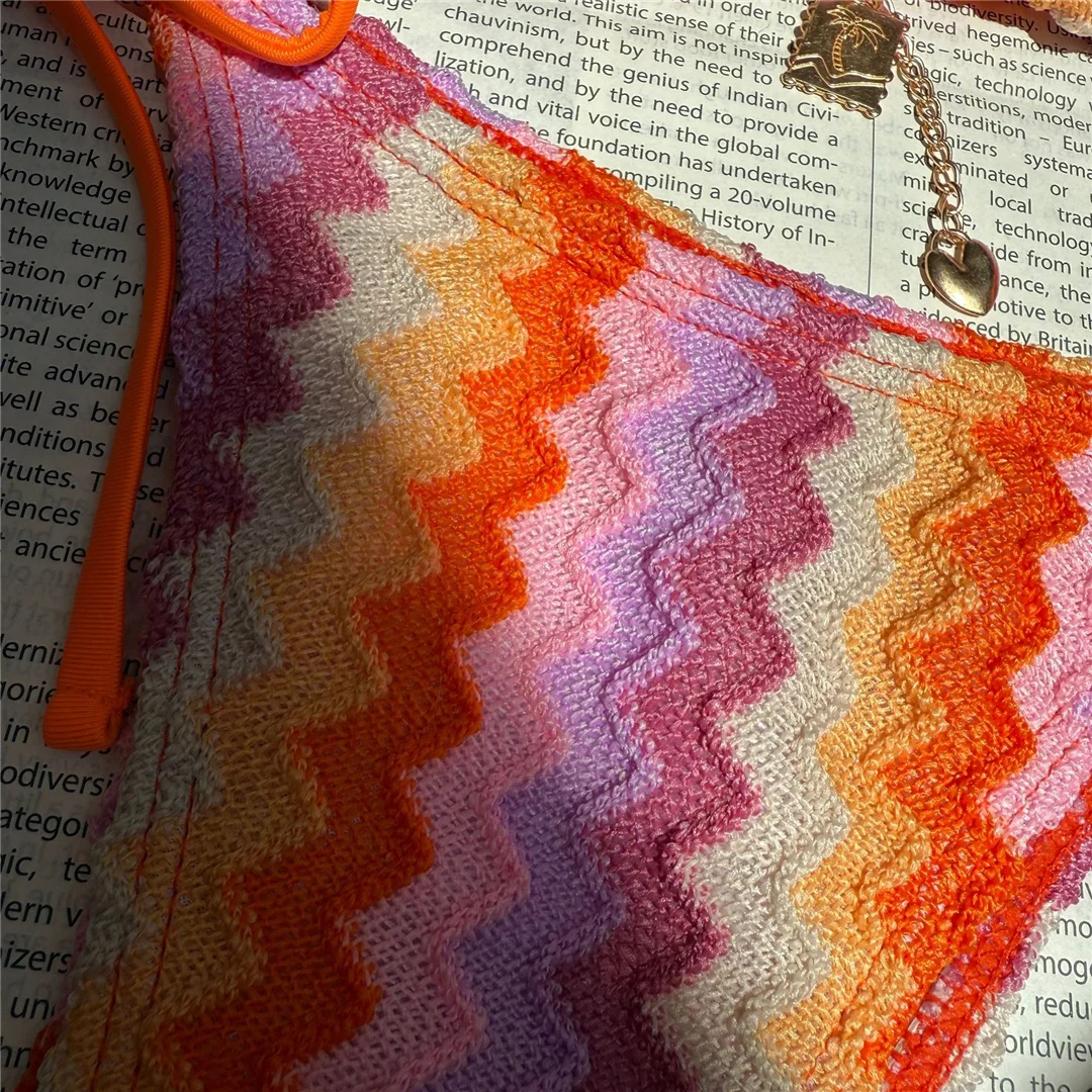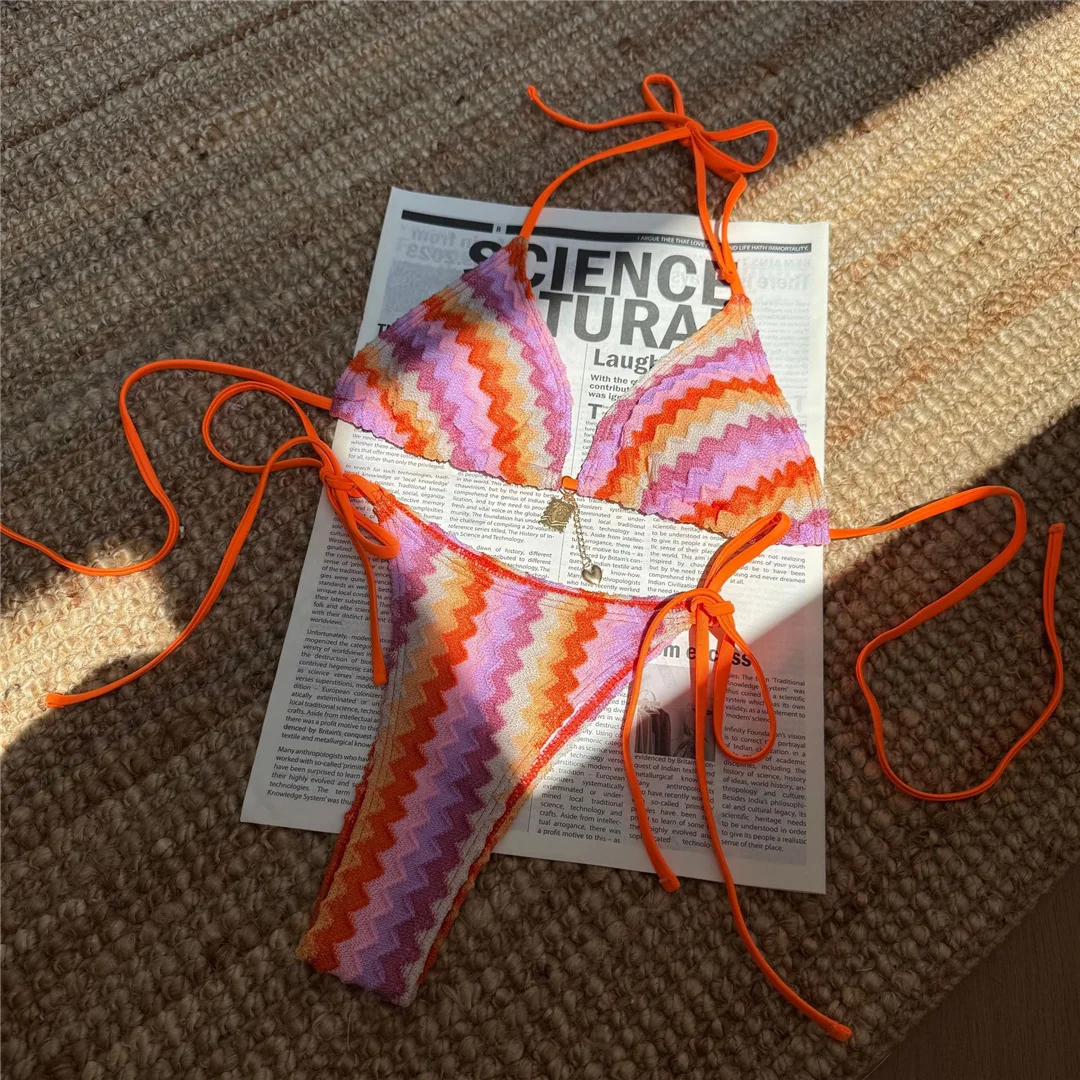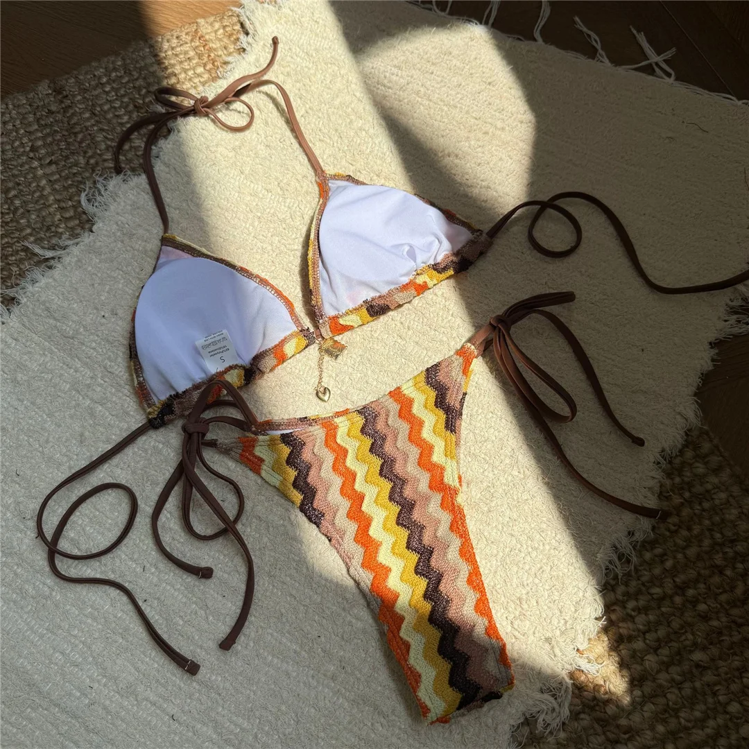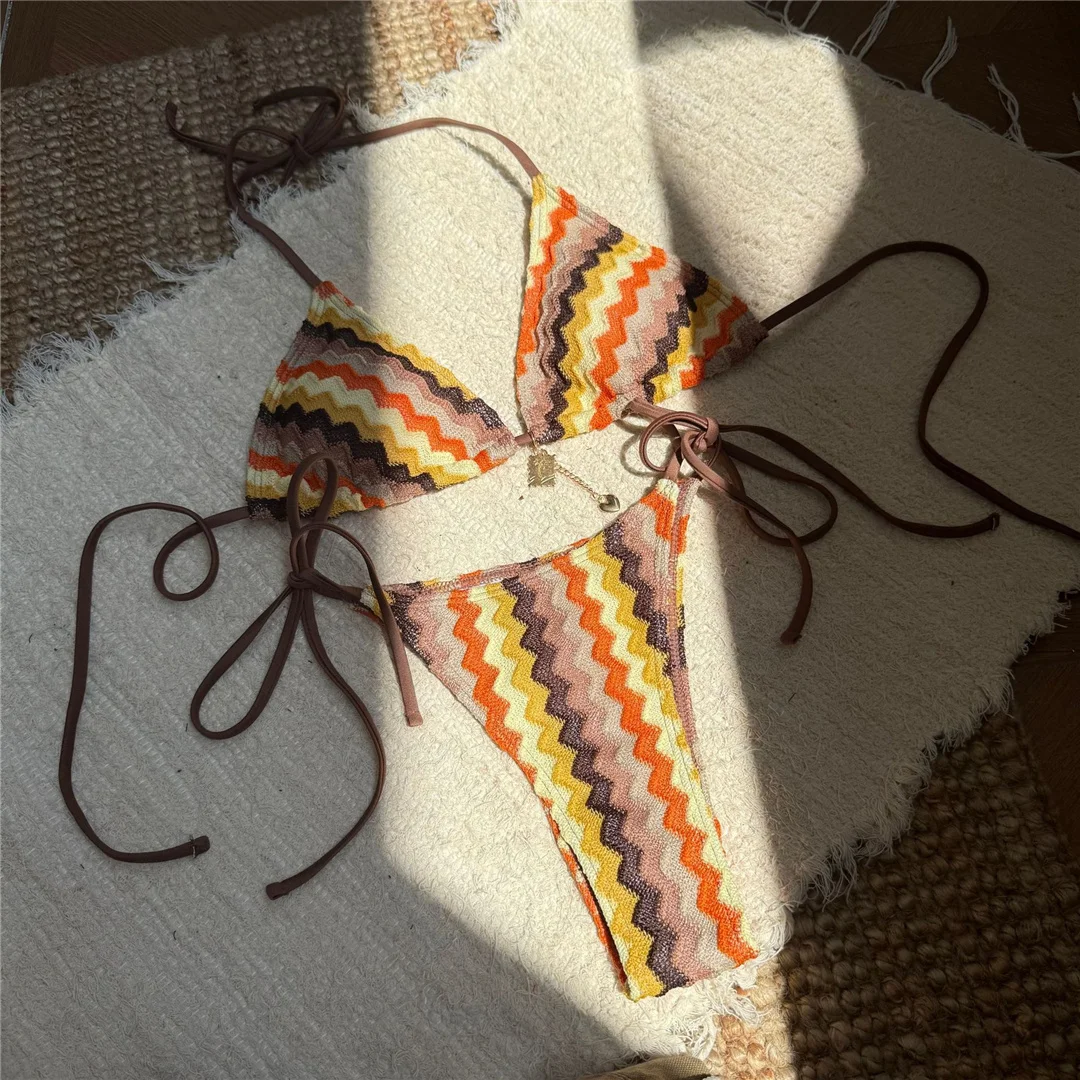2025 Waves Halter Bikini Female Swimsuit Women Swimwear Two-pieces Bikini set High Leg Cut Padded Bather Bathing Suit Swim V6969