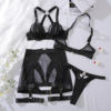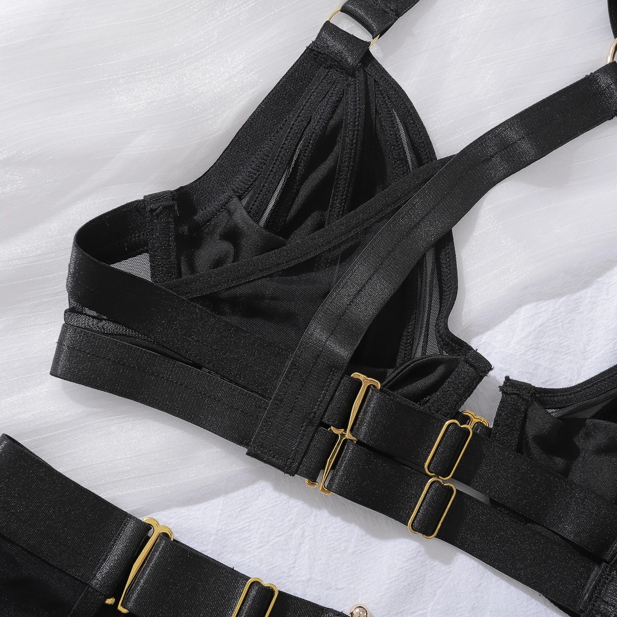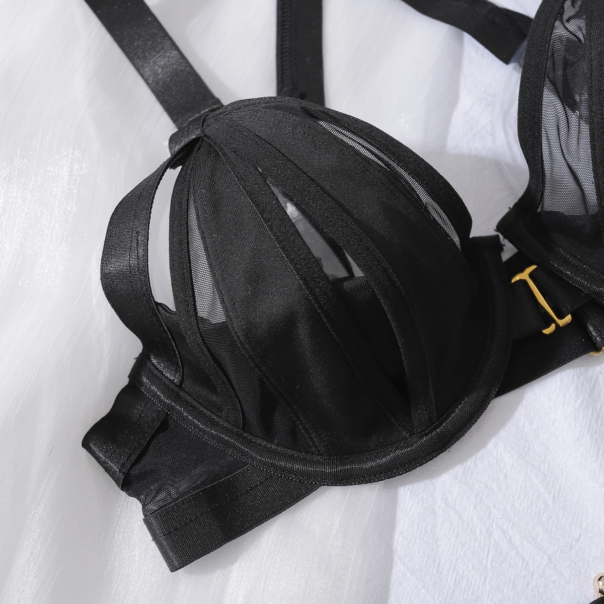 2025 Women’s Cross Lace Sexy Underwear Set Club Mesh Breast Enhancement Comfortable Sexy Underwear 5-piece Set