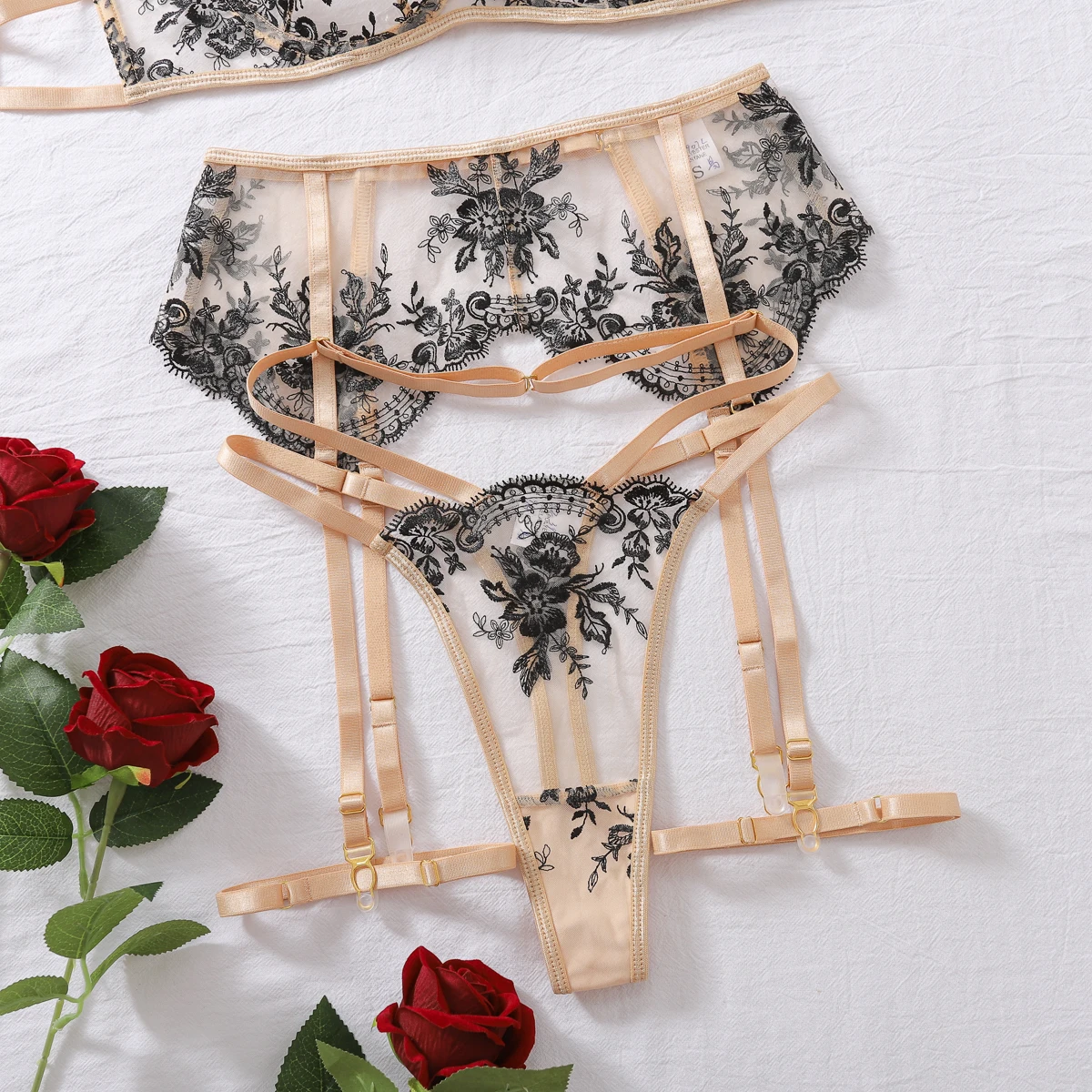 2025 Womens Sexy Lace Bra Set Perspective Underwear Set Thin Flower Underwear Micro Bikini Thong Set