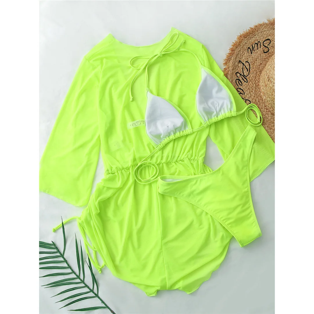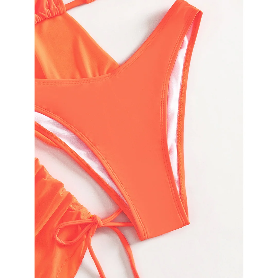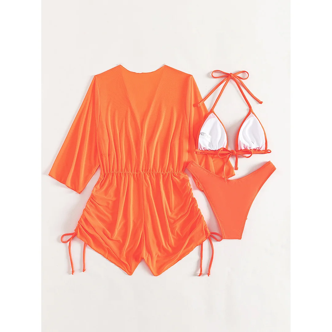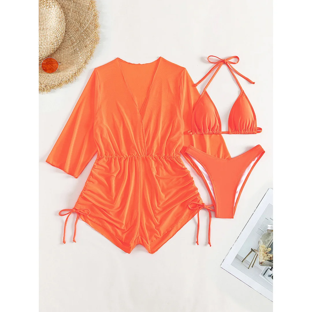 3 PCS Halter Bikini Women Swimwear Female Swimsuit Three-pieces Bikini set With Cover Up Bather Bathing Suit Swim Lady V3529SW