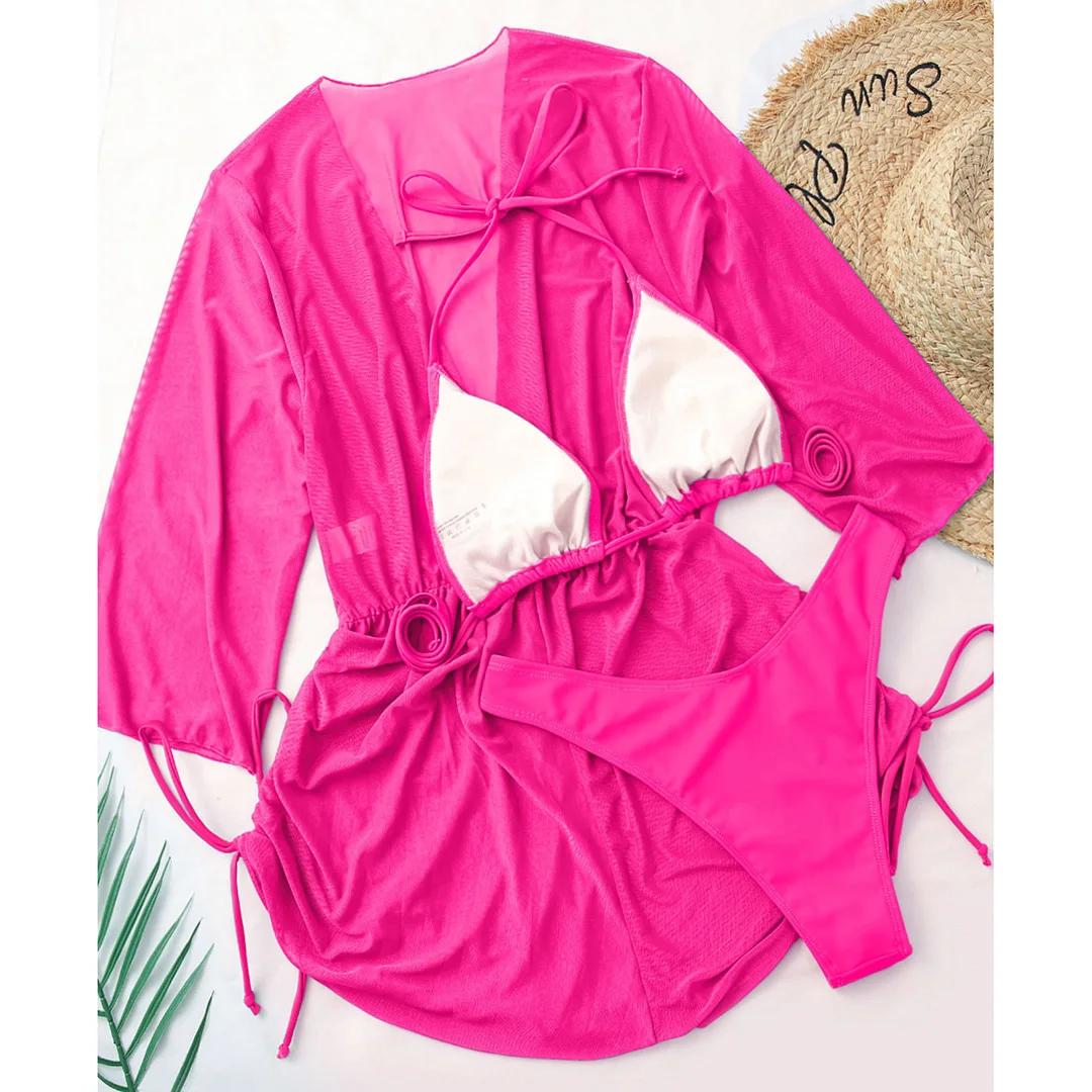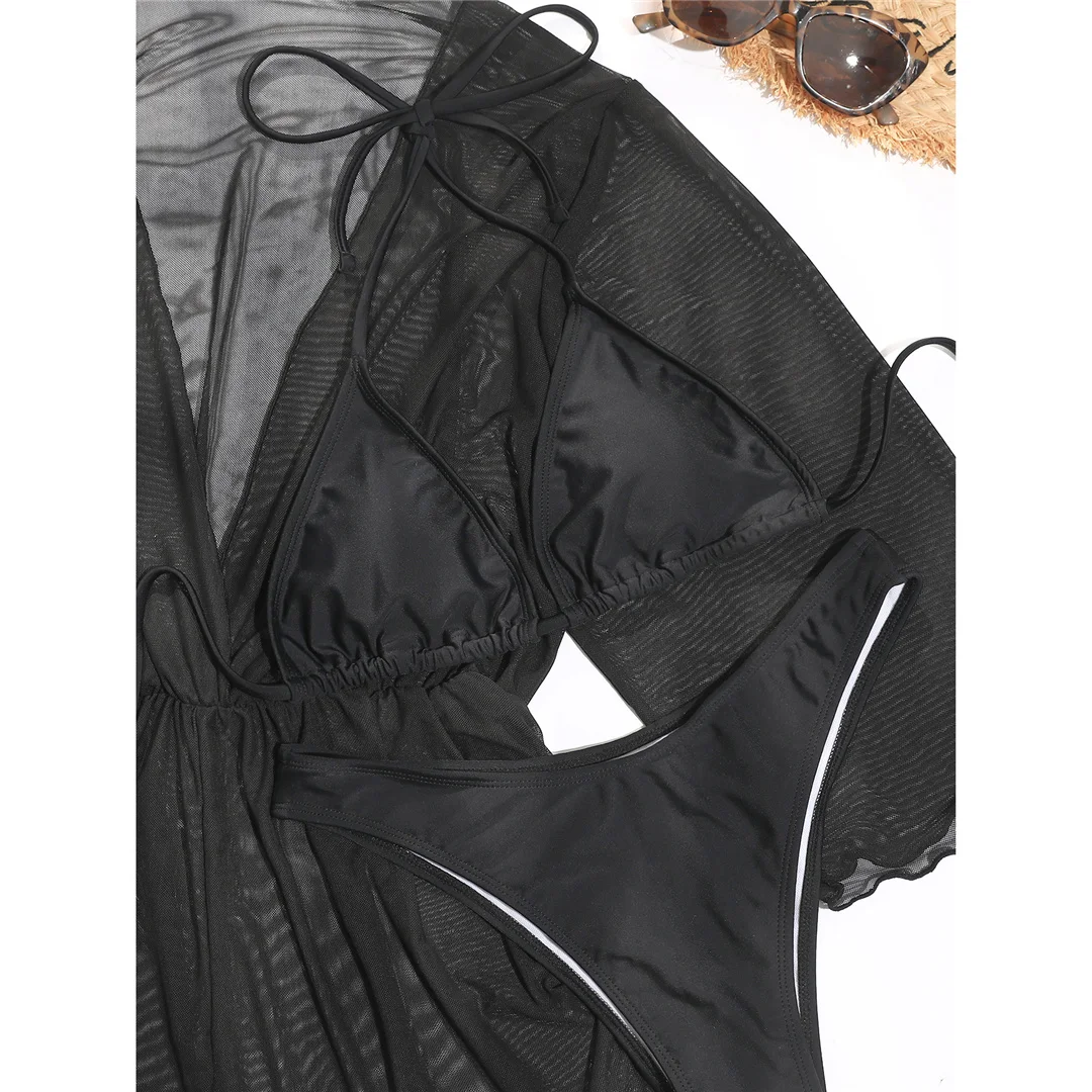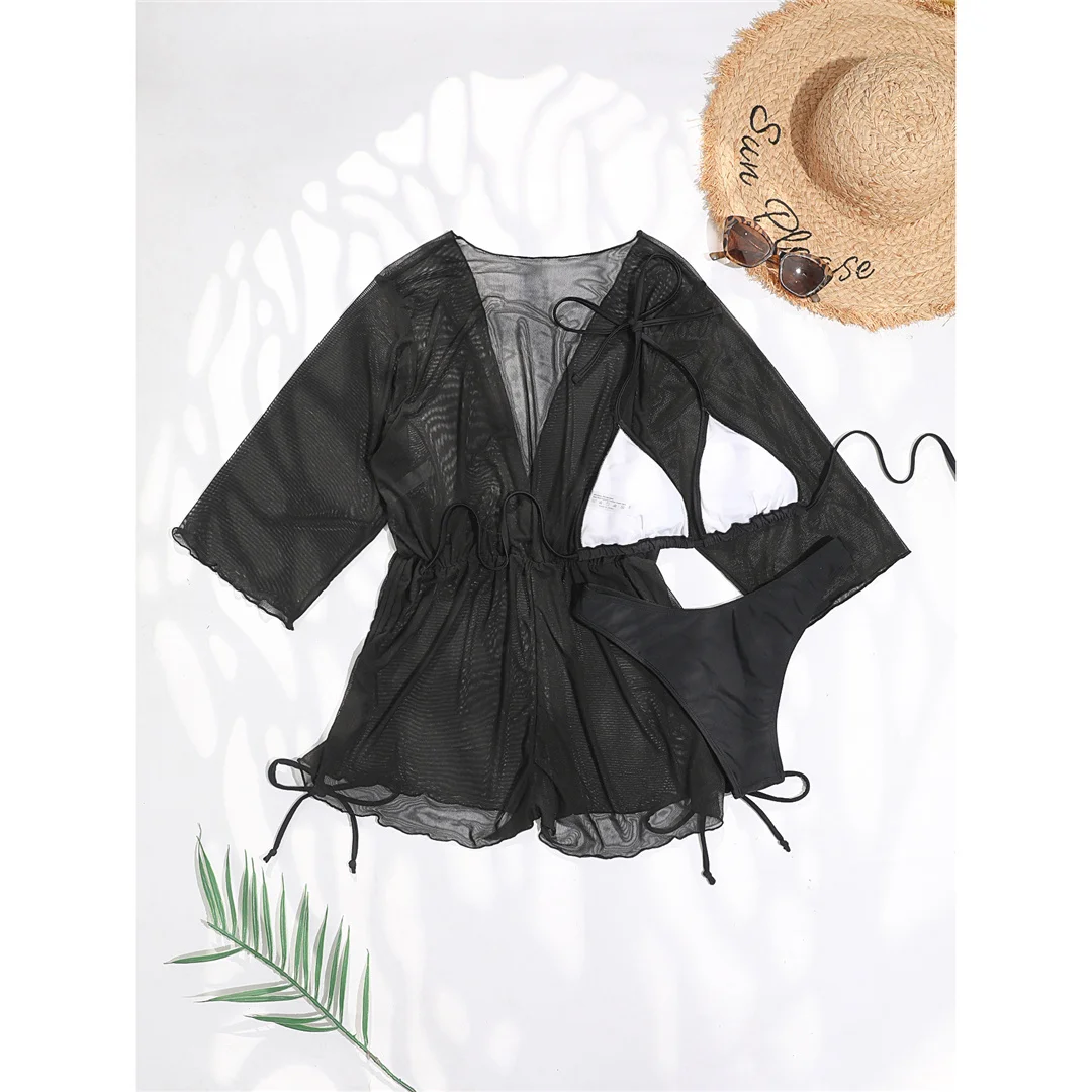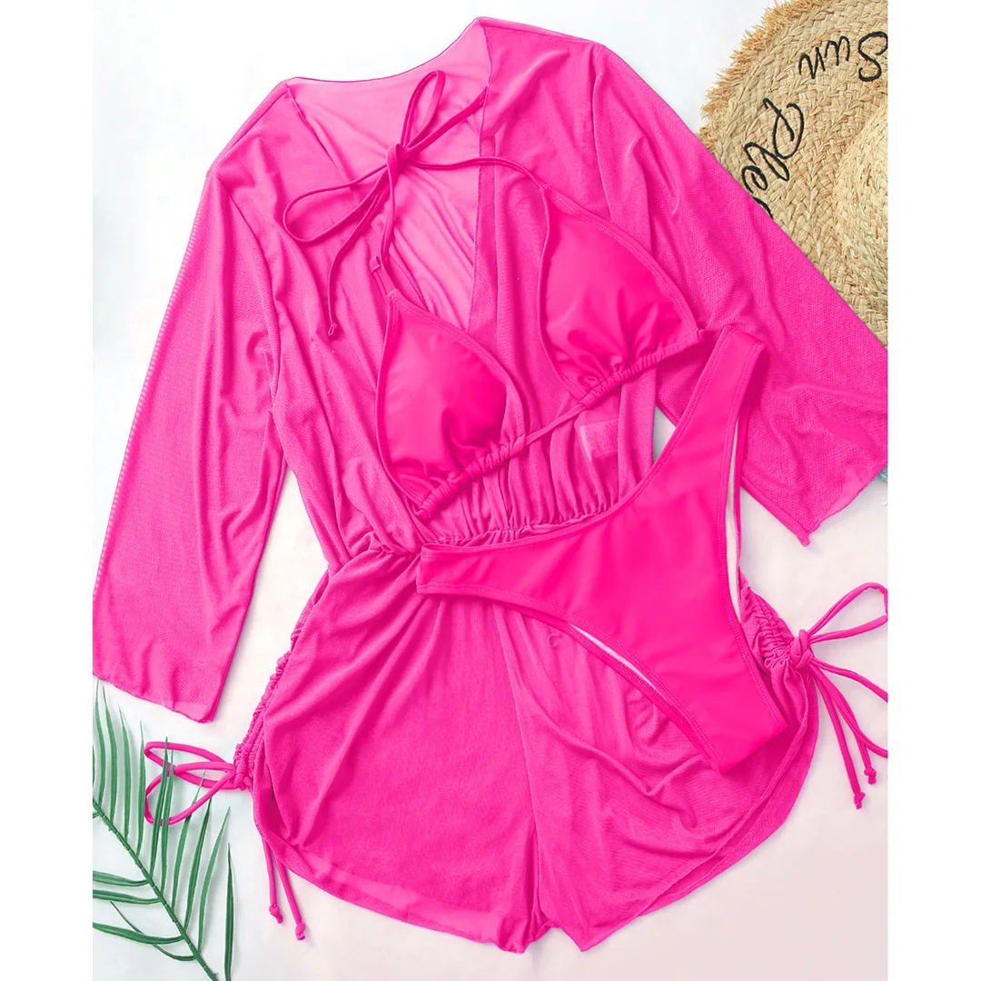 3 PCS Halter Bikini Women Swimwear Female Swimsuit Three-pieces Bikini set With Cover Up Bather Bathing Suit Swim Lady V3529SW