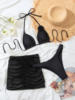 3D Flower With Pleated Skirt Halter Bikini Women Swimwear Female Swimsuit Three-pieces Bikini set Bather Bathing Suit Swim V6393