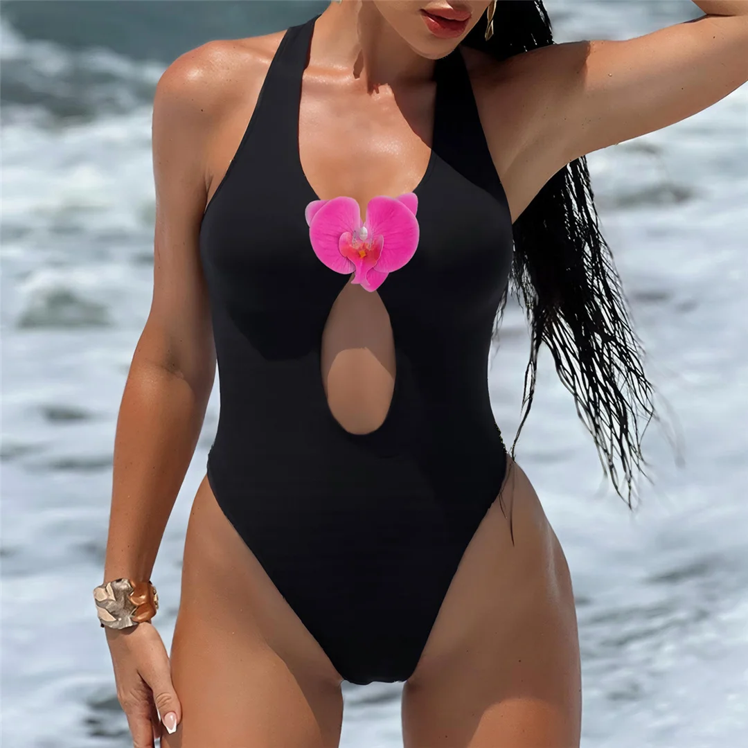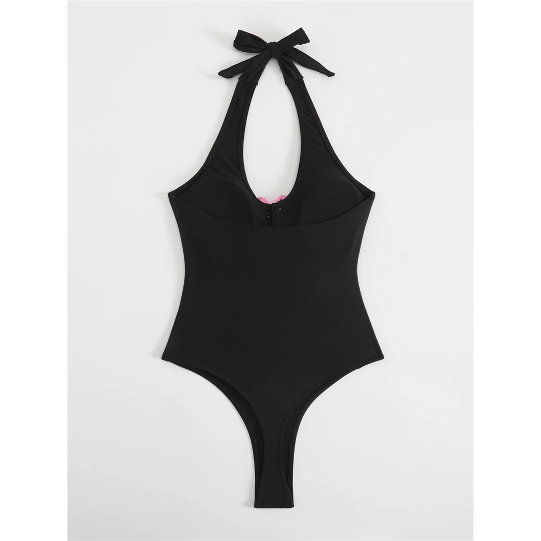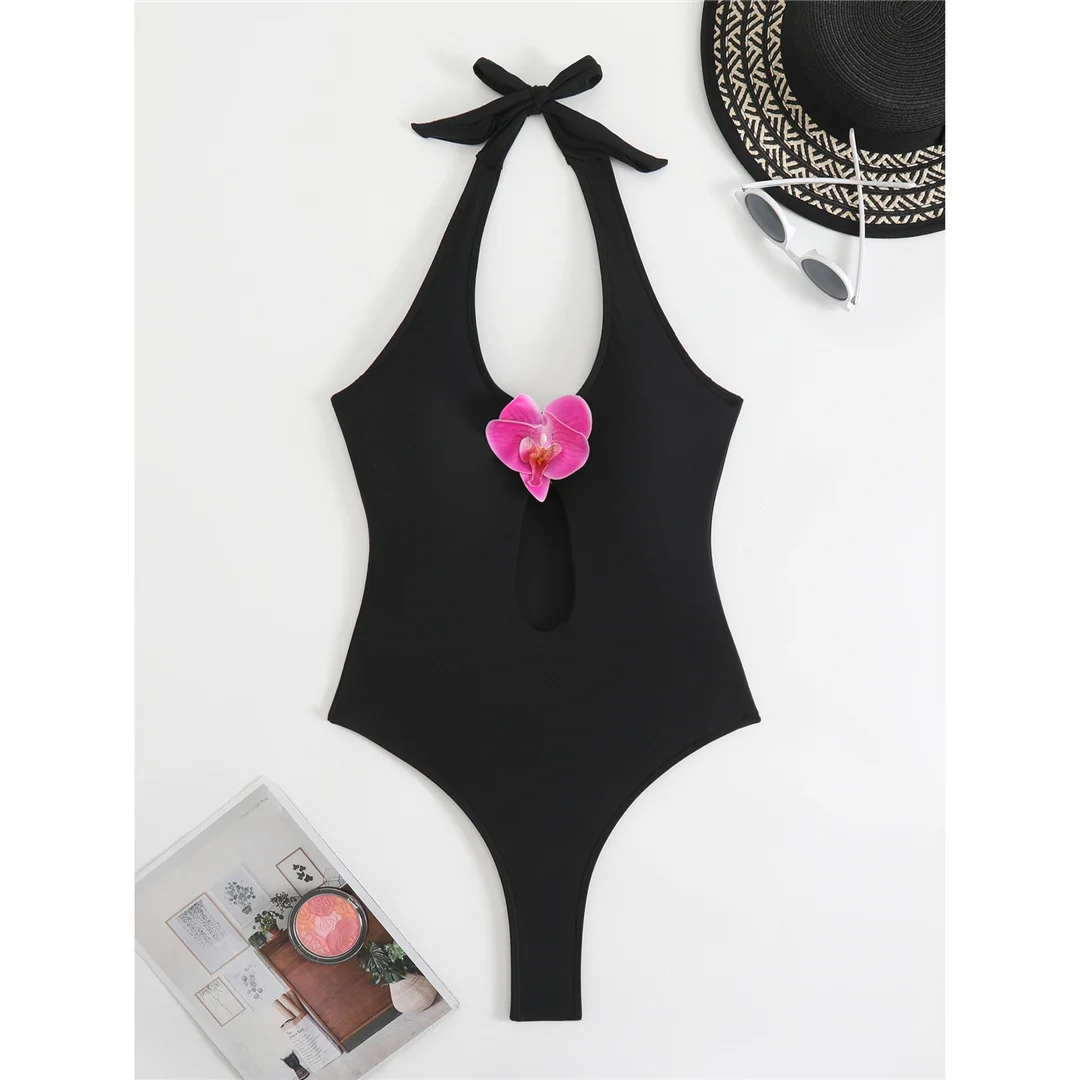 3D Flowers Extreme String Mini Micro Thong Women Swimwear One Piece Swimsuit Female Halter Padded Bather Bathing Suit Swim V7193