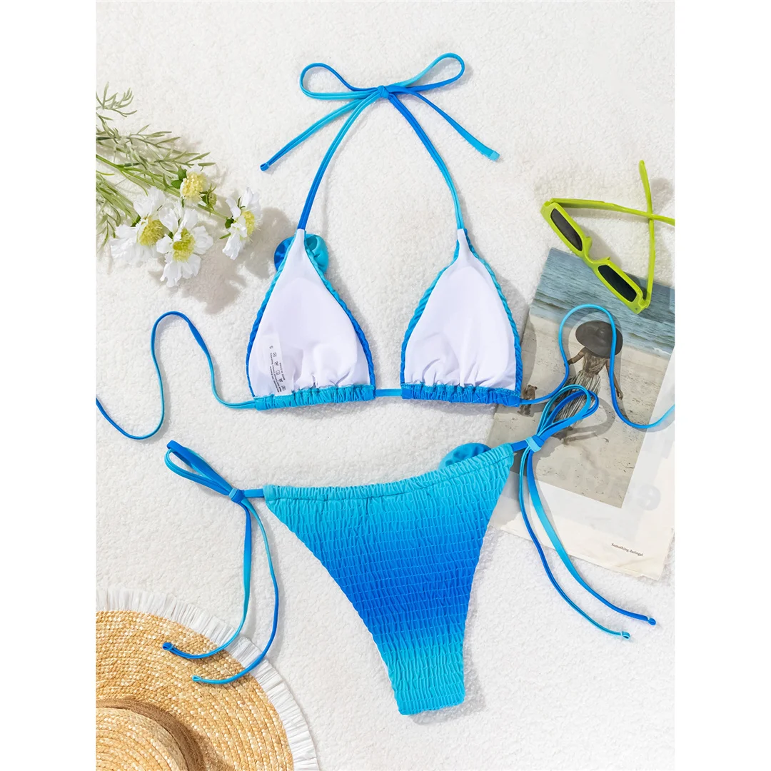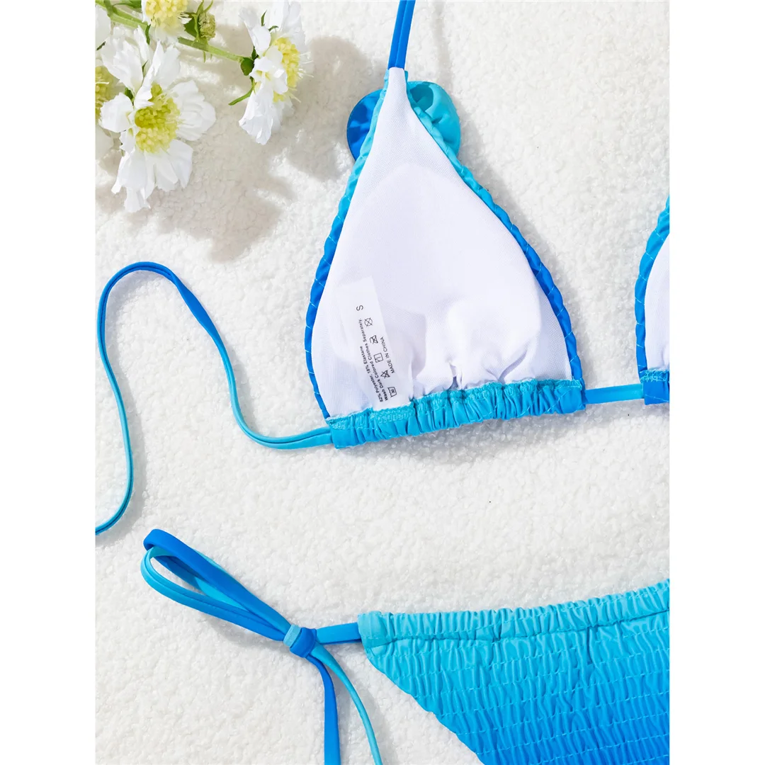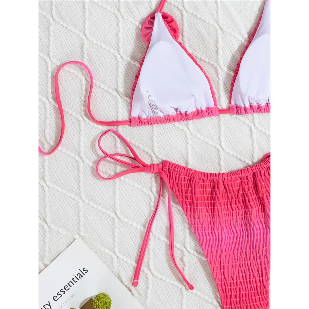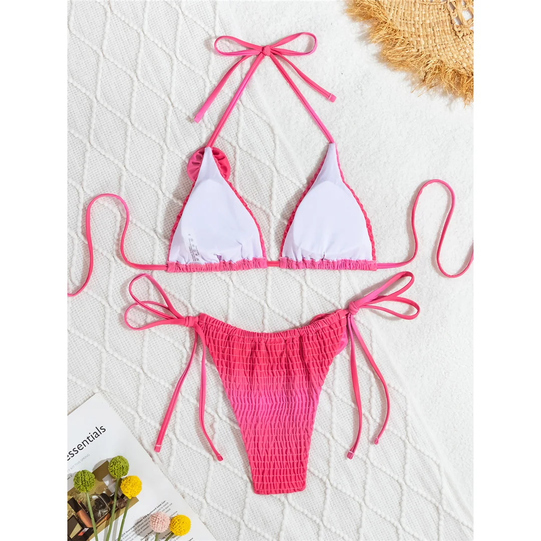 3D Flowers Halter Strappy Wrinkled Bikini Female Swimsuit Women Swimwear Two-pieces Bikini set Bather Bathing Suit Swim V6221