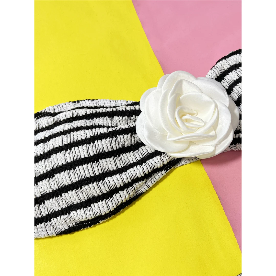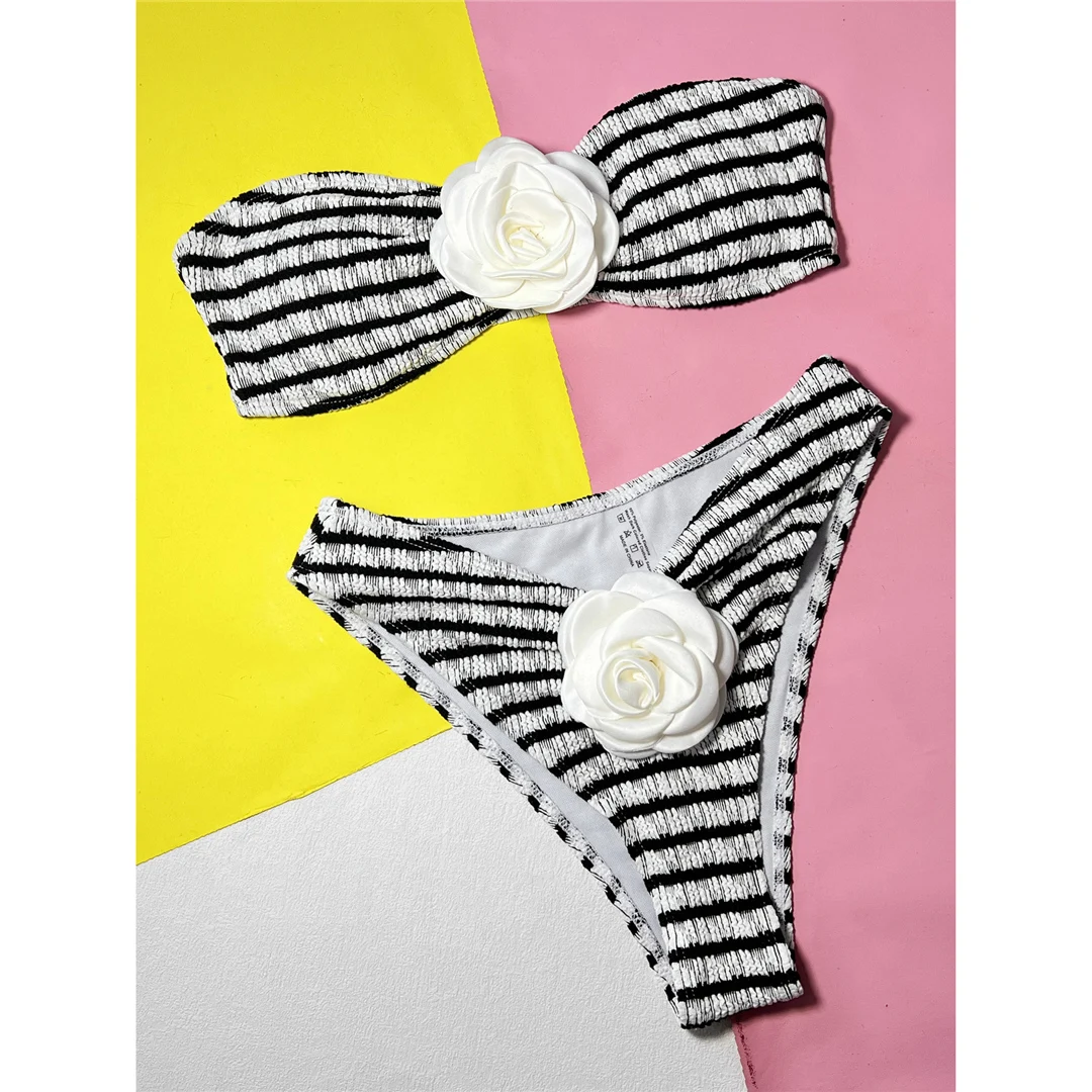 3D Flowers Striped Bandeau Bikini Women Swimwear Female Swimsuit Two-pieces Bikini set Brazilian Bather Bathing Suit Swim V5427