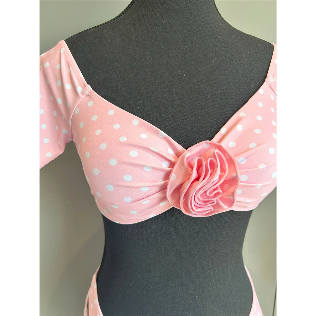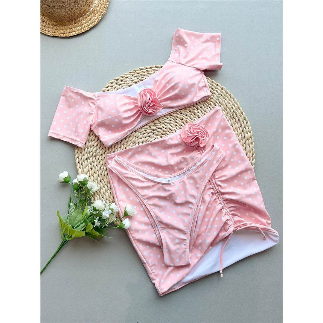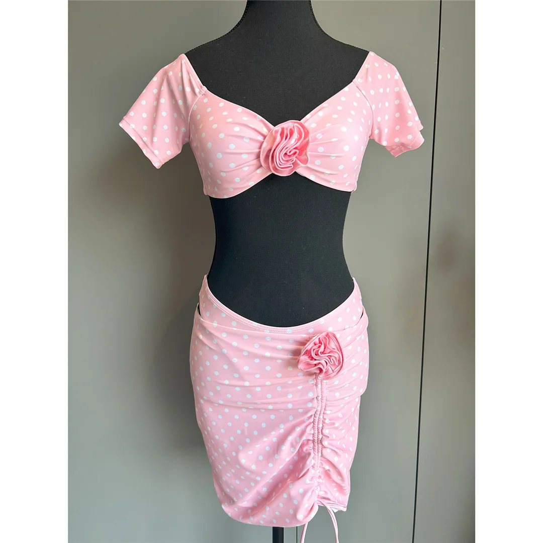 3D Flowers With Skirt Short Sleeve Bikini Women Swimwear Female Swimsuit Three-pieces Bikini set Bather Bathing Suit Swim V6905