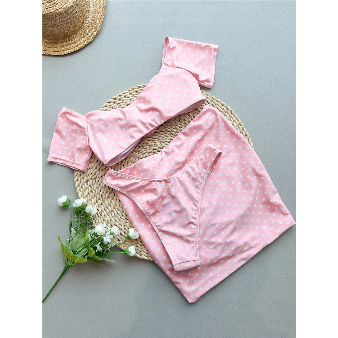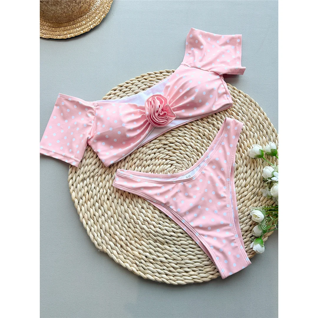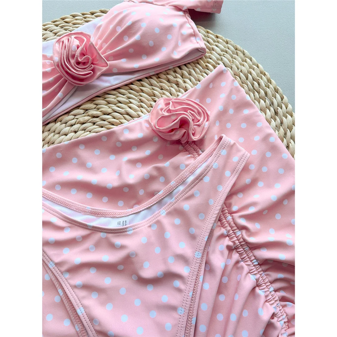 3D Flowers With Skirt Short Sleeve Bikini Women Swimwear Female Swimsuit Three-pieces Bikini set Bather Bathing Suit Swim V6905