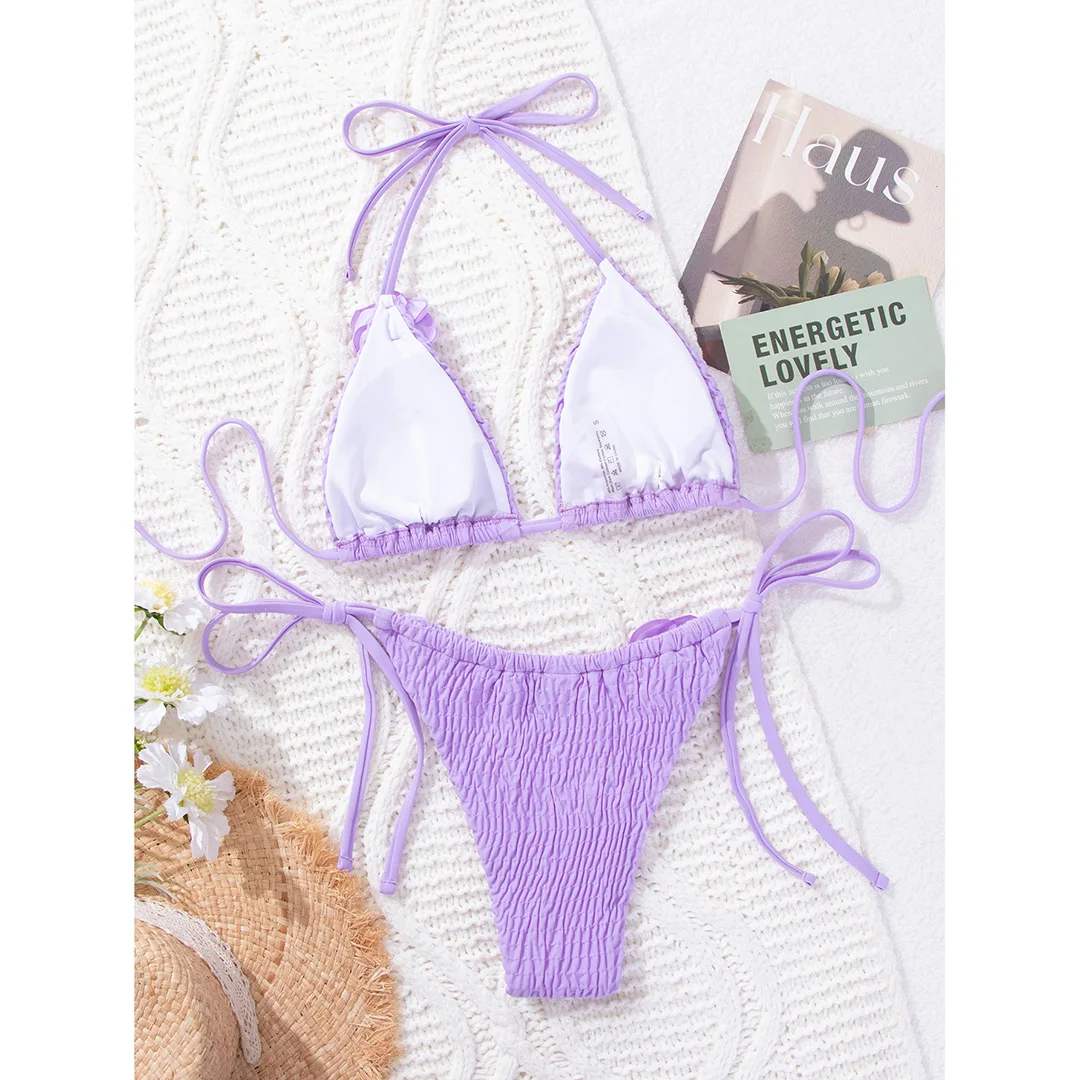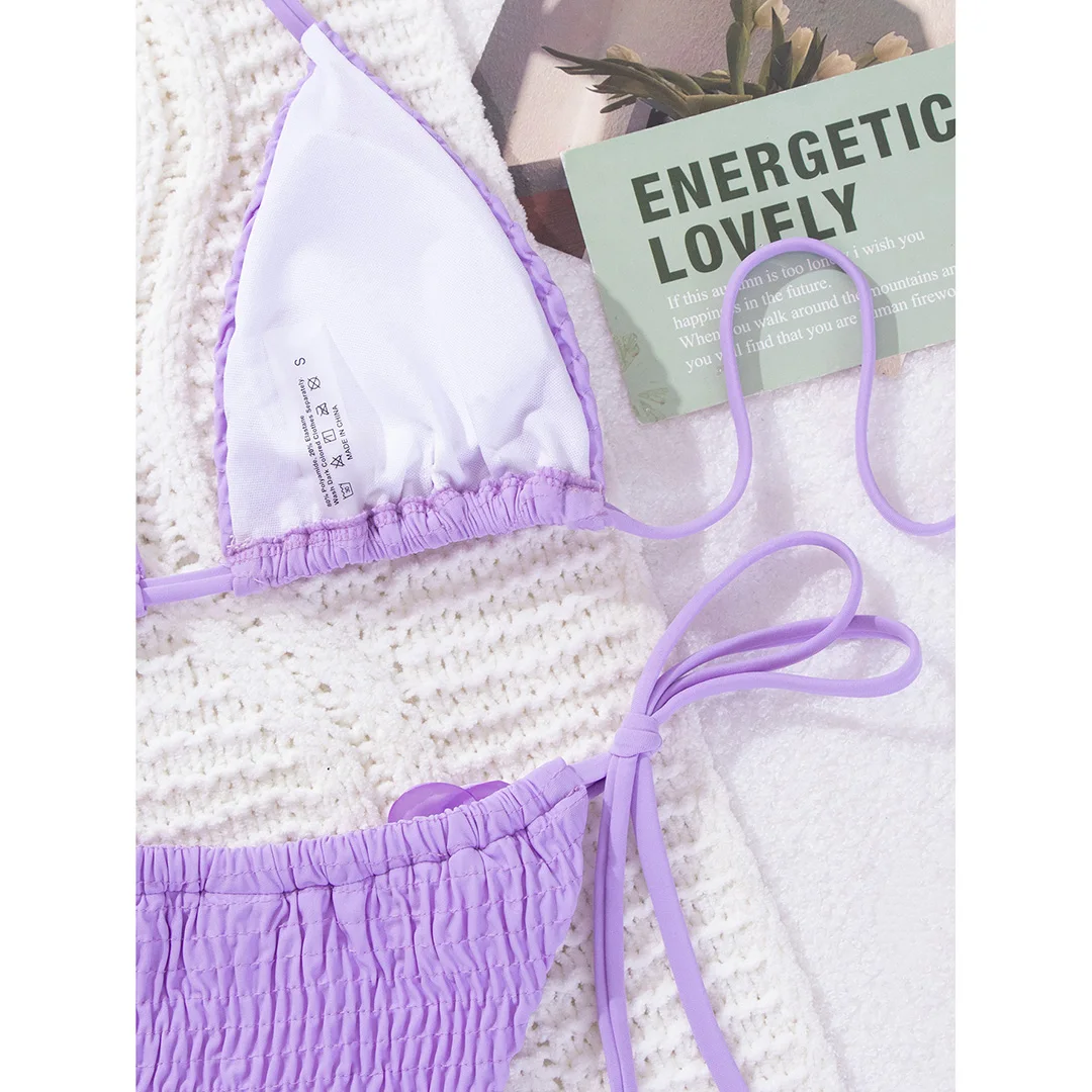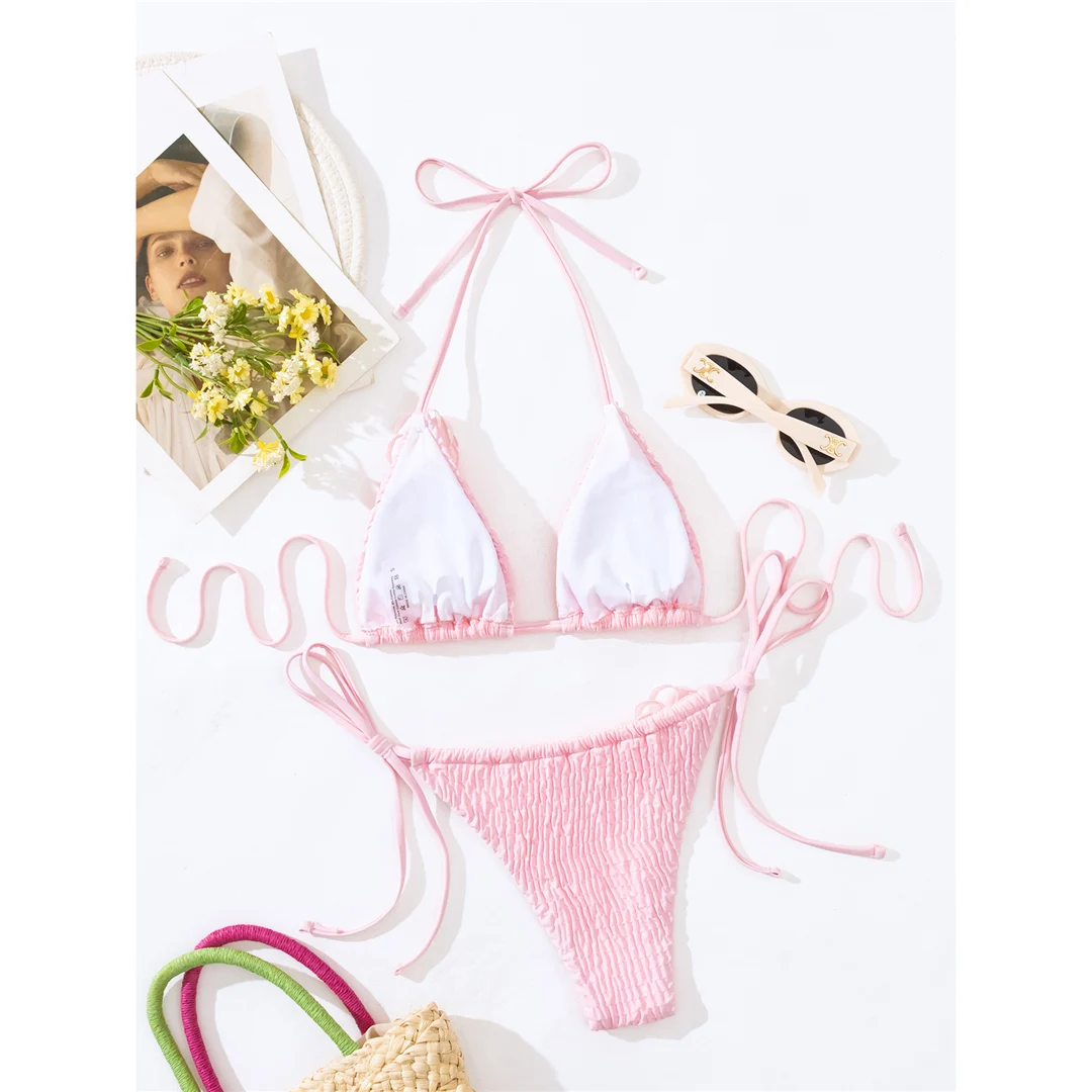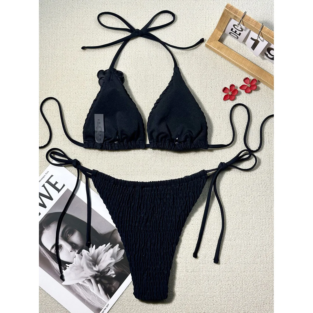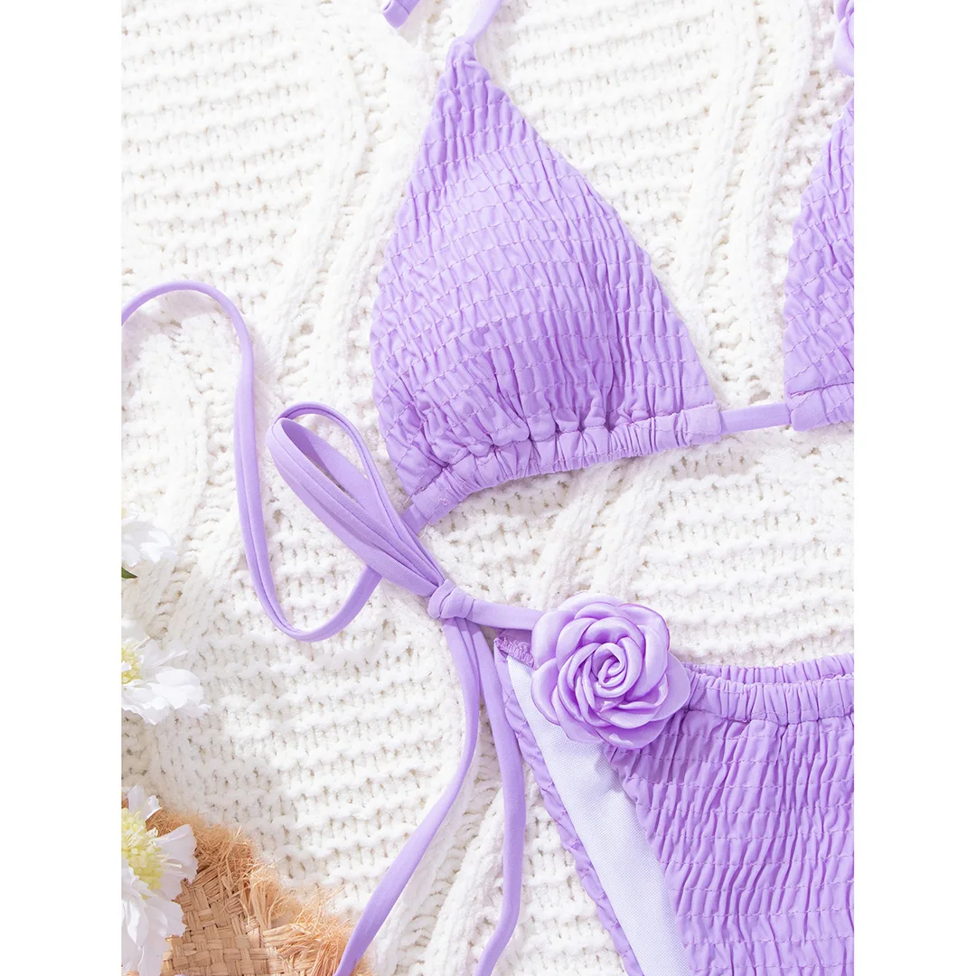 3D Flowers Wrinkled Halter Strappy Bikini Female Swimsuit Women Swimwear Two-pieces Bikini set Bather Bathing Suit Swim V5563