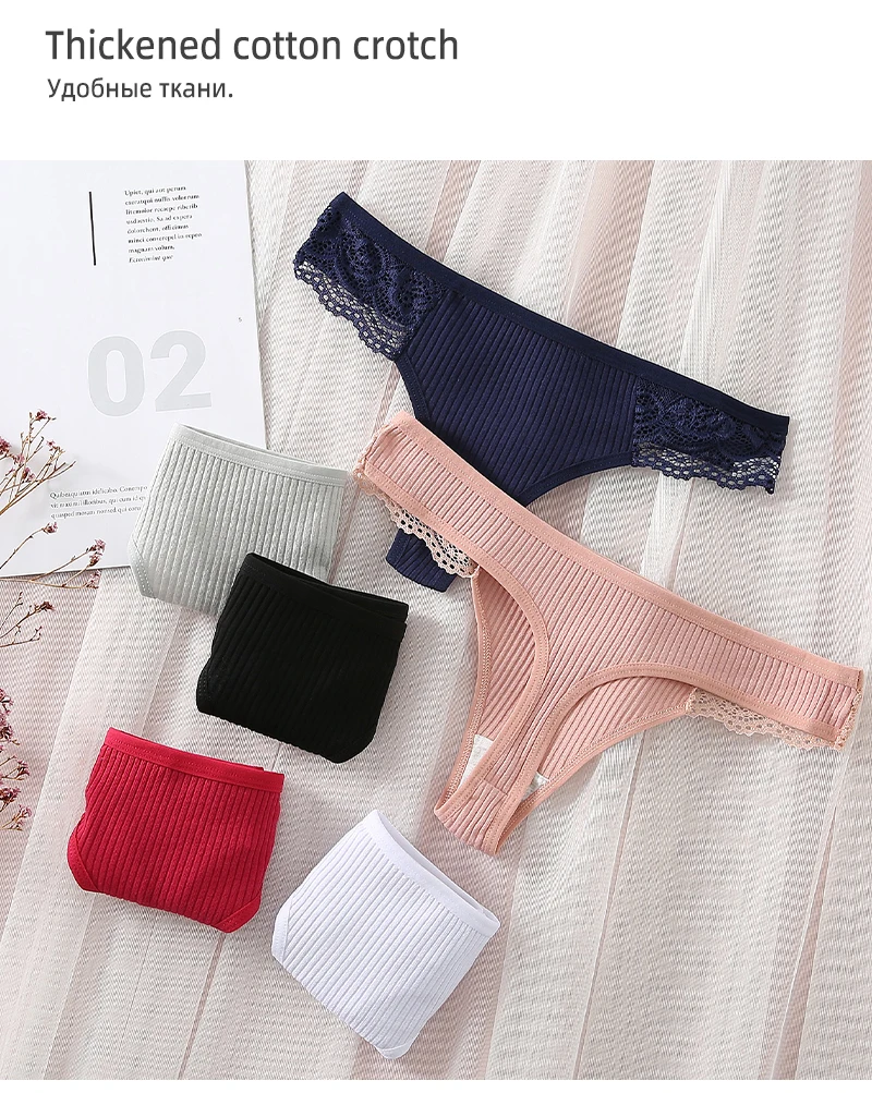 3PCS Cotton Sexy Women’s Thong Breathable Comfortable Women’s Panties Seamless Soft Women’s Underwear Solid Color Girls Lingerie
