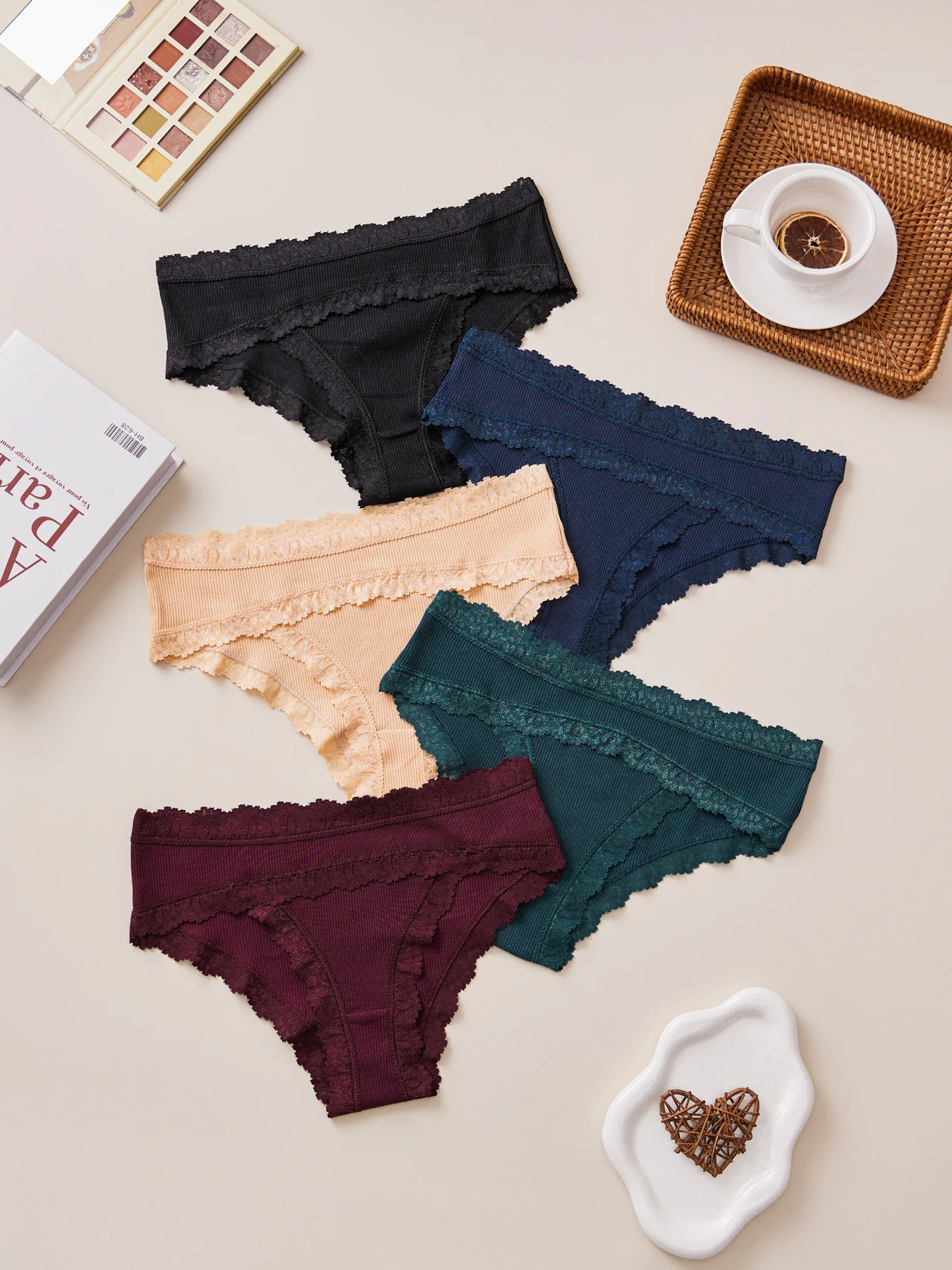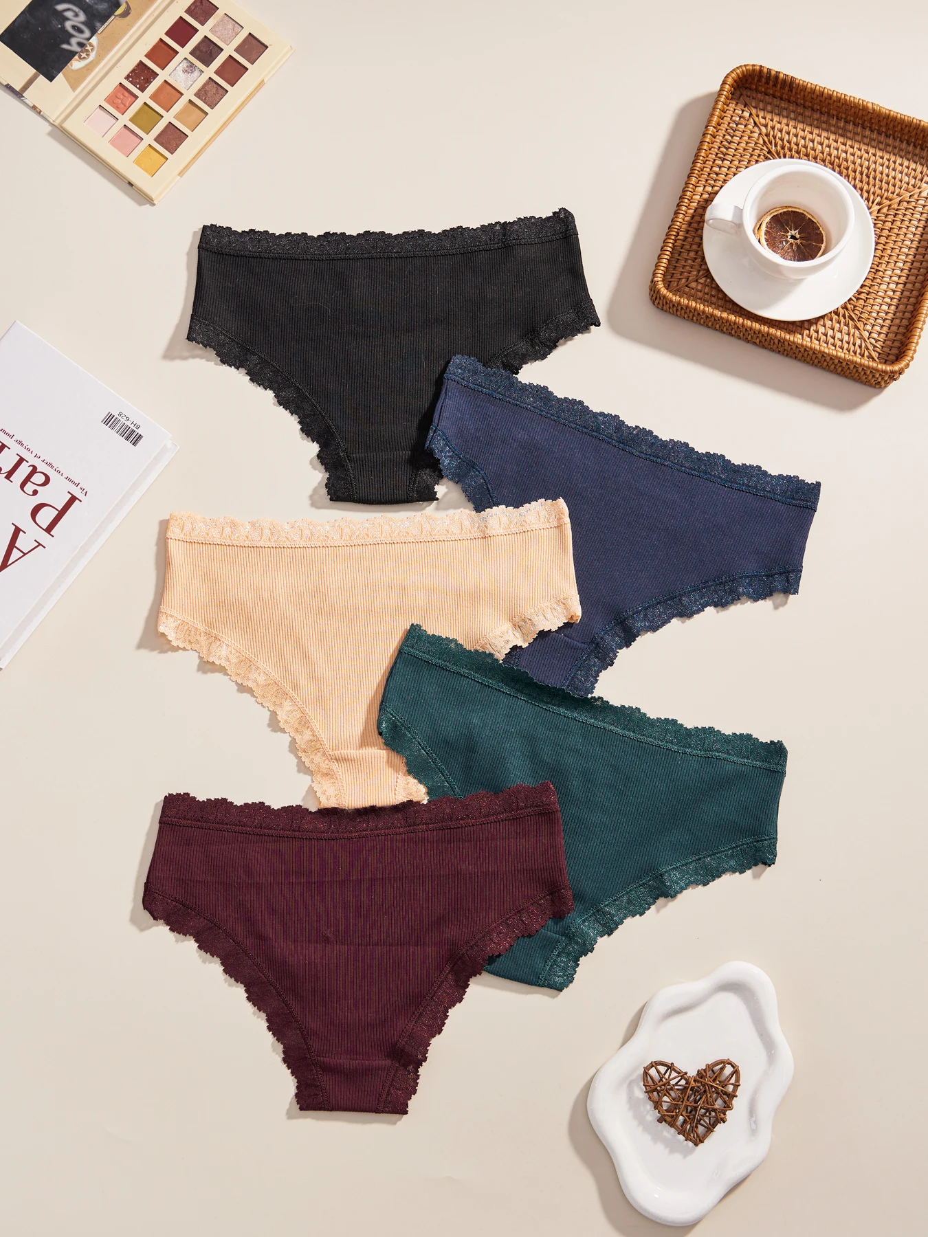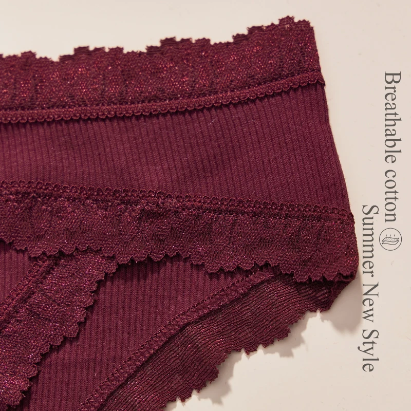 3PCS Cotton Women’s Panties Sexy Lace Breathable Lingerie Elastic Close Fitting Female Underwear Mid Waist Summer Triangle Pants