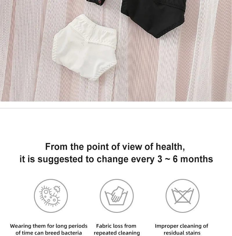 Hand wash with warm water about 30degree. Do not soak for too long. Underwear is close-fitting and intimate clothing, which is easy to breed bacteria. For our health, it is recommended to change it every six months.