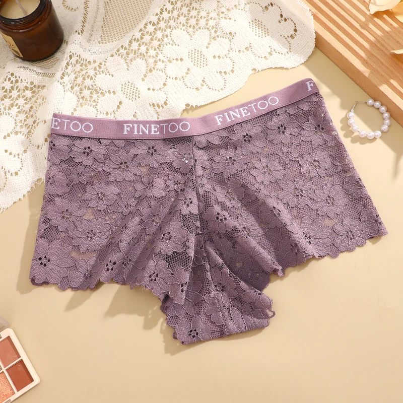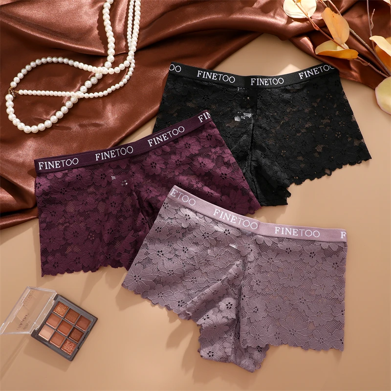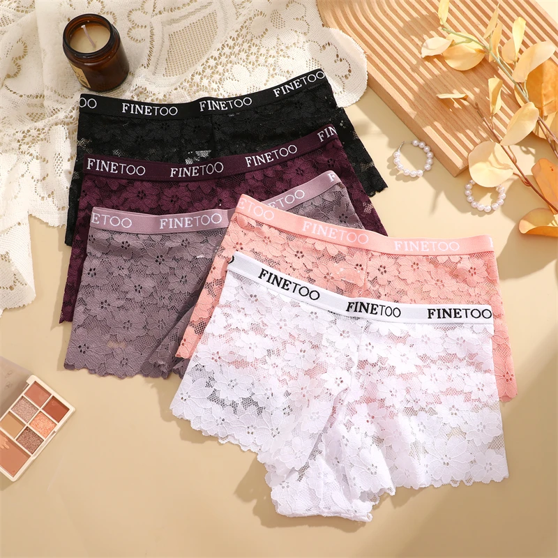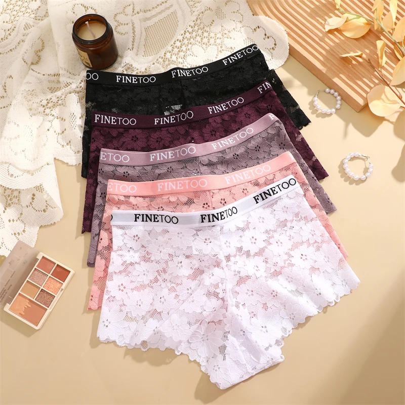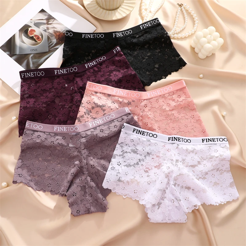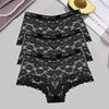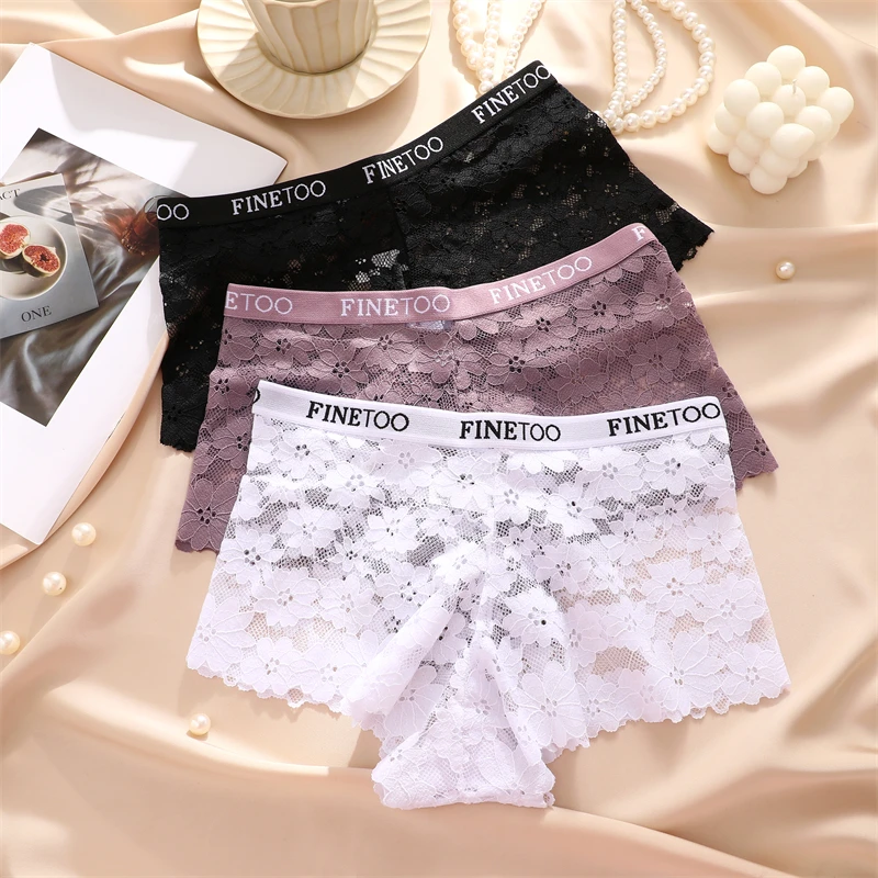 3Pcs Lace Hollow Out Boyshorts Women’s Sexy Floral Panties 5 Solid Colours Underwear Letter Belt Briefs Perspective Lingerie