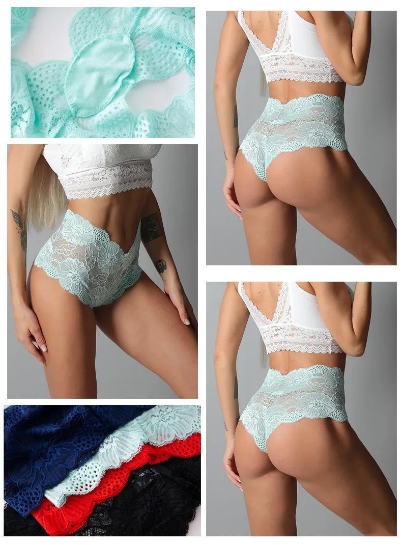 3Pcs Lace Panties Plus Size Sexy Female Underwear Panties Sexy Soft Female Pantie High Waist Breathable Lingeries Sport Briefs
