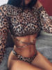 3PCS Leopard Long Sleeve Cover Up Bikini Female Swimsuit Women Swimwear Three-pieces Bikini set Bather Bathing Suit Swim V5950