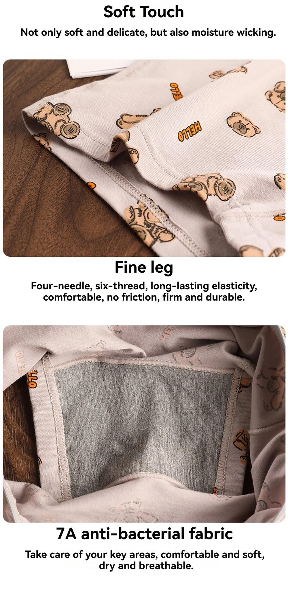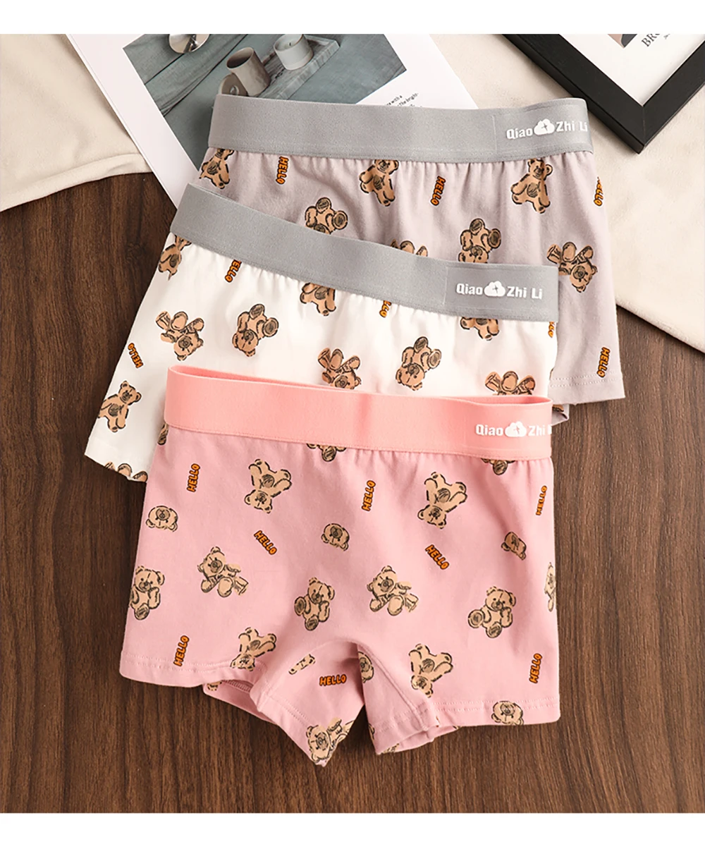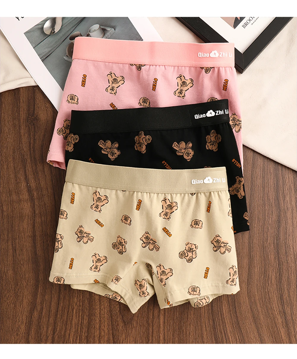 3PCS/Pack Autumn Winter Cotton Cute Bear Print Women’s Panties Antibacterial Breathable Crotch Underwear Comfortable Soft Linger