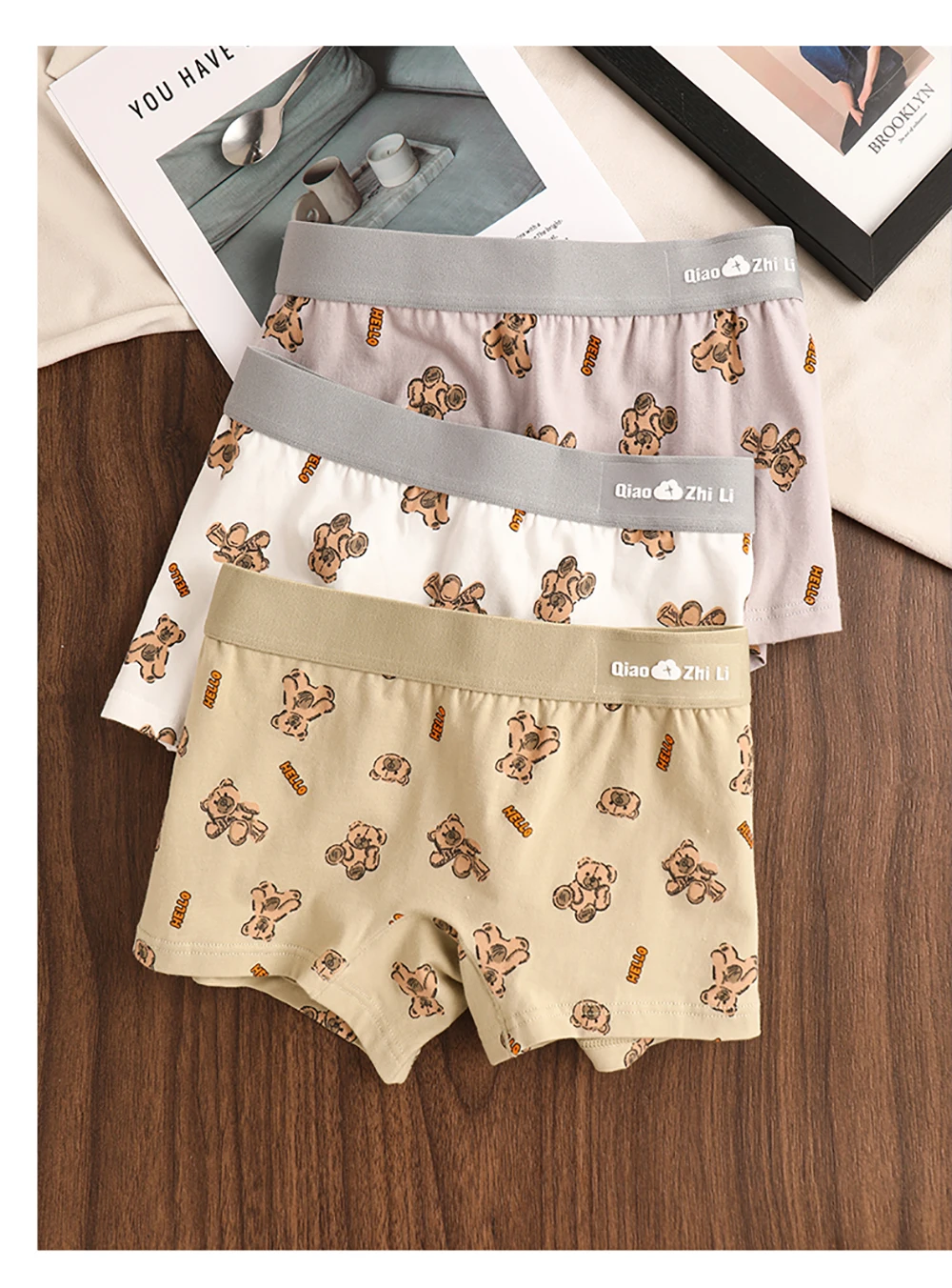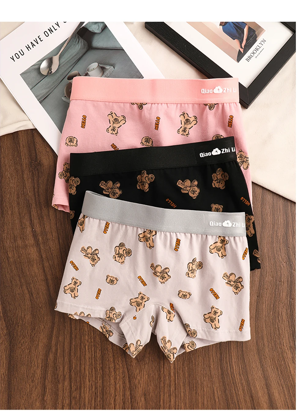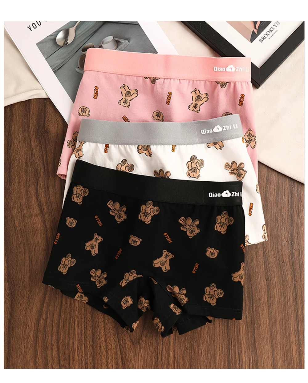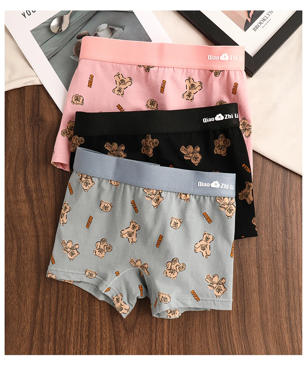 3PCS/Pack Autumn Winter Cotton Cute Bear Print Women’s Panties Antibacterial Breathable Crotch Underwear Comfortable Soft Lingerie