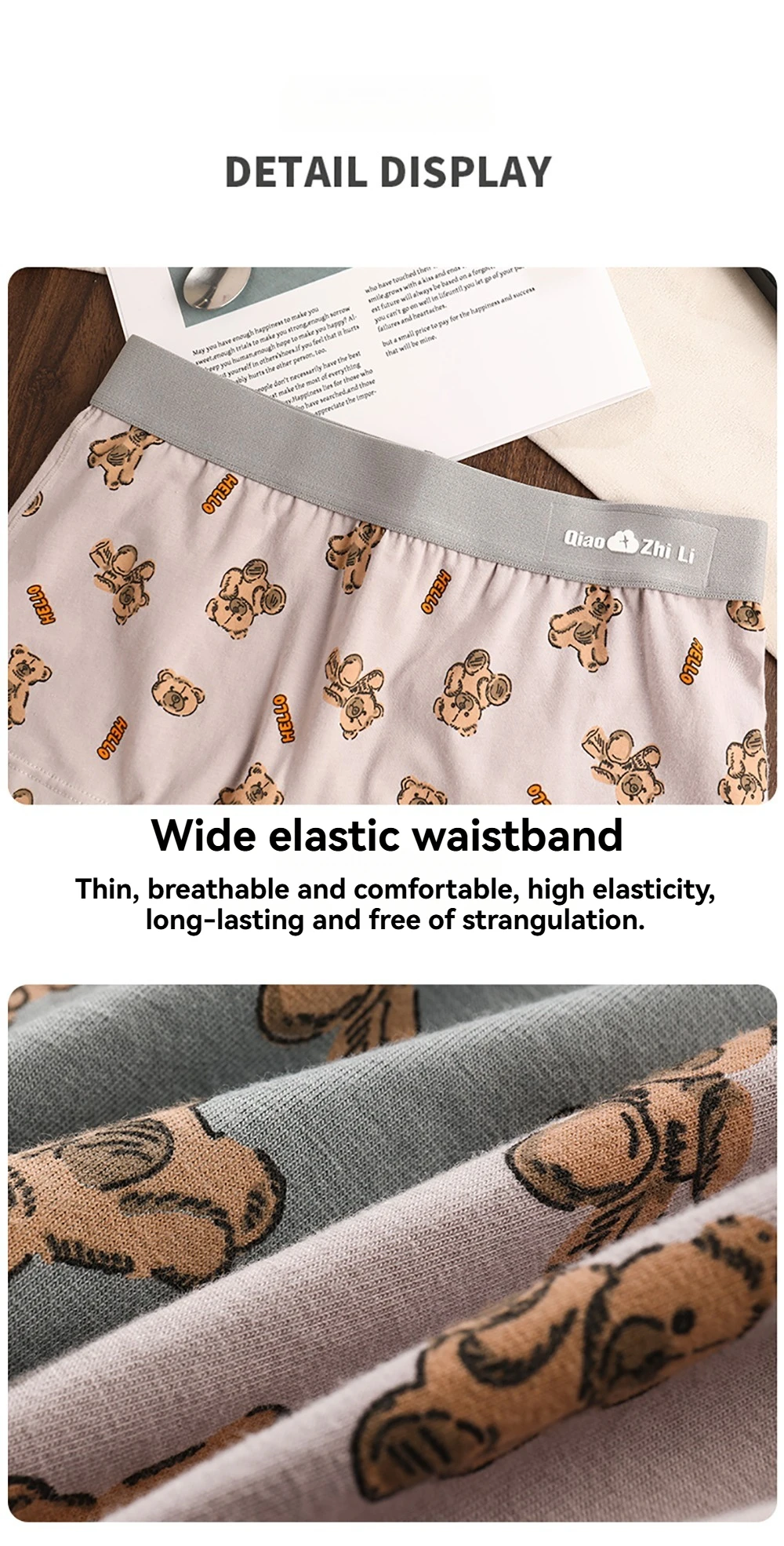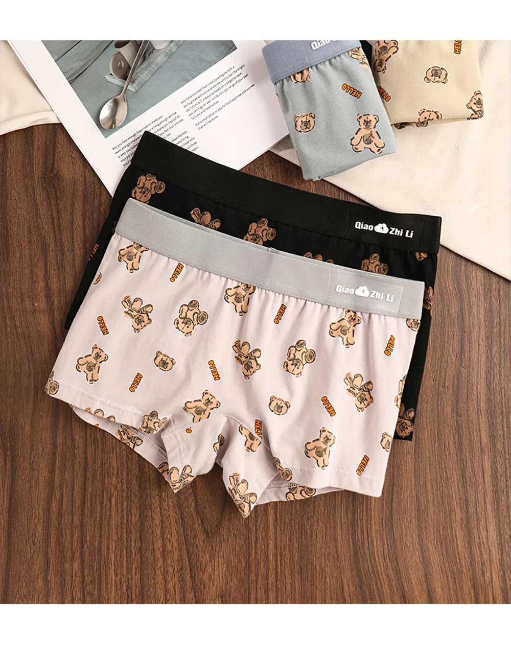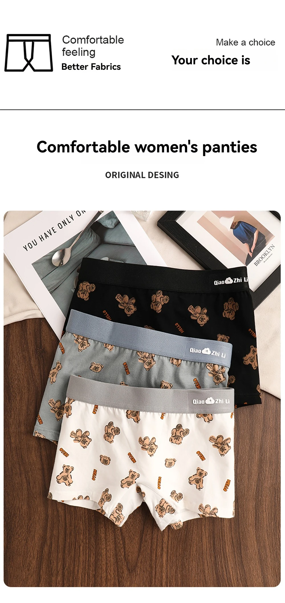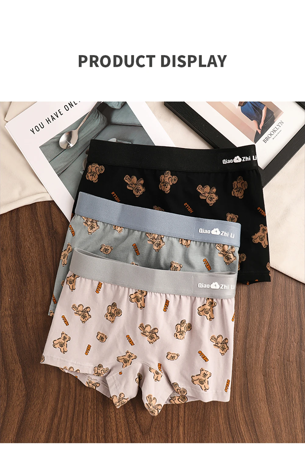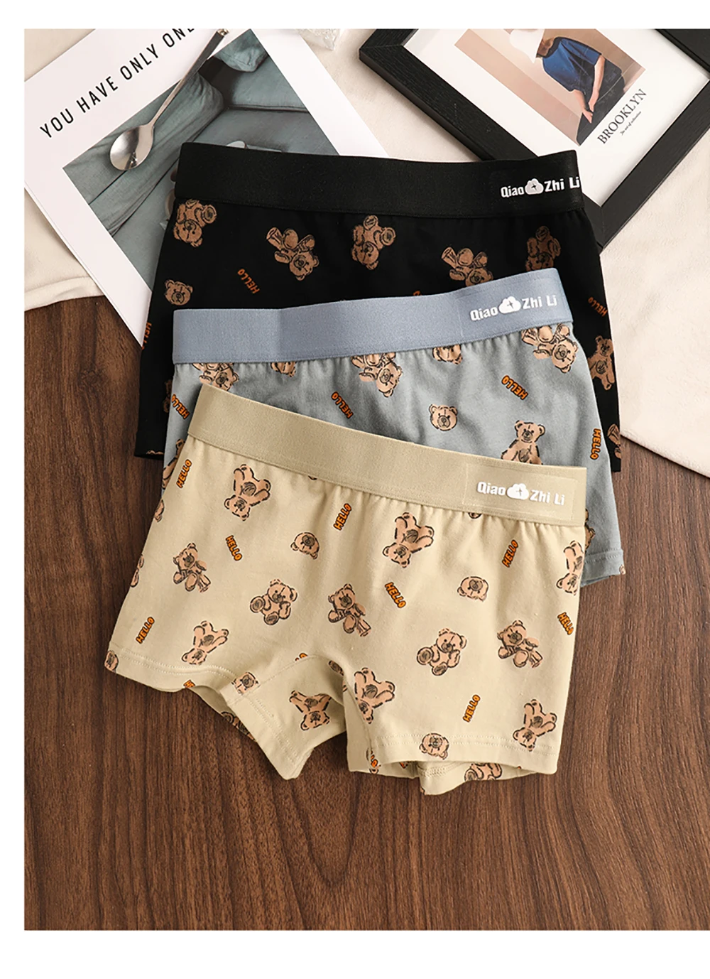 3PCS/Pack Autumn Winter Cotton Cute Bear Print Women’s Panties Antibacterial Breathable Crotch Underwear Comfortable Soft Lingerie
