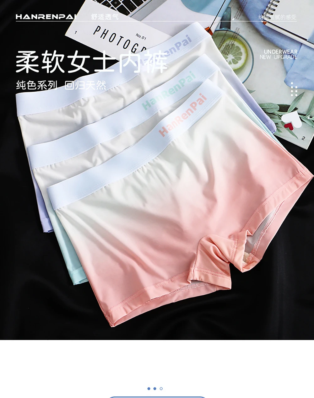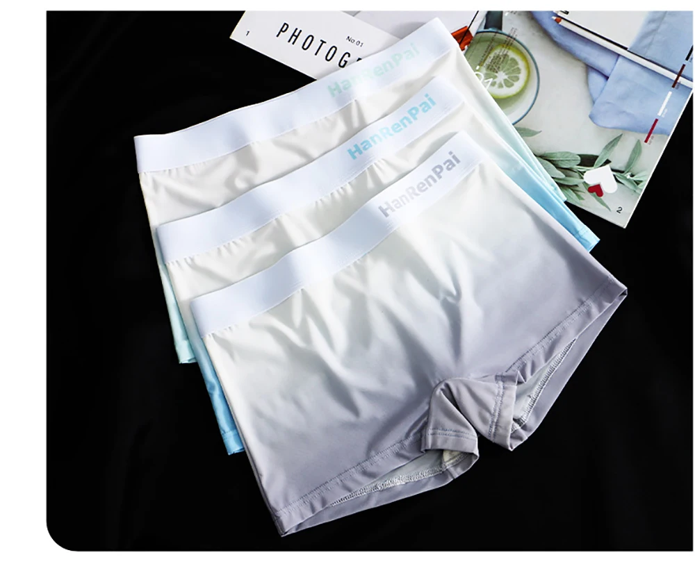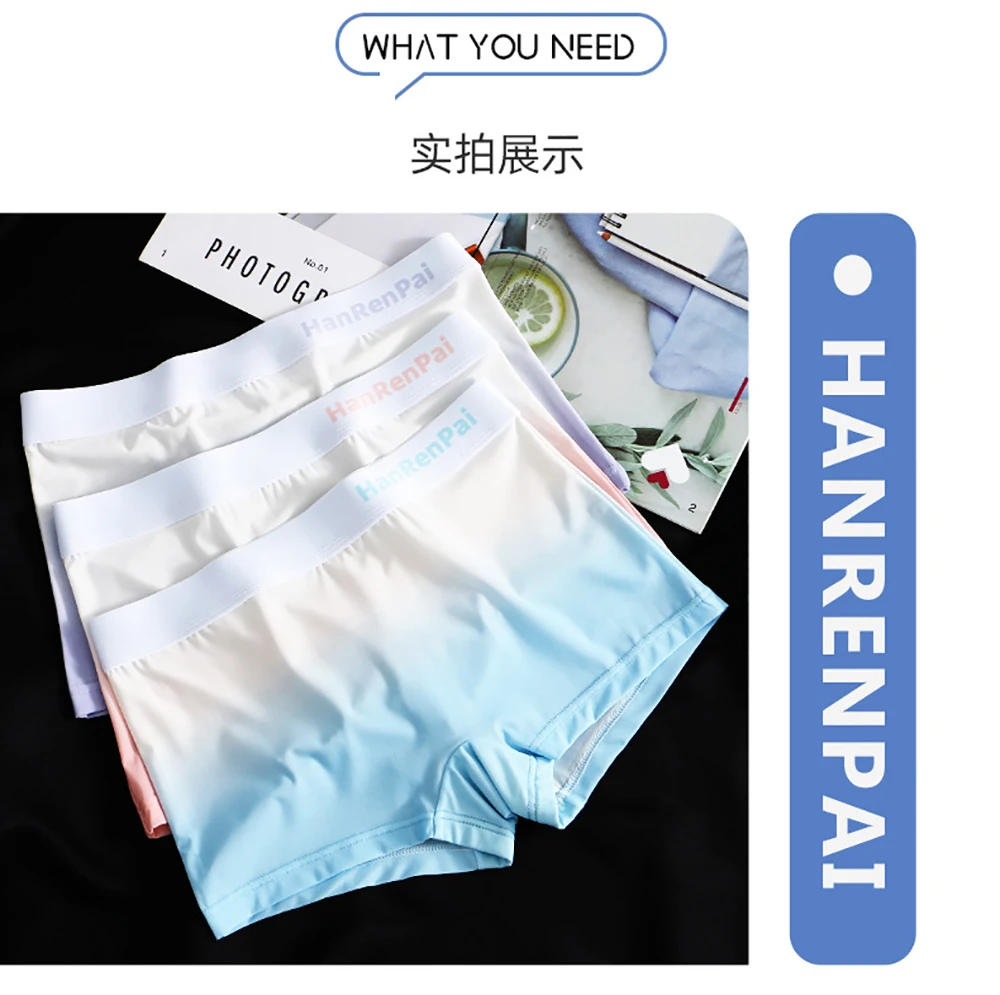 3PCS/Pack Summer Ice Silk Thin Women’s Panties Soft Gradient Female Underwear High Elastic Waist Breathable Mesh Crotch Briefs