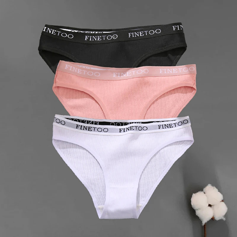 3PCS/Set Seamless Women’s Cotton Briefs FINETOO Sexy Cotton Panties Set Women Underwear Solid Panty Intimates Lingerie M-2XL