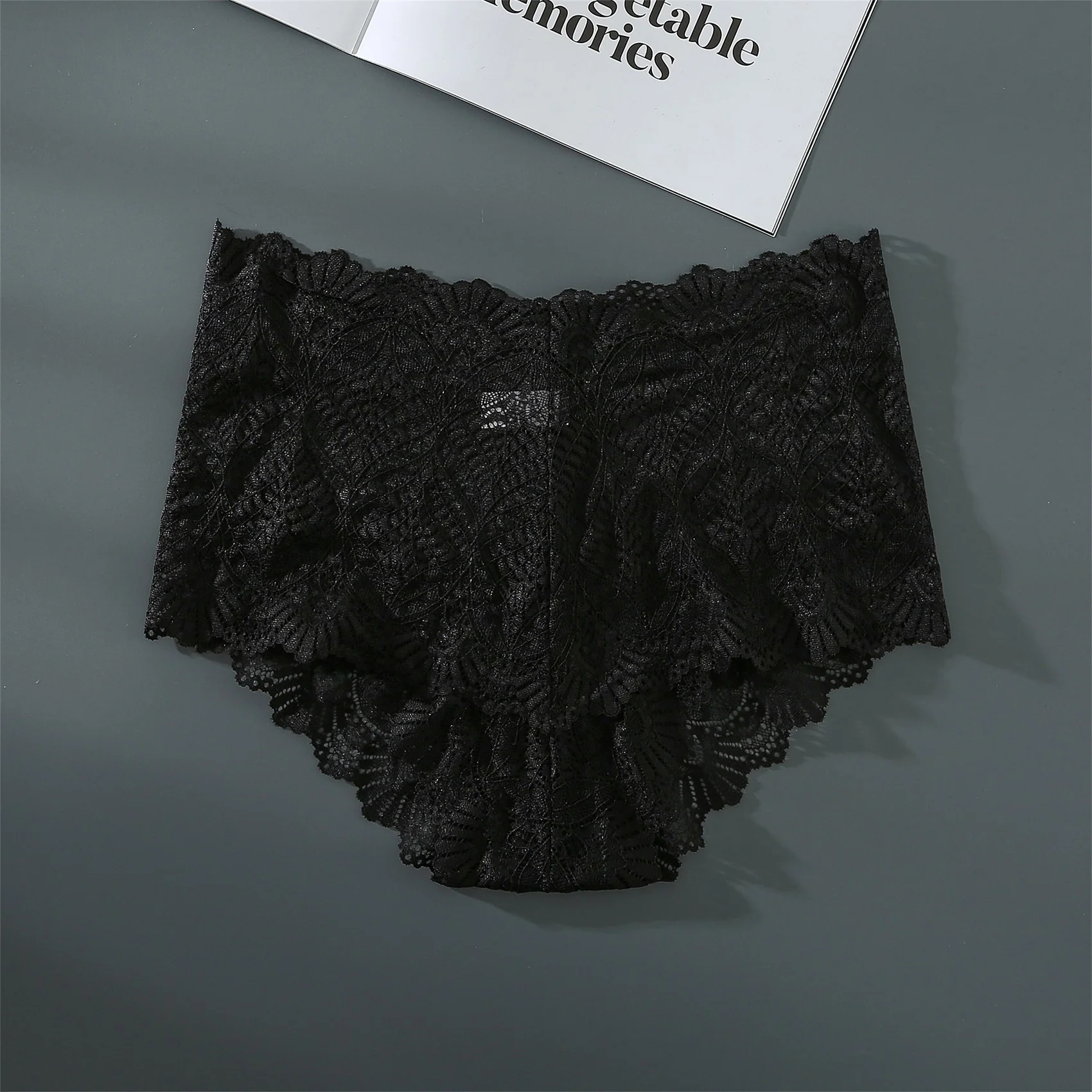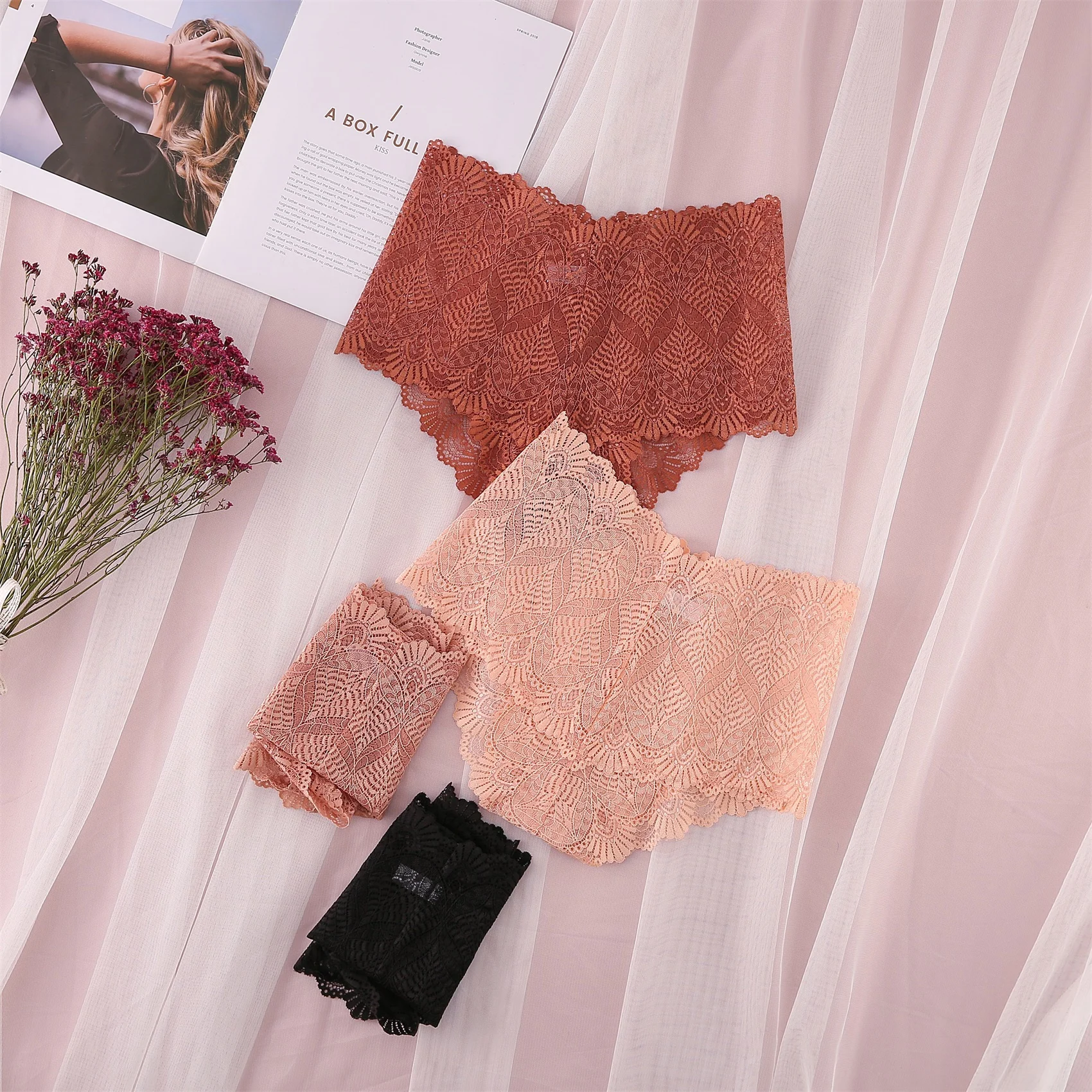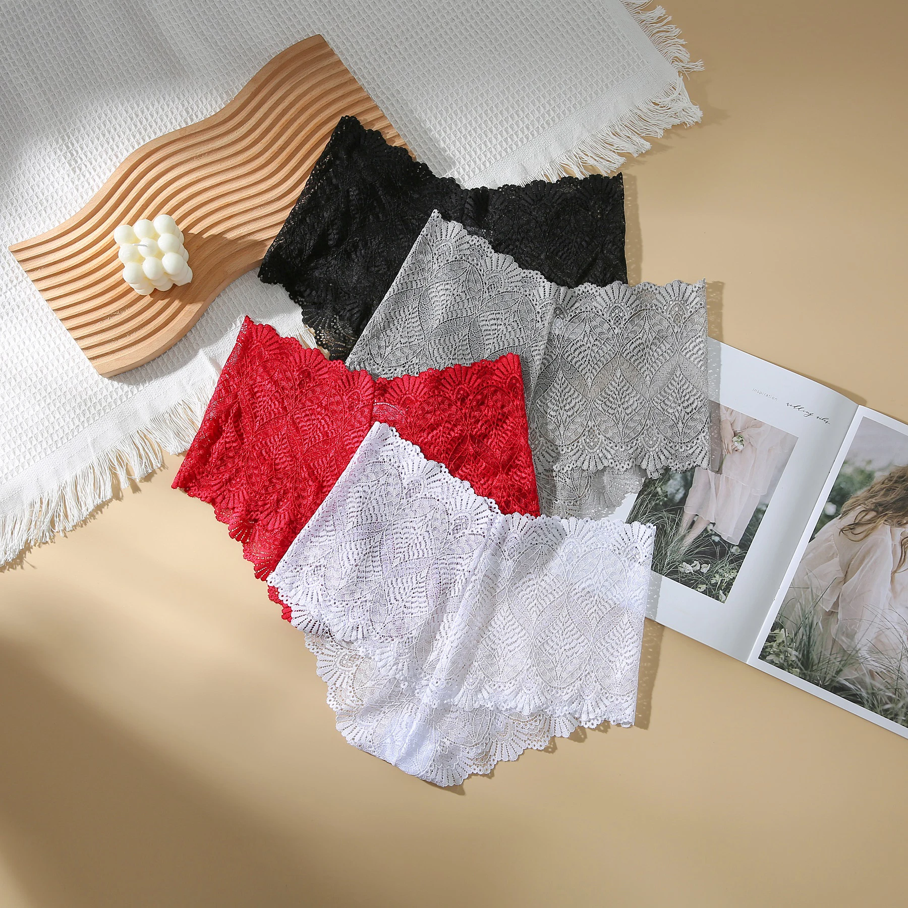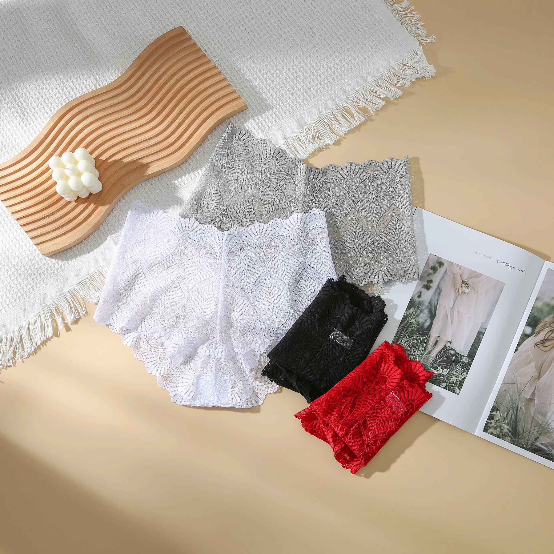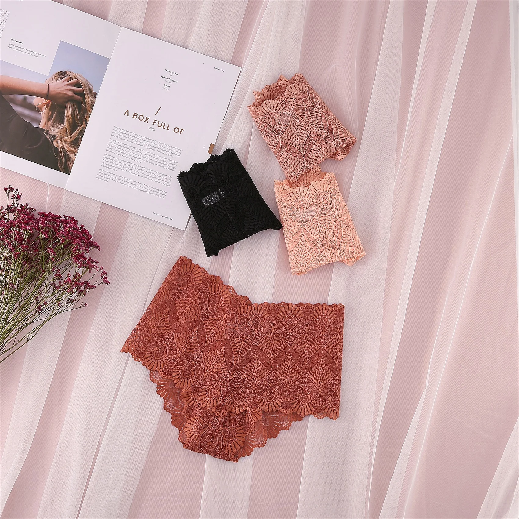 3PCS Sexy Lingerie Women’s Panties Set Solid Color High-Waist Lace Underwear Transparent Briefs Intimate Comfort Lady Underpants