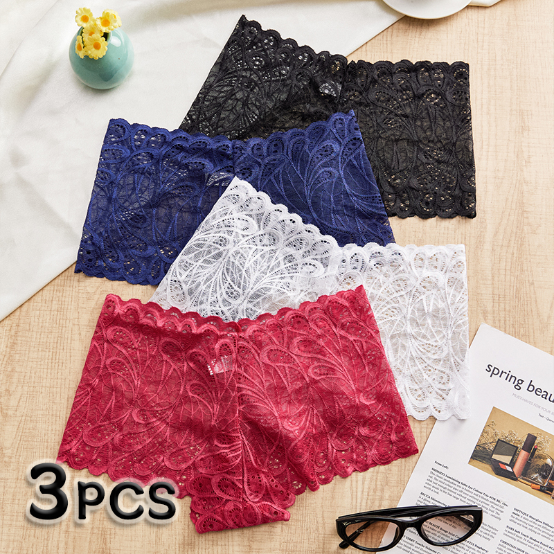 3PCS Sexy Lingerie Women’s Panties Set Solid Color High-Waist Lace Underwear Transparent Briefs Intimate Comfort Lady Underpants