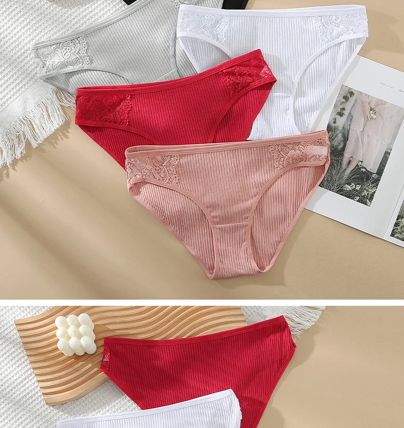 3PCS Solid Color Cotton Female Lingerie Breathable Comfortable Women’s Underwear Skin-friendly Comfortable Soft Women’s Panties