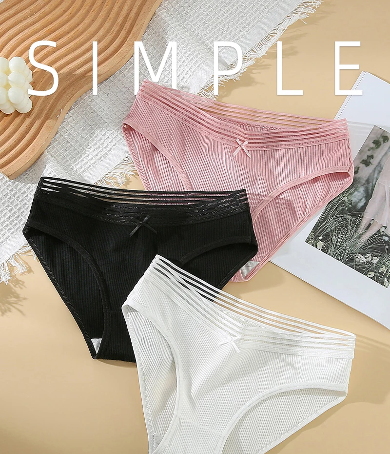 3PCS Solid Color Cotton Soft Women’s Panties Sexy Breathable Women’s Underwear Home Seamless Stretchy Female Lingerie Underpants