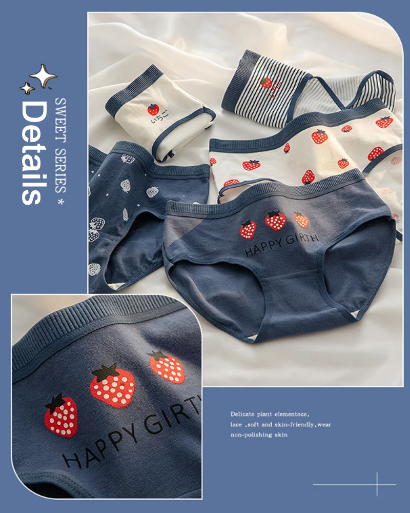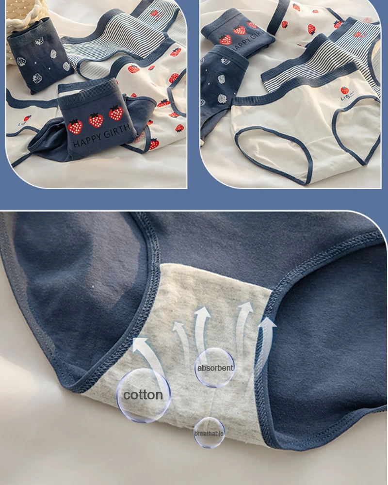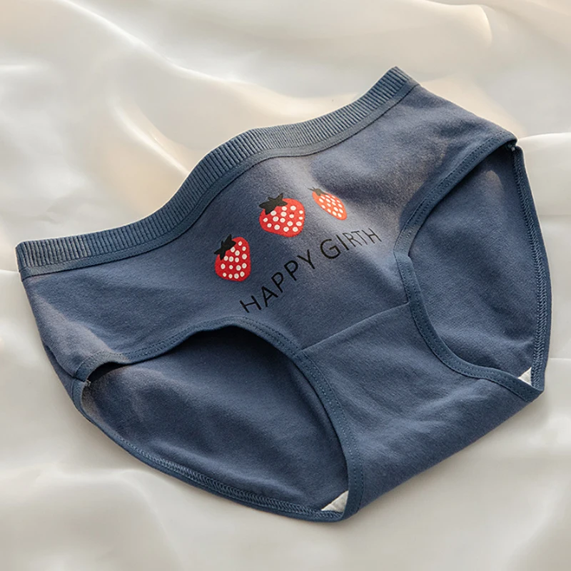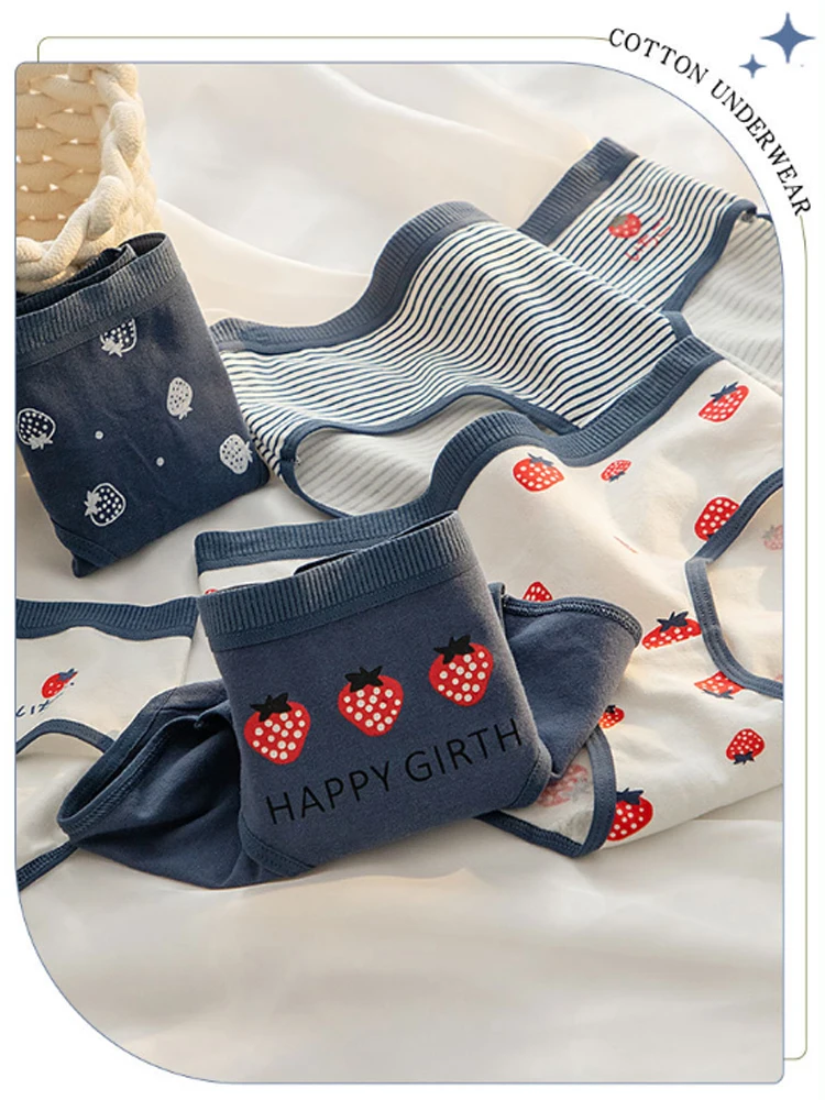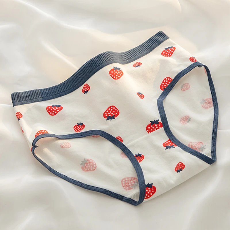 3PCS Strawberry Panties Women’s Panties Cotton Crotch Mid-rise Hipster Cotton Crotch Panties Teenage Girls