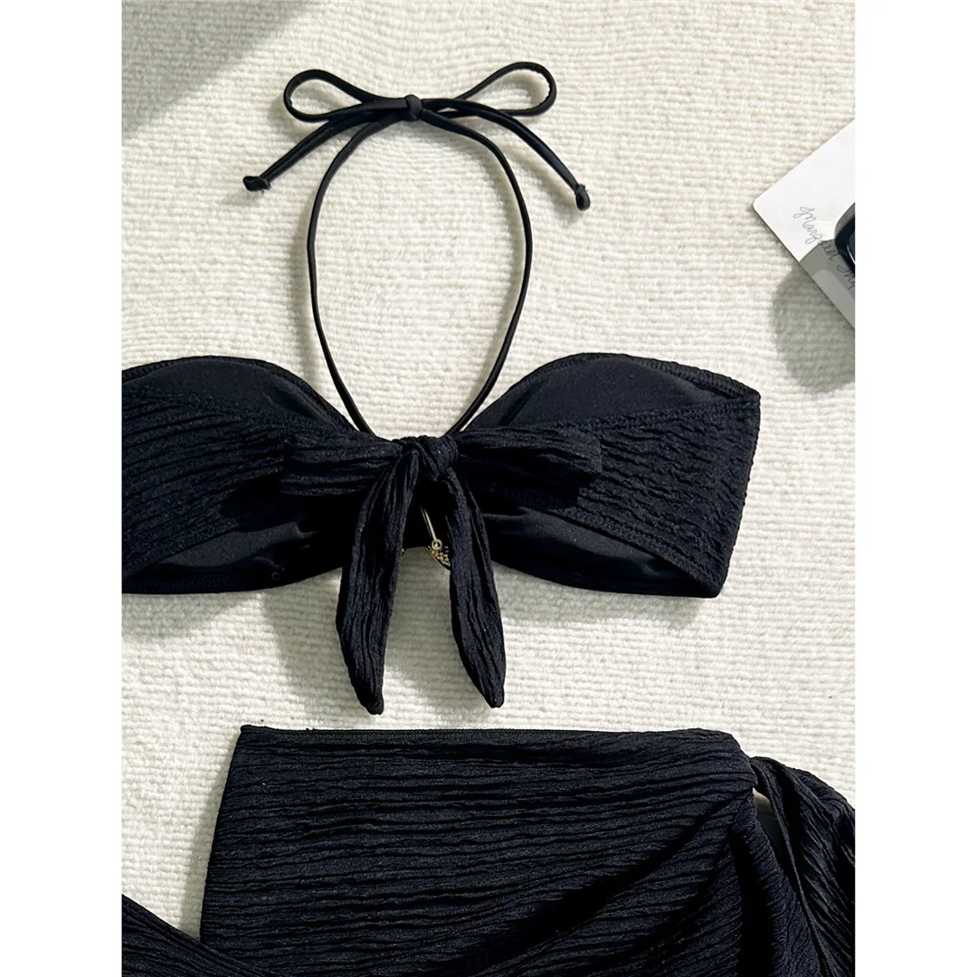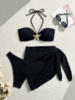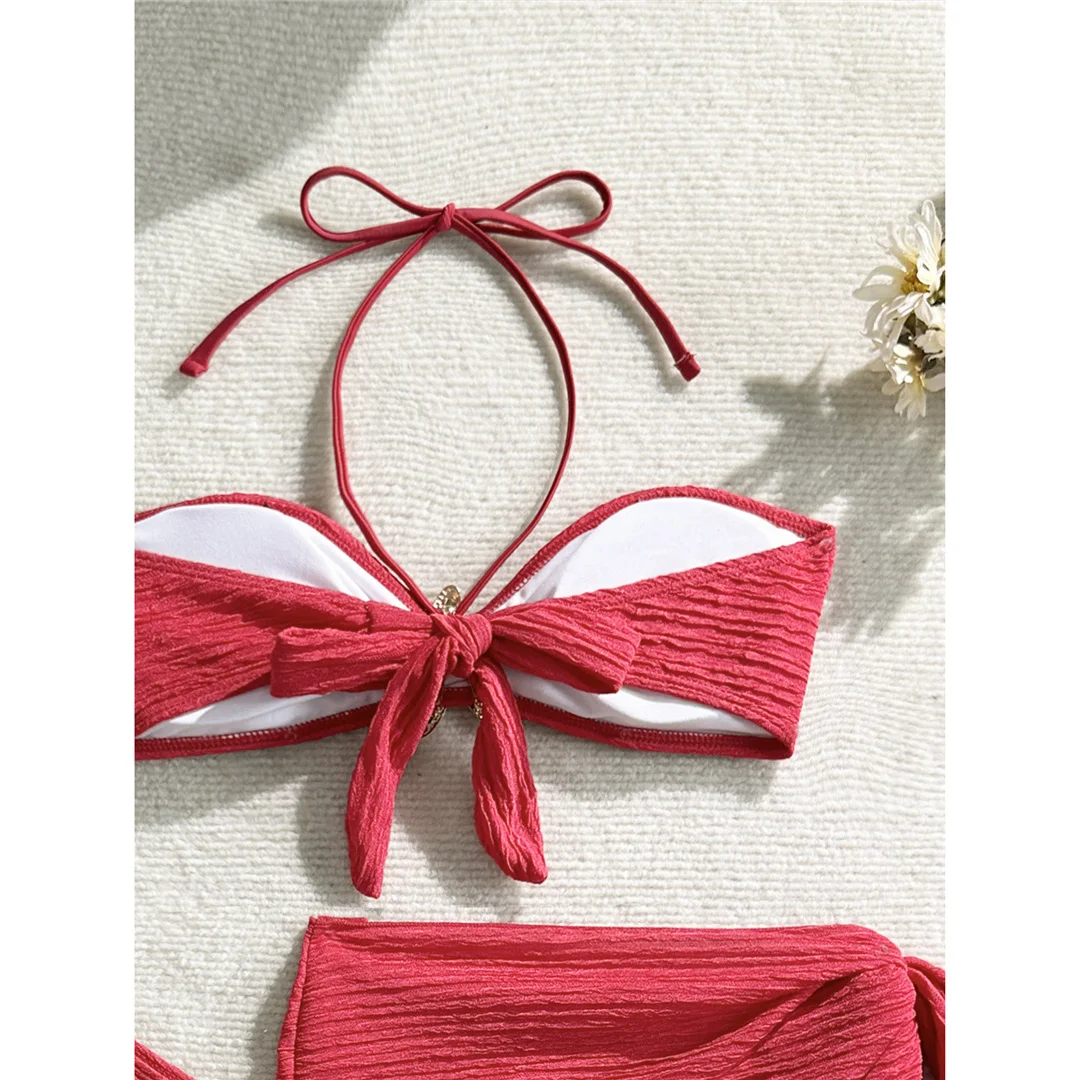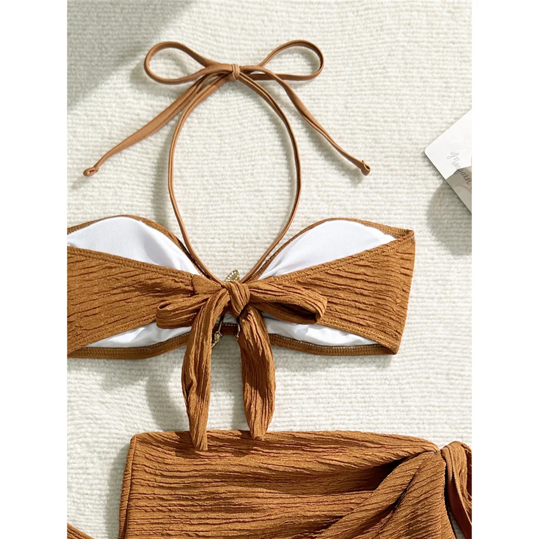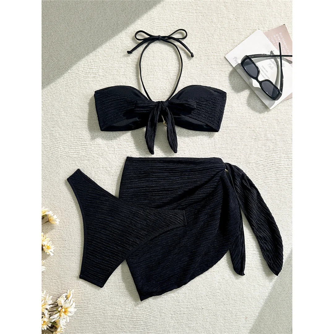 3PCS With Sarong Metal Star Halter Bikini Female Swimsuit Women Swimwear Three-pieces Bikini set Bather Bathing Suit Swim V7042