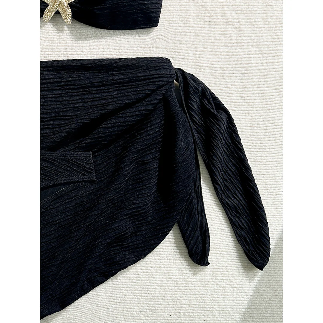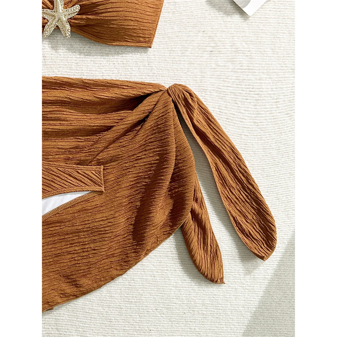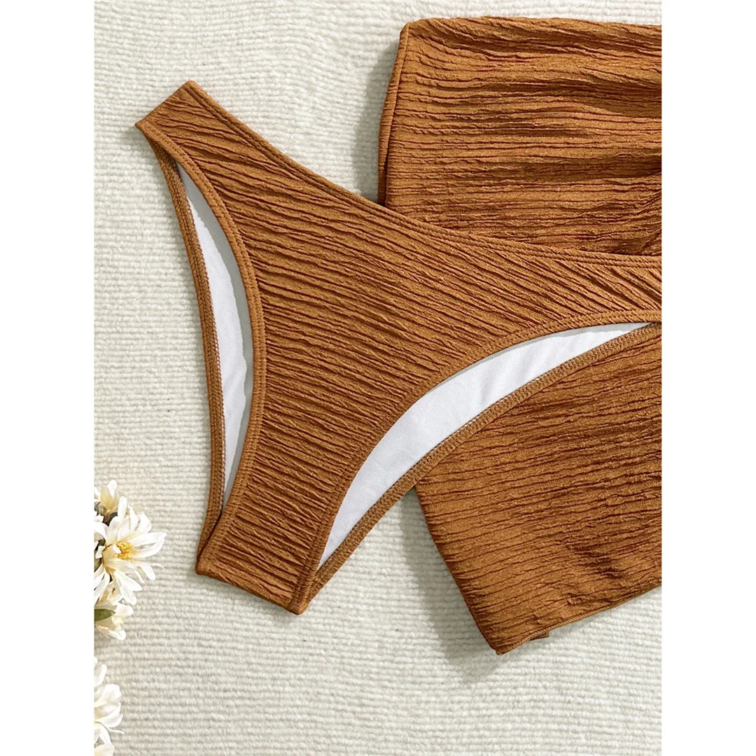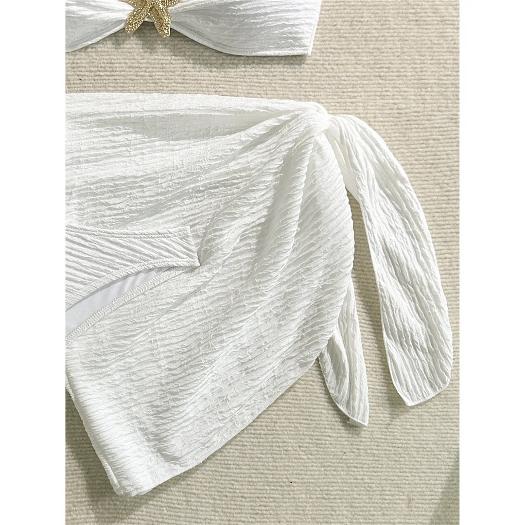3PCS With Sarong Metal Star Halter Bikini Female Swimsuit Women Swimwear Three-pieces Bikini set Bather Bathing Suit Swim V7042