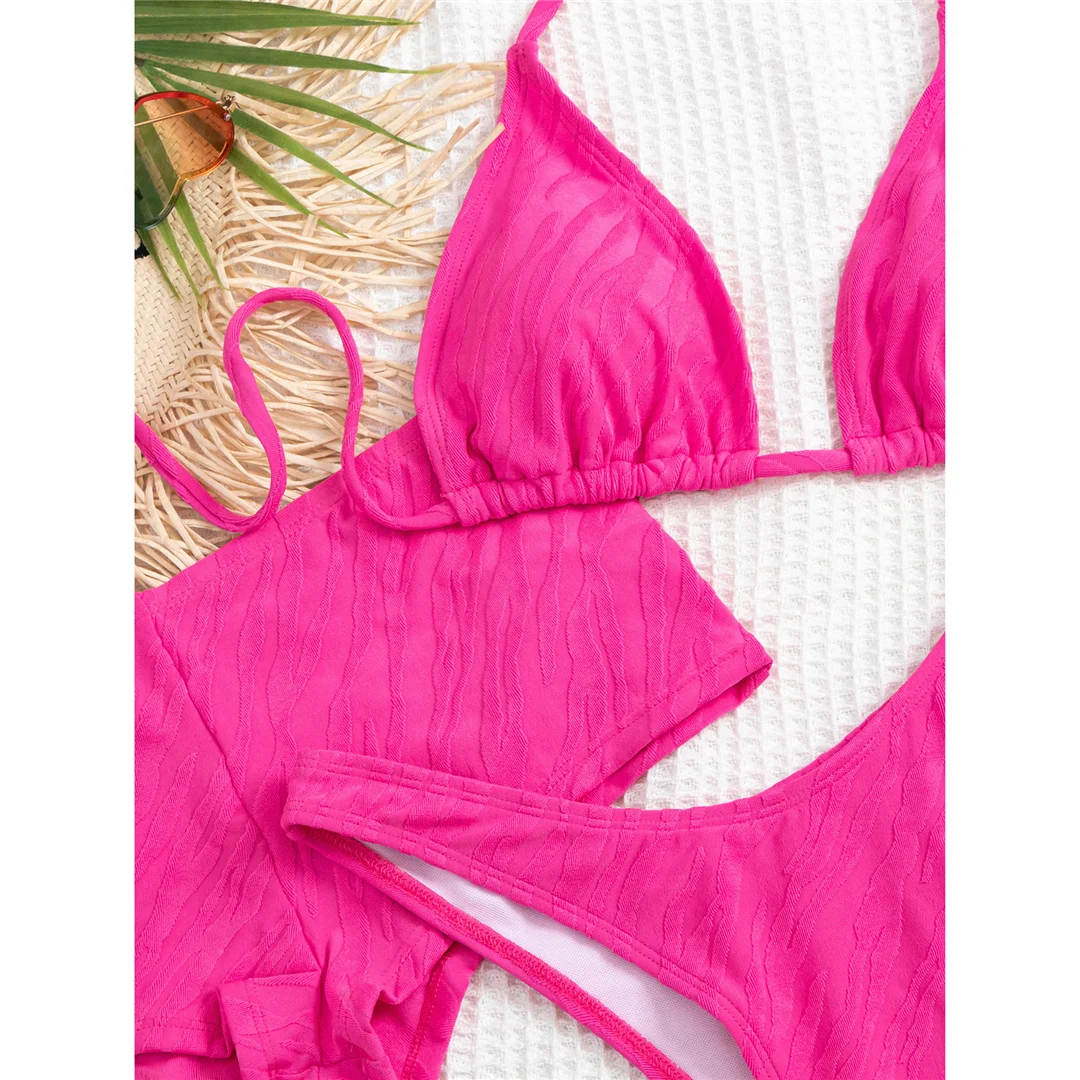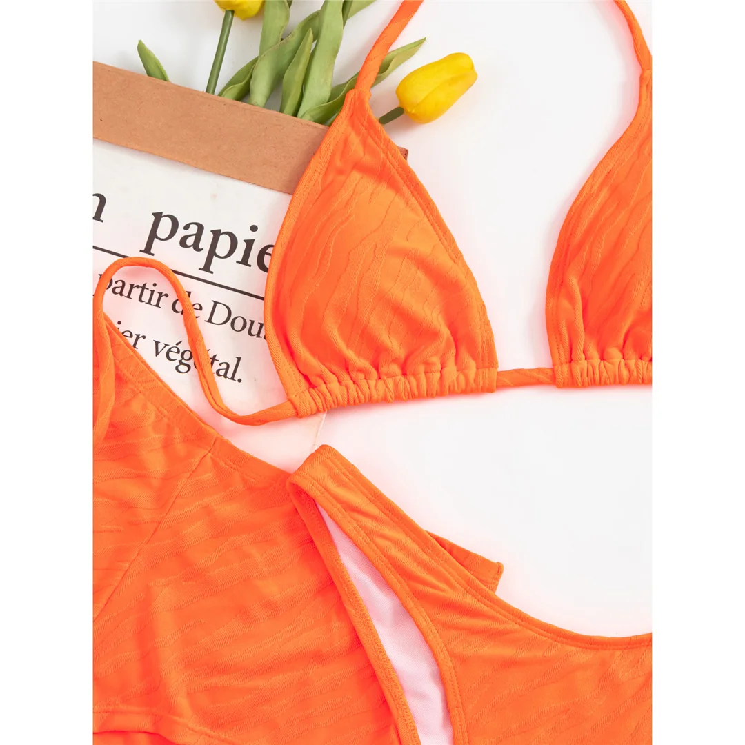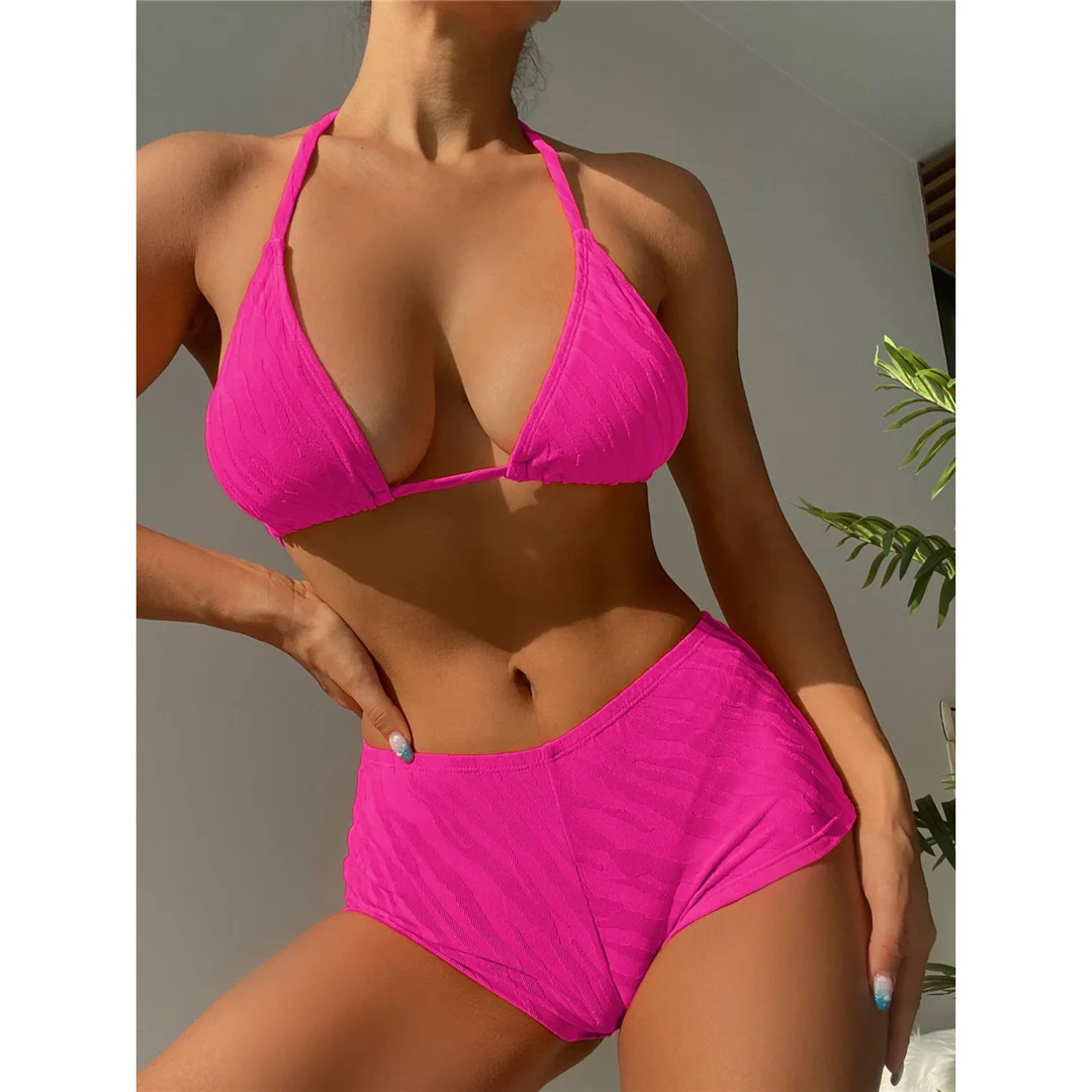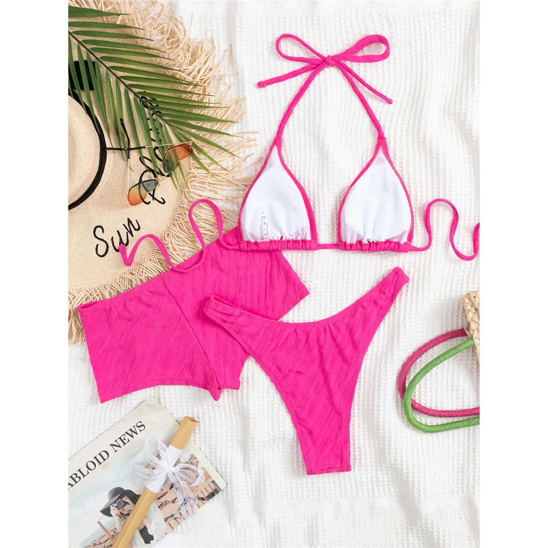 3PCS With Shorts Halter Brazilian Bikini Female Swimsuit Women Swimwear Three-pieces Bikini set Bather Bathing Suit Swim V6687